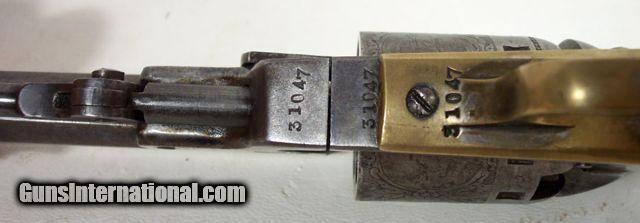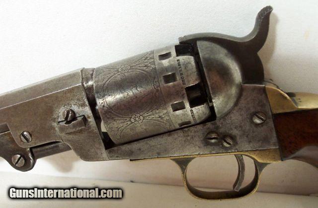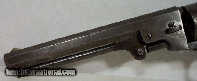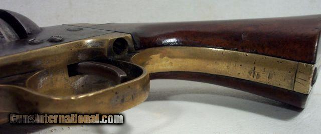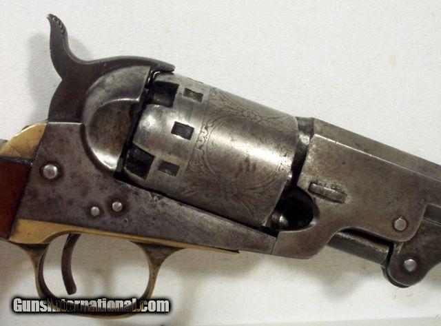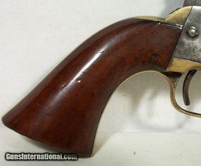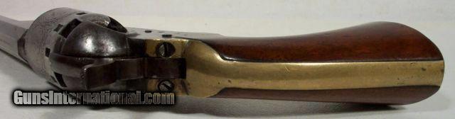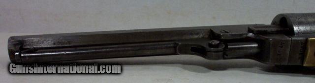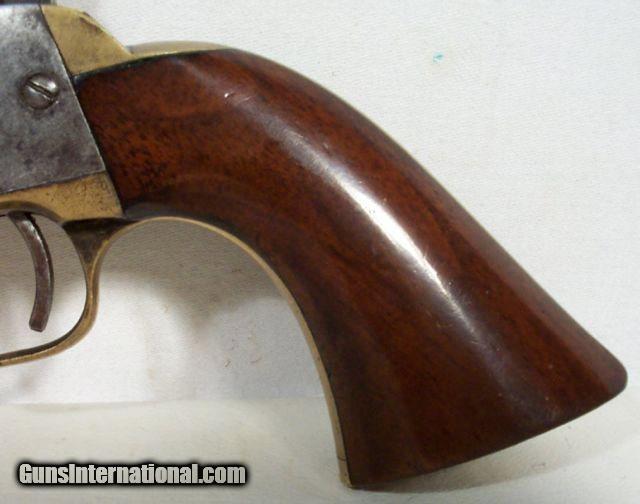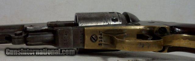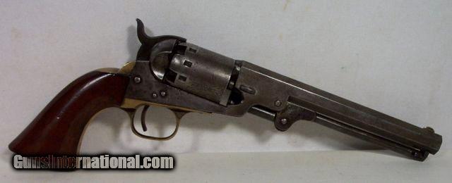 Description: Civil War Navy Manhattan Series III 36 cal. Percussion Revolver; SN 31407;Scarce 6½ inch Barrel; Original Antique Condition; Good Markings and Cylinder Scene; Butt Serial Number last digit weak, Good Action, Grip and Strong but lightly pitted Bore; Circa 1863/64; Wedge Spring missing; All Numbers Match including wedge; antique, no FFL/C&R required for shipping; from my own personal collection; Long guns shipped by FedEx in a hard case $65; all other items shipped fully insured Priority Mail; - -Hand guns $30 -- Spurs $30-- Knives, Swords & Sabers $30—Grips $20; return policy: three days inspection from the date the item is received; full refund of shipping both ways ONLY IF THE ITEM IS MISREPRESENTED. SOLD |