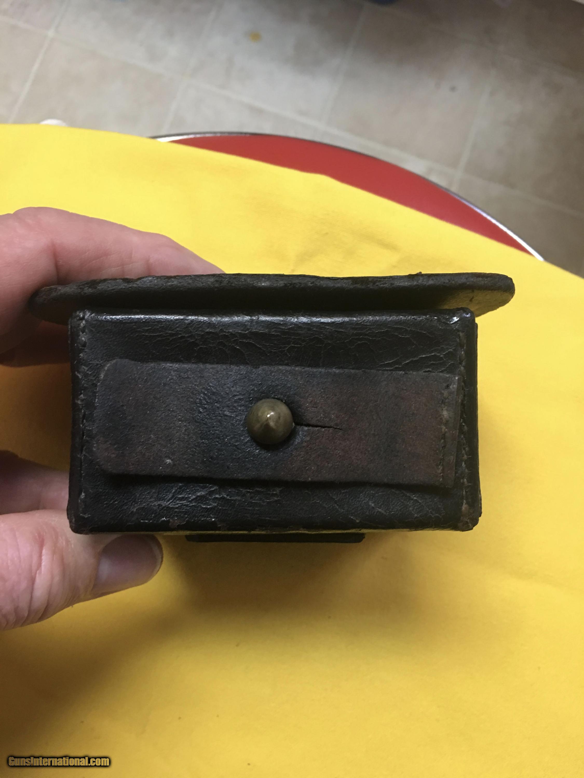 Description: Civil war Fuse box ( W/fuses ) Leather marked Navy. Yard NY 1863. all their, leather strap that holds lid closed has come loose but still their, ( CAN'T SHIP THE FUSES ??? ) $625.00 . SORRY NO CREDIT OR DEBIT CARDS, POSTAL MONEY ORDER WILL SHIP SAME DAY SOLD |