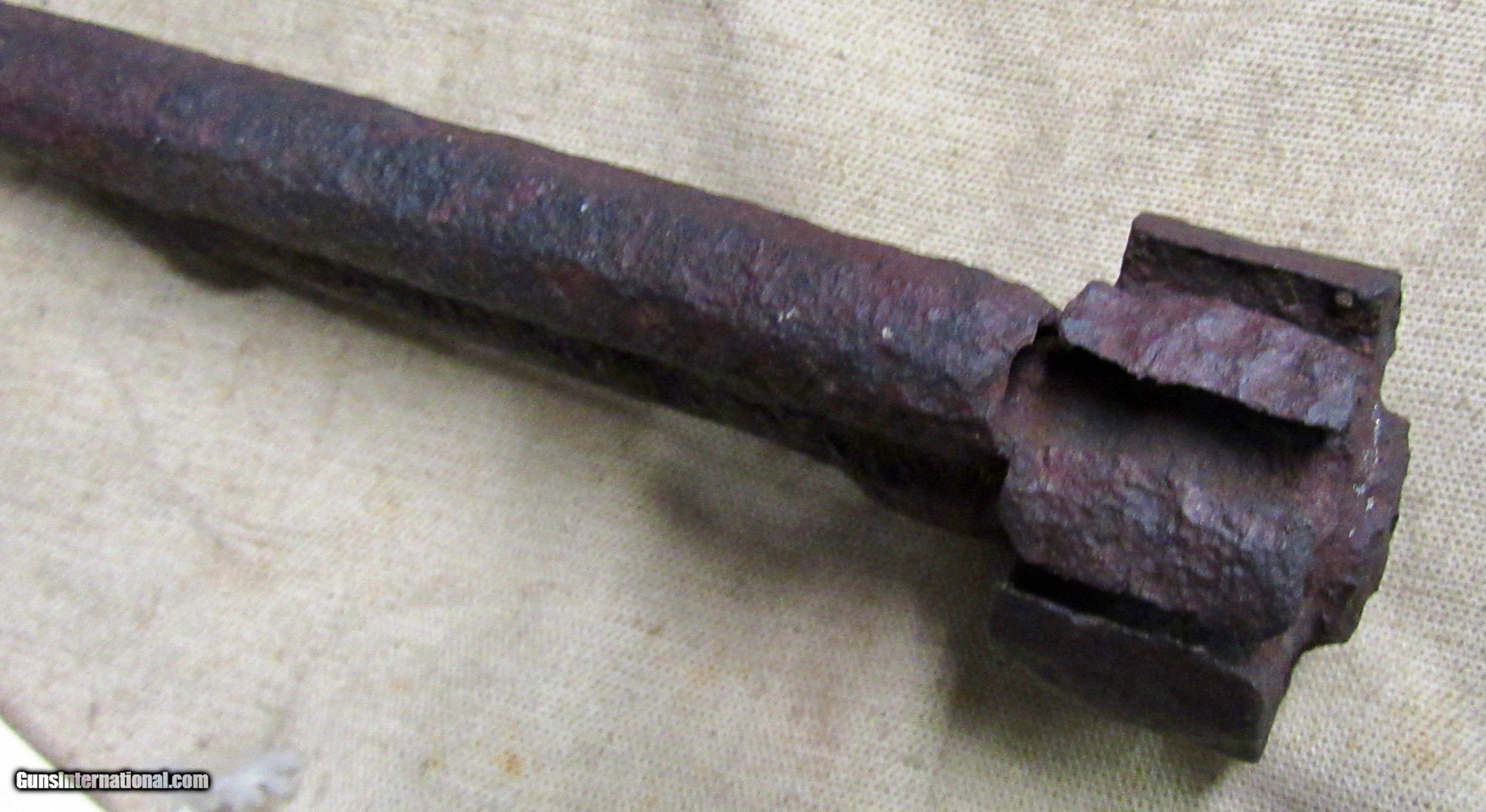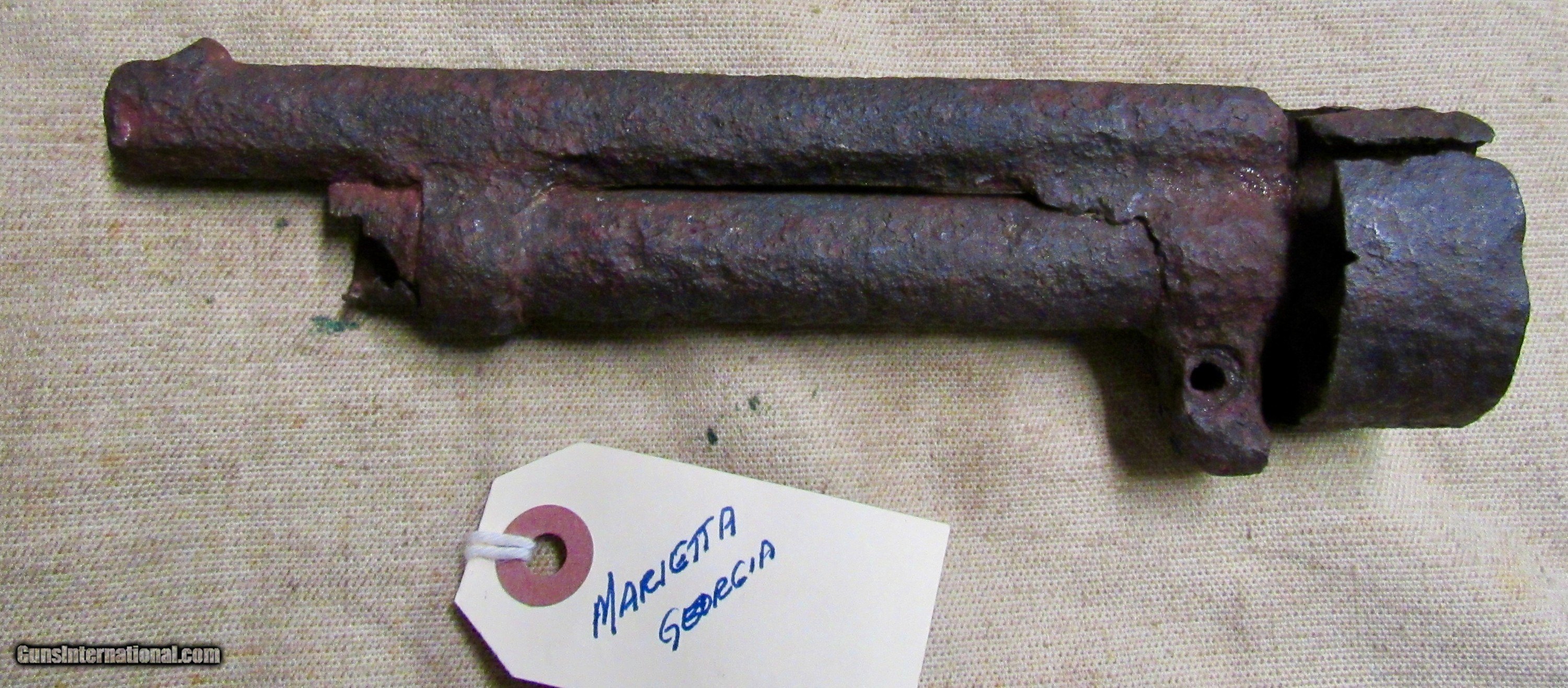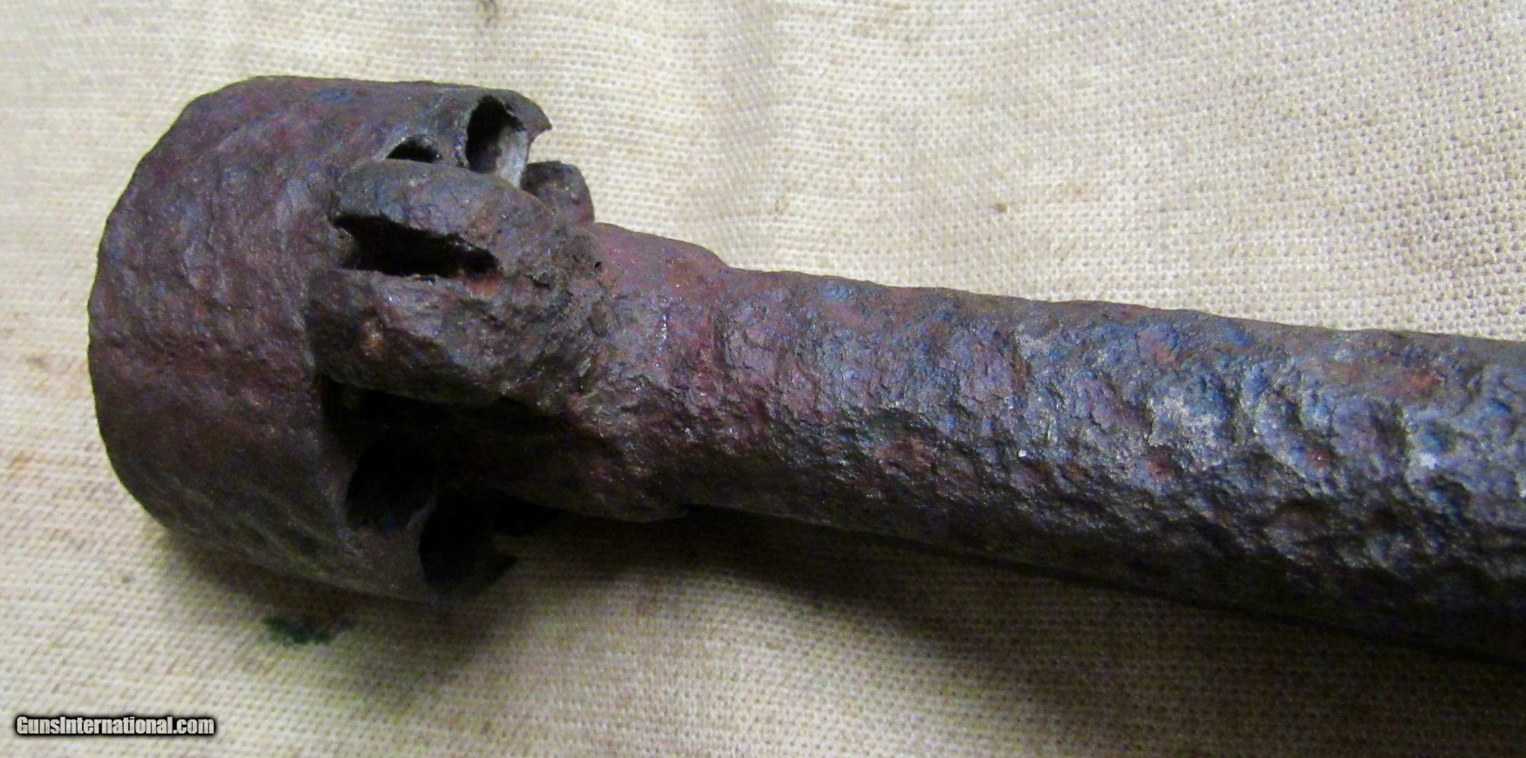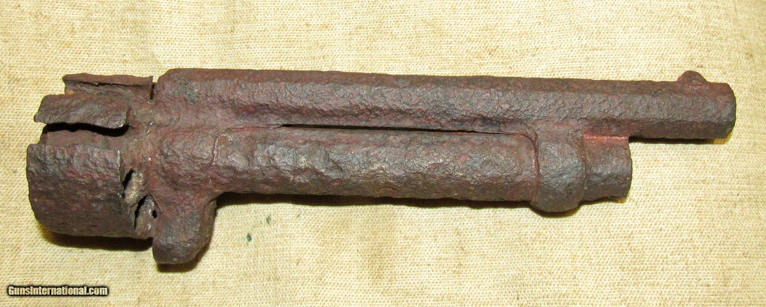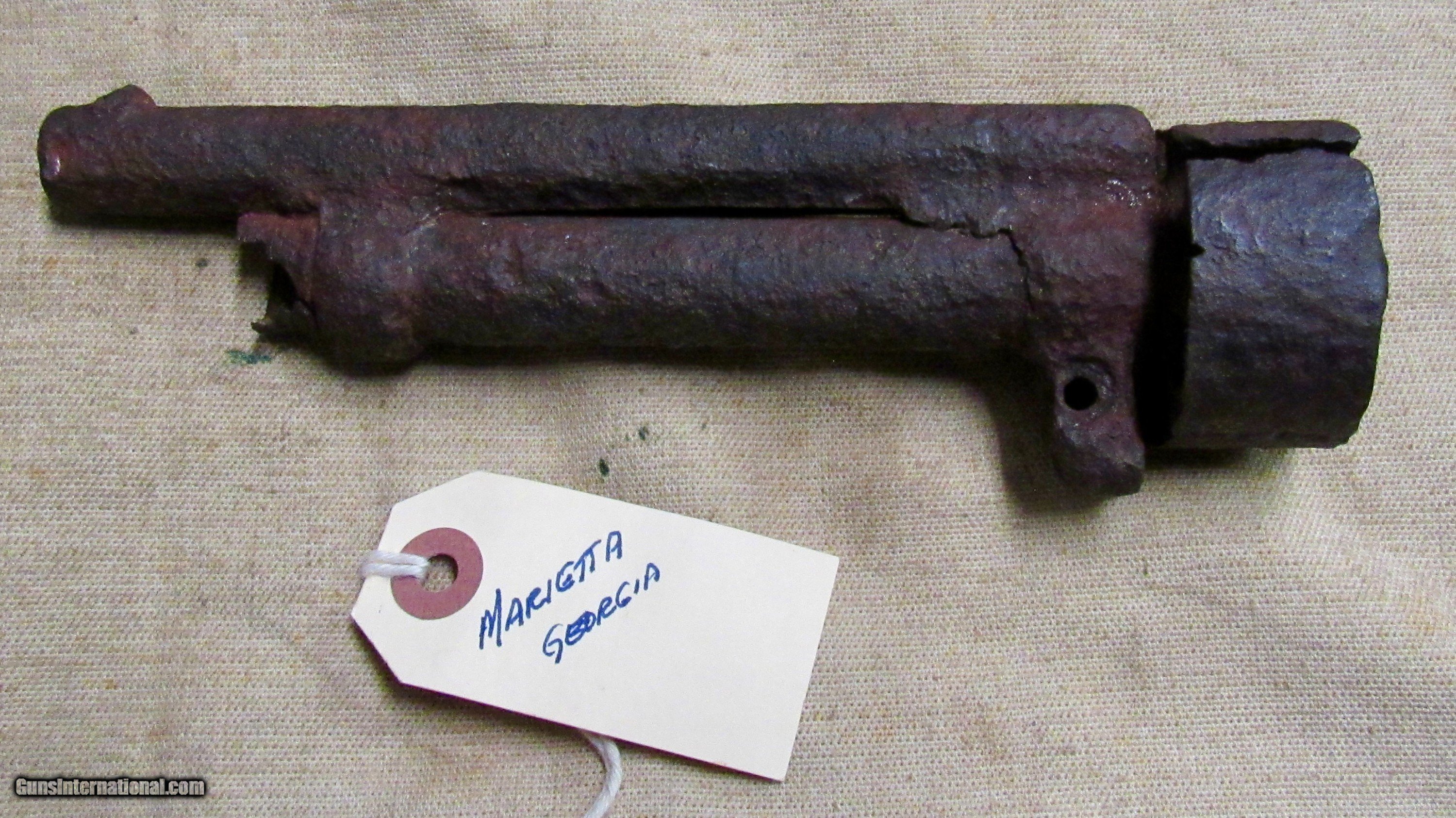 Description: If only this one could talk! Relic condition. No visible markings. Frozen. Pitting, rust, and metal loss. See pictures. Based on the octagon barrel and the notch for the ramrod on the left side towards the muzzle, as well as the latch style for securing the barrel to the long missing frame, this would be an early production 2nd model, possibly a transitional model but we can't tell without the frame. The later production 2nd models had a pin as opposed to a latch which secured the barrel to the frame. There was a tag with it stating Marietta Georgia, which we assume is where it was excavated or quite possibly found in a river or stream. The metal loss looks like it was in running water. We have no other history on this item. A super cool Civil War relic Le Mat revolver. These were quite popular among Confederate officers and soliders alike. The perfect addition to a Confederate revolver display! ANTIQUE RELIC! Buyer pays $35 shipping CONUS, including full insurance and tracking. AK & HI are extra. We accept Visa, MasterCard, Discover, American Express, checks, and money orders. ALL CARD PURCHASES ARE SUBJECT TO AN ADDITIONAL 3% CHARGE. Unfortunately we no longer offer lay-away, AT ALL. FULL payment is to be received within 10 days. We make no warranties or guarantees as to the fire-ability or safety of doing so on any of these items. Firearms are not test fired, however we do test the action to see if it functions properly for a dry fire. We do not put any ammo in it or disassemble to check internal parts. We will sometimes take off barrels or stocks in an attempt to prevent damage in shipping. We only sell used guns, and have no way to know how many rounds have been through them. WE DO NOT SHIP INTERNATIONALLY. ALL FIREARMS, REGARDLESS OF AGE OR FEDERAL ANTIQUE STATUS have to be shipped to a dealer for transfer within NY. Other states are fine, depending on your state laws. We will not ship to a New York, NJ, or CA C&R holder, a standard FFL is required. There are some states in which a C&R handgun MUST be shipped to a dealer, such as MD. Please know your local laws. We are not going to risk OUR livelihood. WE DO NOT OFFER ANY IN STORE PICK UP, EVERYTHING WILL BE SHIPPED. SOLD |