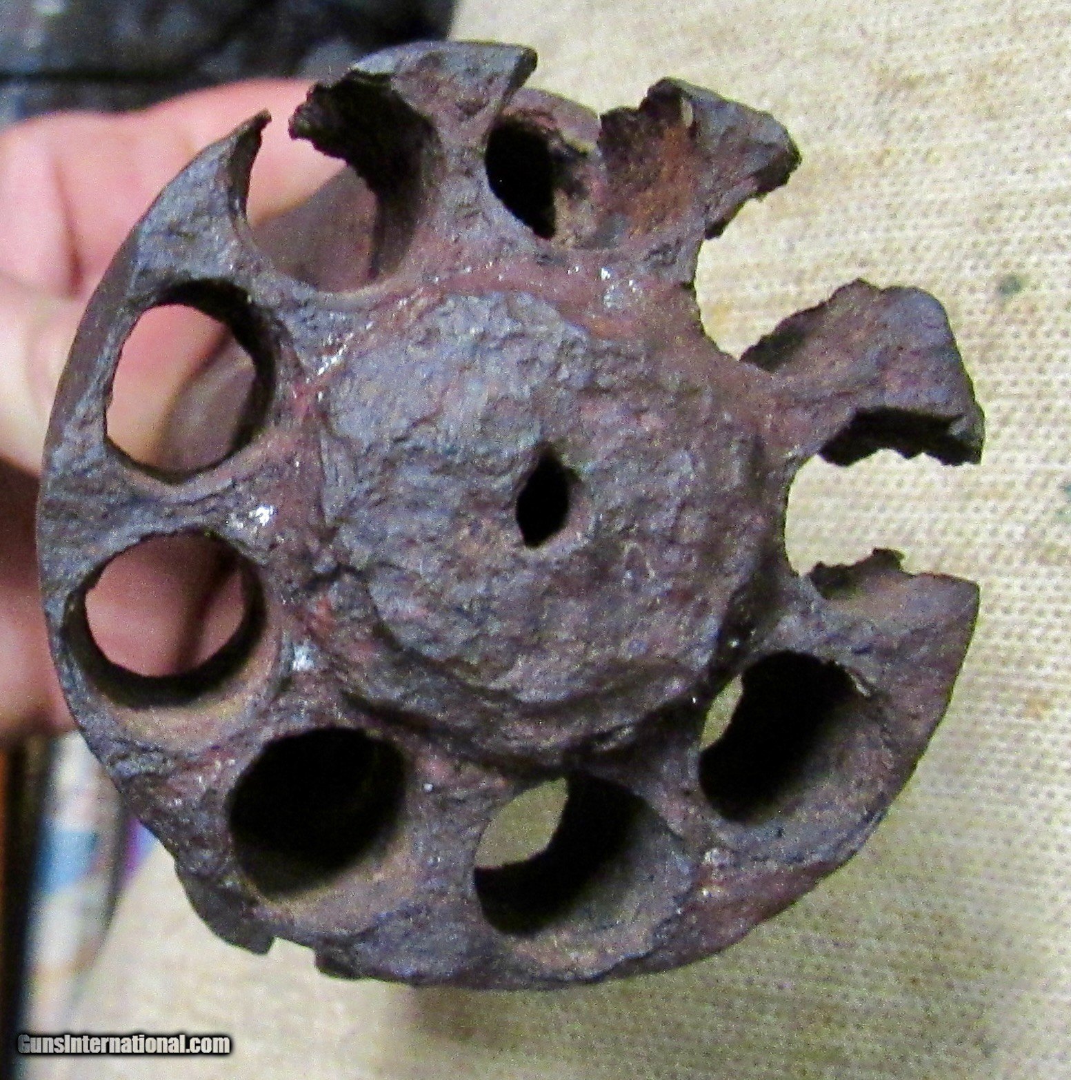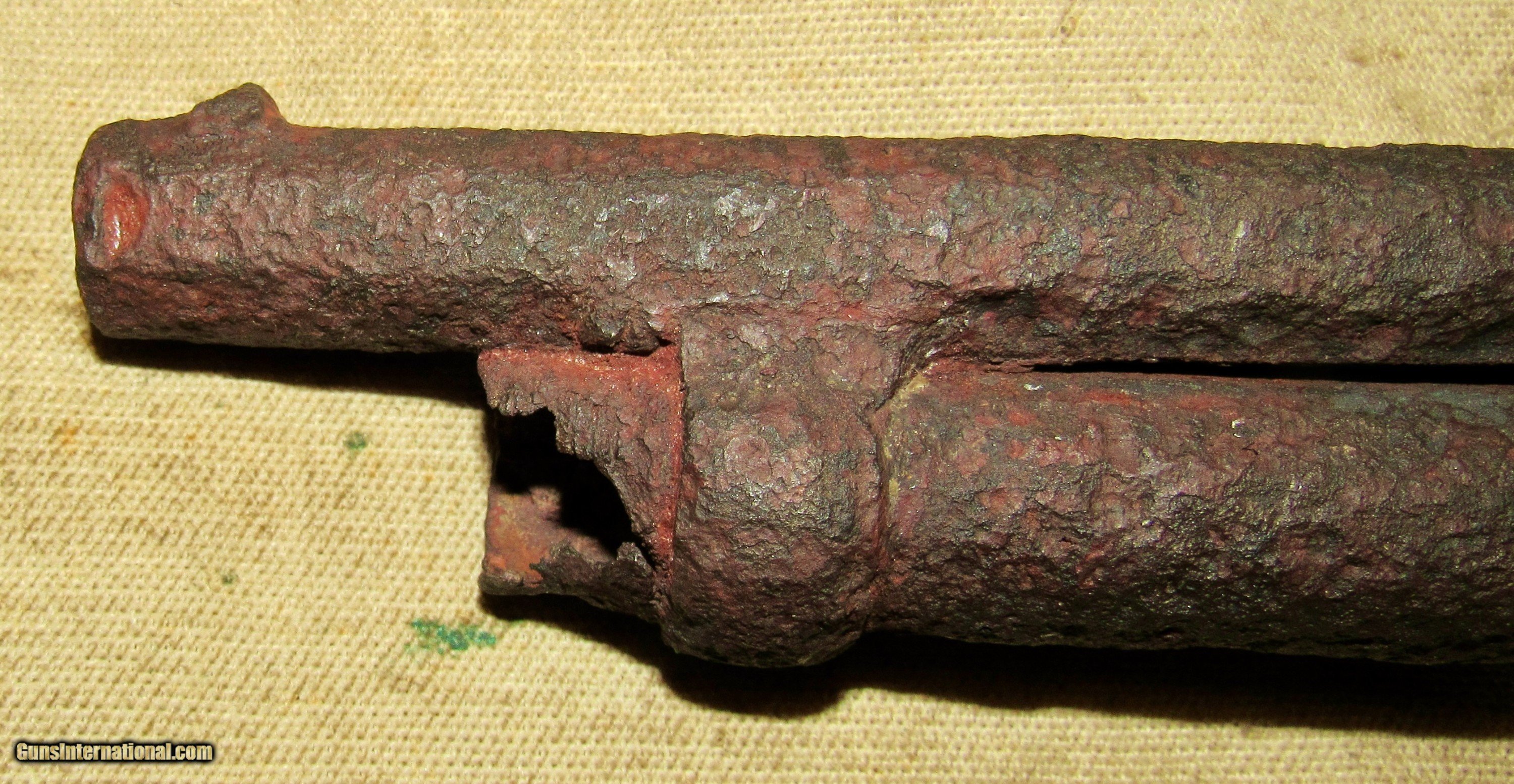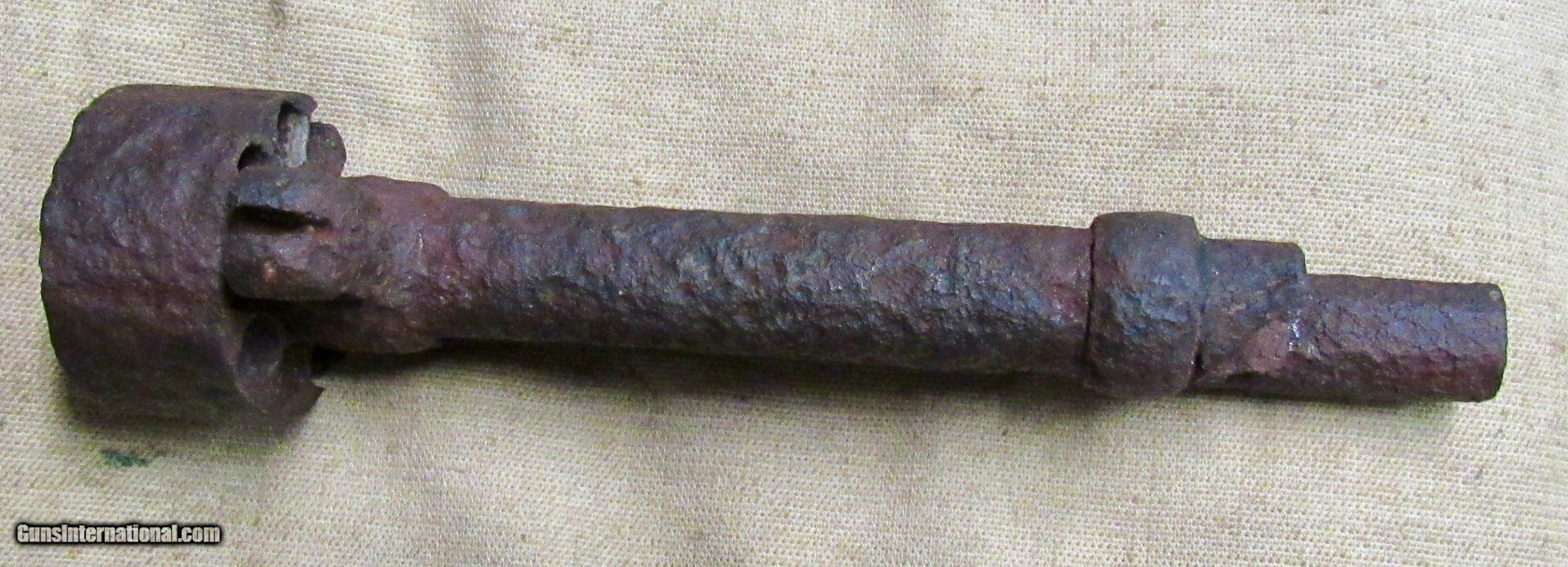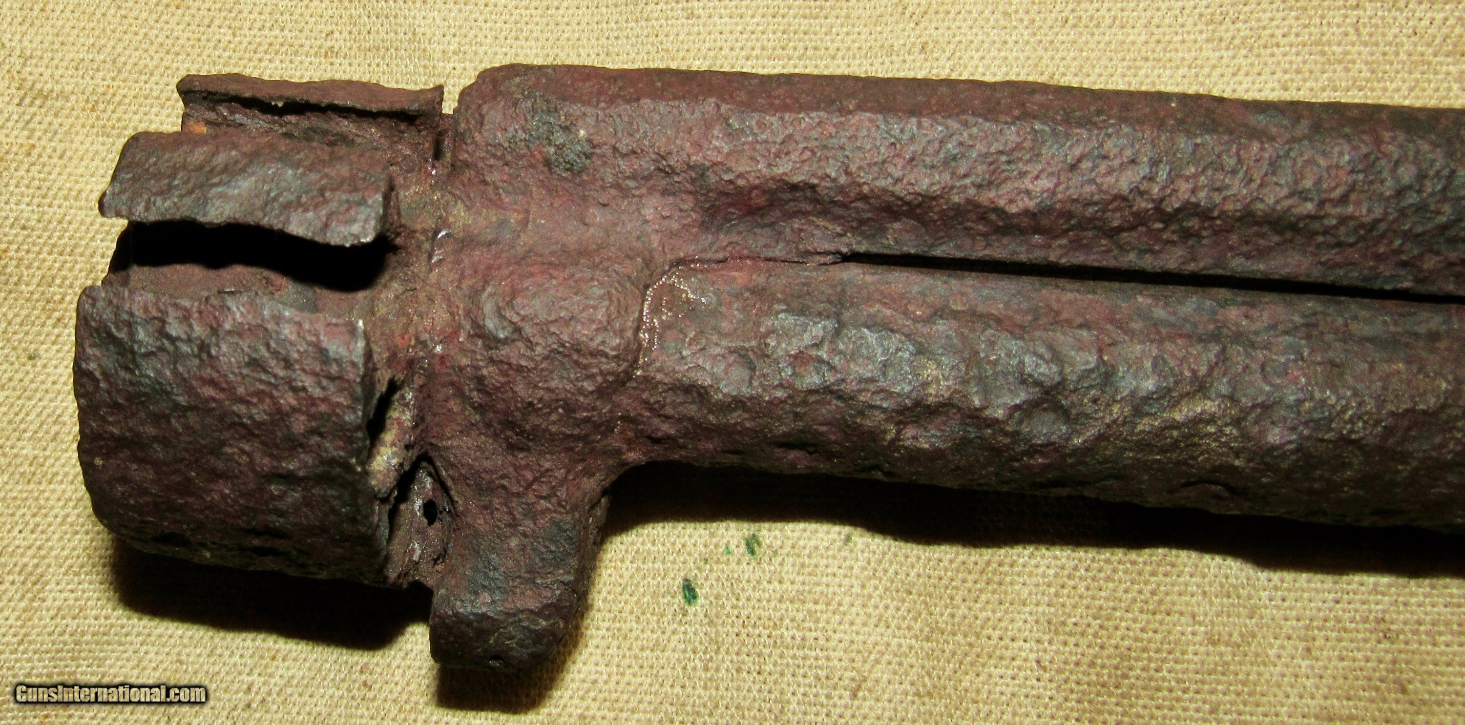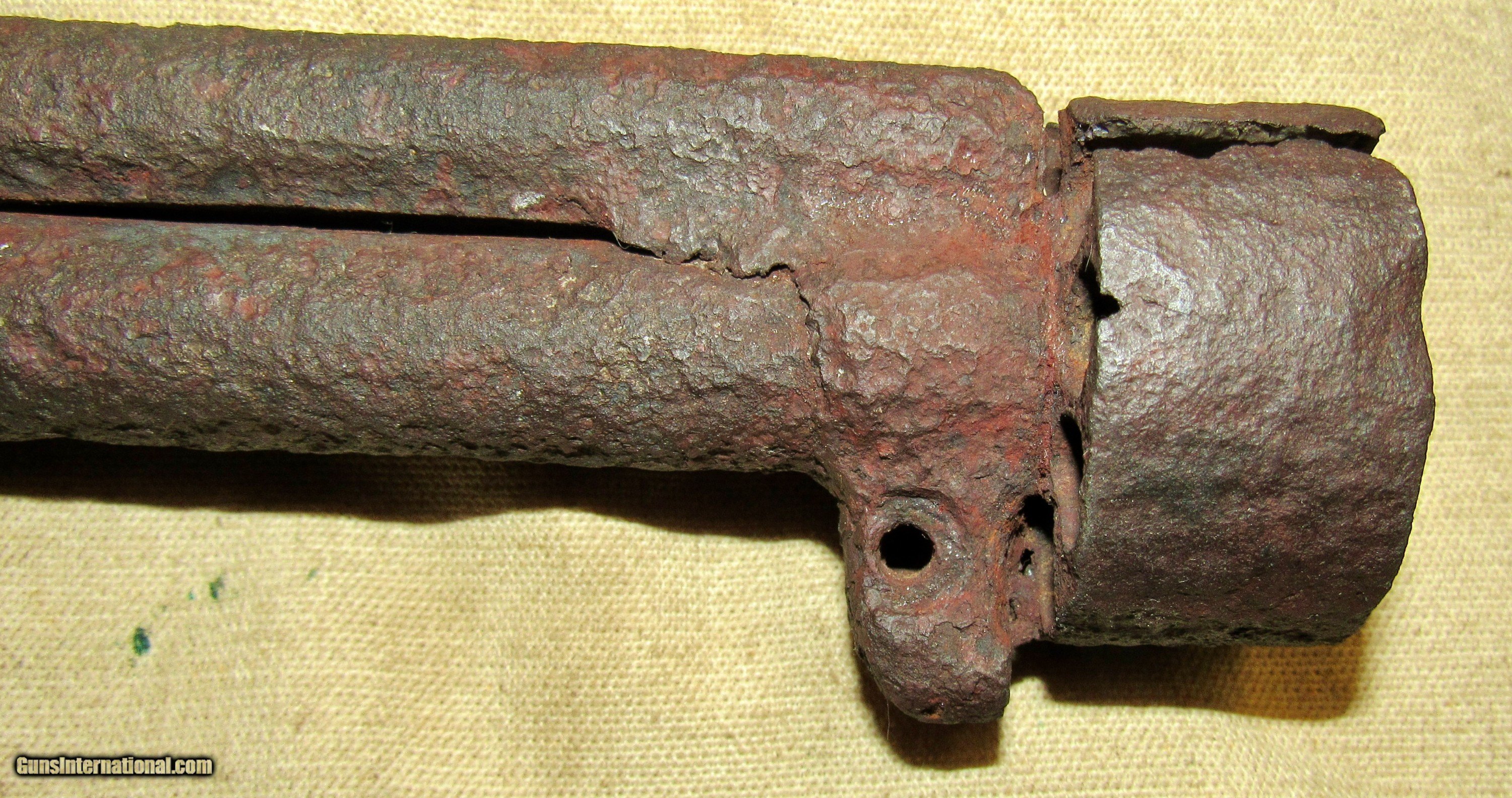 Description: If only this one could talk! Relic condition. No visible markings. Frozen. Pitting, rust, and metal loss. See pictures. Based on the octagon barrel and the notch for the ramrod on the left side towards the muzzle, as well as the latch style for securing the barrel to the long missing frame, this would be an early production 2nd model, possibly a transitional model but we can't tell without the frame. The later production 2nd models had a pin as opposed to a latch which secured the barrel to the frame. There was a tag with it stating Marietta Georgia, which we assume is where it was excavated or quite possibly found in a river or stream. The metal loss looks like it was in running water. We have no other history on this item. A super cool Civil War relic Le Mat revolver. These were quite popular among Confederate officers and soliders alike. The perfect addition to a Confederate revolver display! ANTIQUE RELIC! Buyer pays $35 shipping CONUS, including full insurance and tracking. AK & HI are extra. We accept Visa, MasterCard, Discover, American Express, checks, and money orders. ALL CARD PURCHASES ARE SUBJECT TO AN ADDITIONAL 3% CHARGE. Unfortunately we no longer offer lay-away, AT ALL. FULL payment is to be received within 10 days. We make no warranties or guarantees as to the fire-ability or safety of doing so on any of these items. Firearms are not test fired, however we do test the action to see if it functions properly for a dry fire. We do not put any ammo in it or disassemble to check internal parts. We will sometimes take off barrels or stocks in an attempt to prevent damage in shipping. We only sell used guns, and have no way to know how many rounds have been through them. WE DO NOT SHIP INTERNATIONALLY. ALL FIREARMS, REGARDLESS OF AGE OR FEDERAL ANTIQUE STATUS have to be shipped to a dealer for transfer within NY. Other states are fine, depending on your state laws. We will not ship to a New York, NJ, or CA C&R holder, a standard FFL is required. There are some states in which a C&R handgun MUST be shipped to a dealer, such as MD. Please know your local laws. We are not going to risk OUR livelihood. WE DO NOT OFFER ANY IN STORE PICK UP, EVERYTHING WILL BE SHIPPED. SOLD |