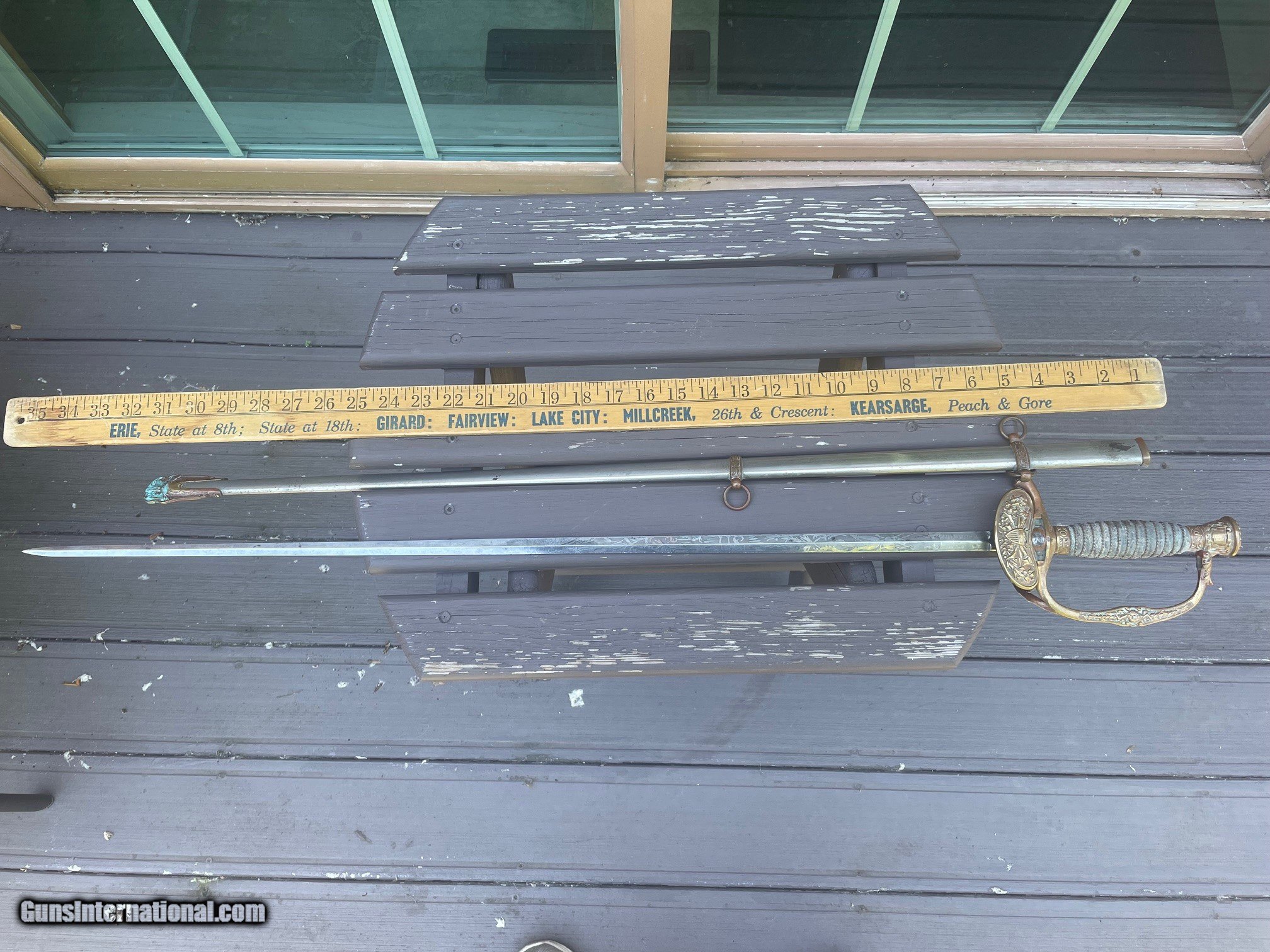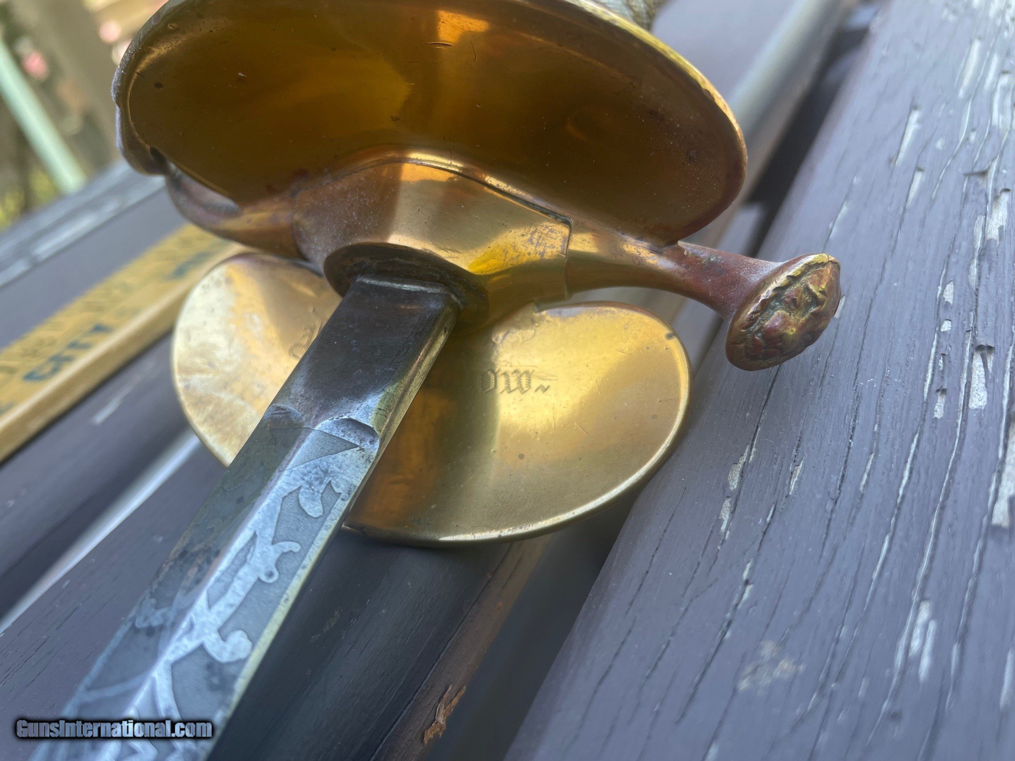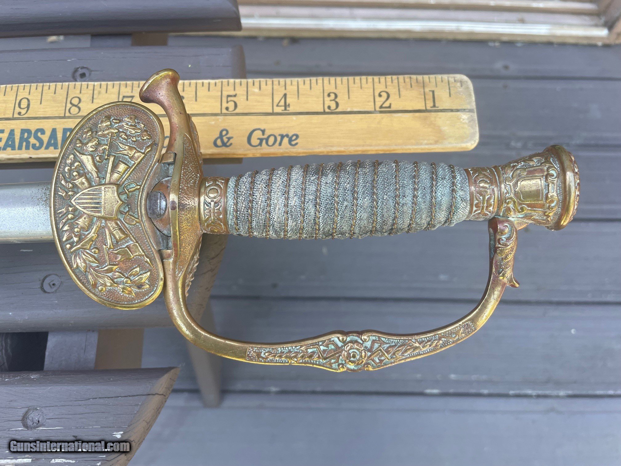 Description: THIS VINTAGE SWORD BY WAHLANSTETH & SNAT??? OF BUFFALO, N.Y. SHARK SKIN HANDLE, ENGRAVED BLADE, UNDER THE HAND GUARD IS ENGRAVED D.D.CUDLOW. I SHIP USPS INSURED TO THE LOWER 48 STATES ONLY SOLD |