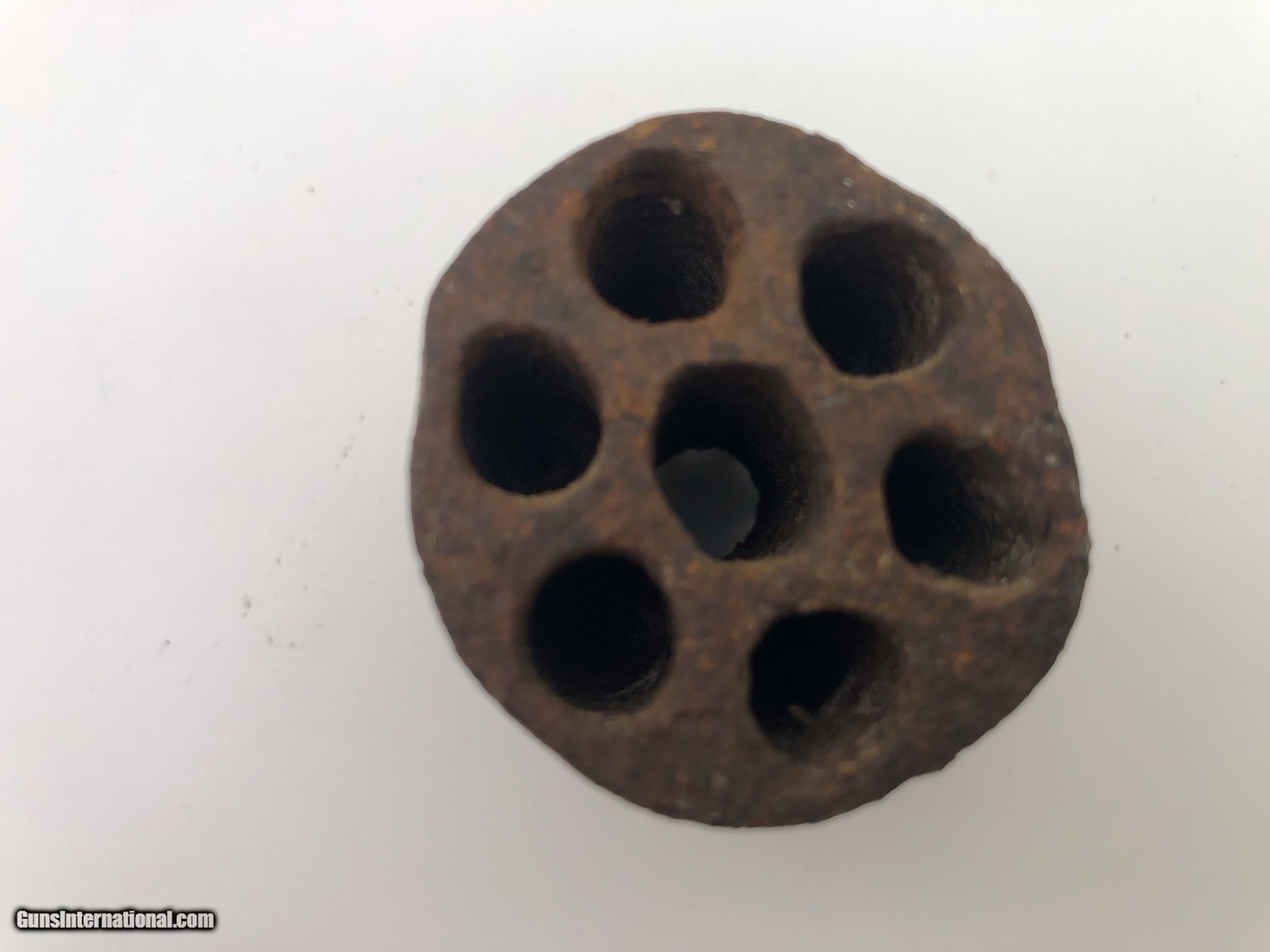 Description: A rusted relic percussion cylinder fo a Colt Navy revolver. This would make a great paper weight for a collectors desk. SOLD |