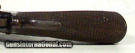 Description: Deane Adams & Deane Revolver; SN 14075; 6” barrel; .44 cal. double action percussion; NEARLY ALL of the ORIGINAL finish remains; PERFECT bore & action; this gun was bought in Mexico City about 25 years ago; ONE OF THE BEST EXAMPLES IN EXISTENCE; antique, no FFL/C&R required for shipping; All items shipped fully insured Priority Mail- -Hand guns $30 --Long guns $45-- Spurs $30-- Knives, Swords & Sabers $30 (Texas residents please add 6.75% sales tax); return policy: three days inspection from the date the item is received; full refund of shipping both ways ONLY IF THE ITEM IS MISREPRESENTED. Note: International sales only as laws permit. Will ship C&R eligible items to C&R license. Antiques shipped without license to anyone EXCEPT New Jersey and City of New York where a FFL is required. SOLD |