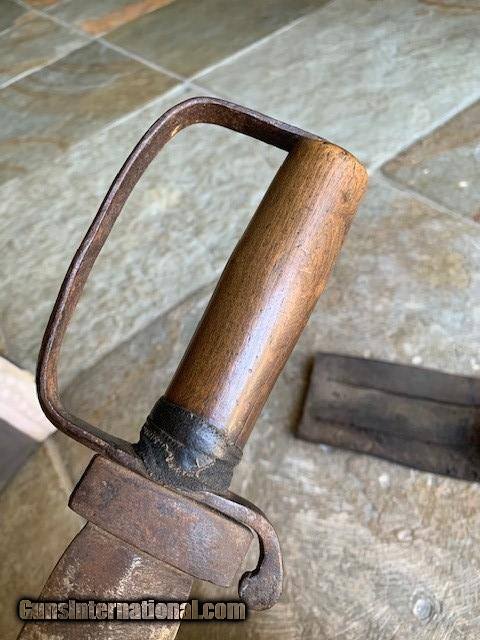 Description: Family Estate Fresh Civil War Confederate D-Guard Bowie Knife With Scabbard ..Entire Large Knife measures 19 Inches In Scabbard ...Uncleaned as purchased from estate SOLD |