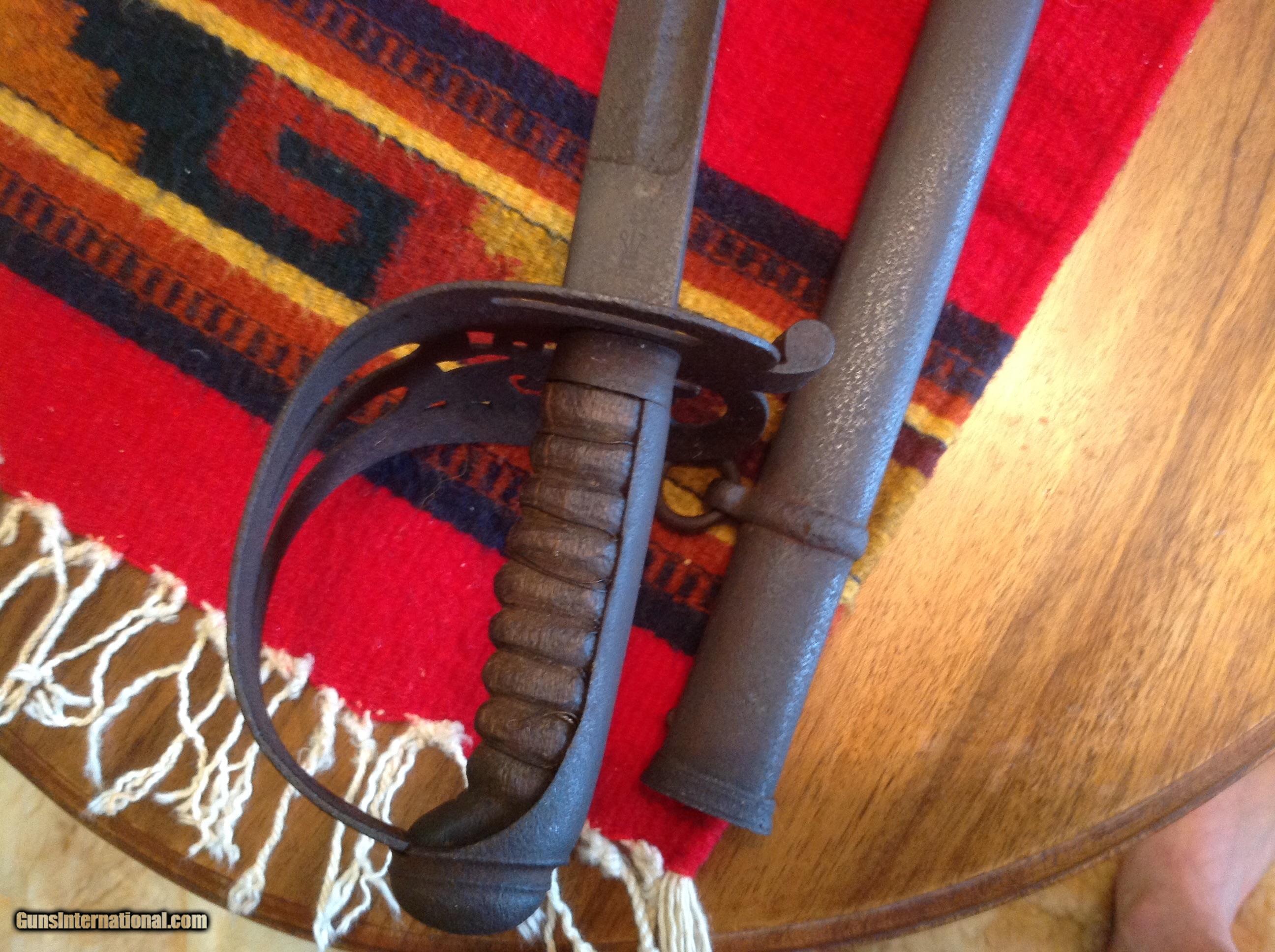 Description: Early battlefield pick-up or barn find imported Federal Field Officers sword. In the black patina. Pitting on blade and scabbard as shown in pictures. Great relic and rustic sword that has seen the elephant. Cool sword! Add $35 for shipping. SOLD |