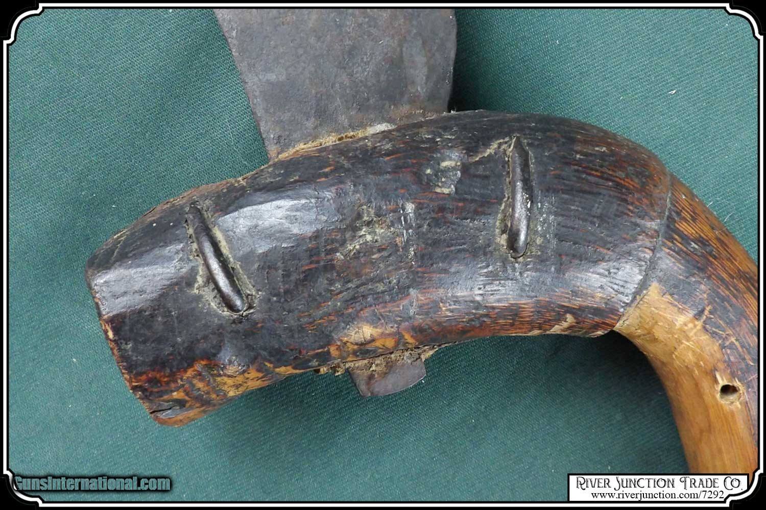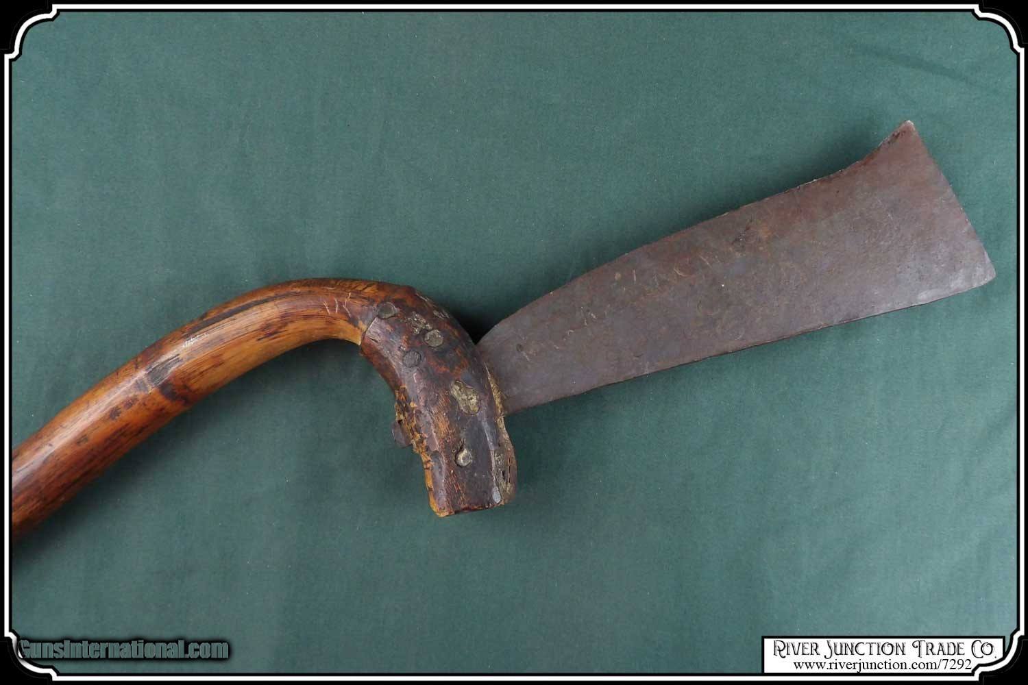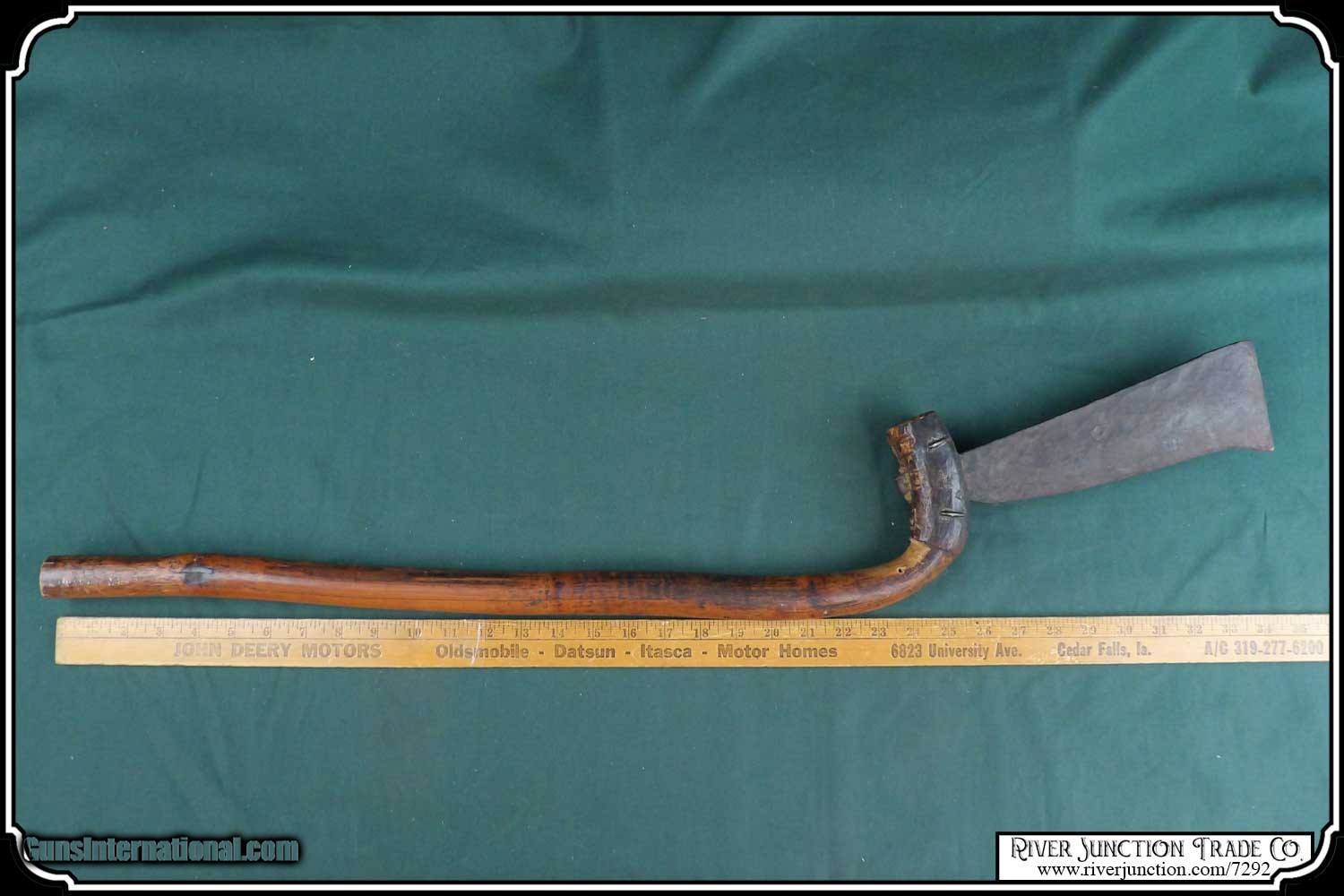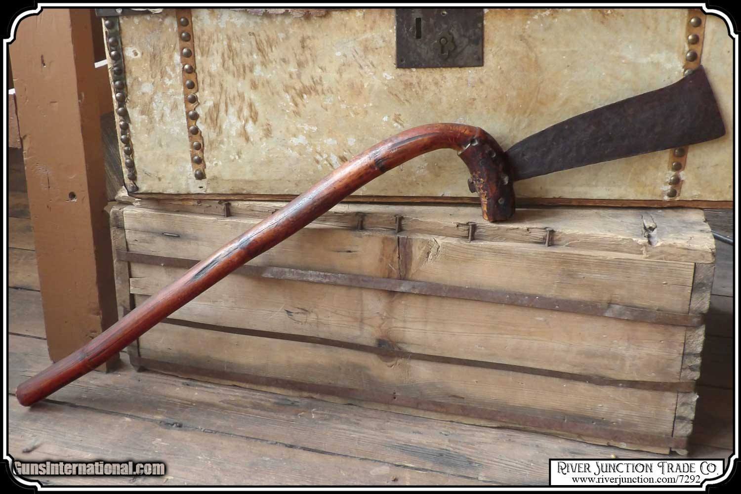 Description: A pioneer anti-deer apple tree trimmer and TIPI pole trimmer. Our Early American Homesteaders had to live off the land. They had to take every opportunity they had and made many primitive tools to help. This is one of those handmade, hand forged tools. If they were fortunate enough to have an apple tree or 2 on their land they would likely have deer as well. That was a good thing and a bad thing. The deer love the apples and they ate them right off the tree. That was good because it brought the deer into rifle range and that meant fresh meat for the homesteaders and his growing family, but then the family was left with the bruised, rotting , stomped, half eaten and pooped on, apples on the ground for the family and that was a bad thing. So he needed a tool to cut the lower limbs off the tree and that was just what this tool was made for. It caused the deer to eat the fallen apples off the ground, leaving choice apples on the tree to be picked and stored in this pioneers underground root cellar, either canned, or hung from the ceiling in a flour sack to stay cool and dry and that was a good thing. A close look at this very rare pioneer made tool will tell that it was made from what ever was at hand. A true Early American Museum Piece. If you have an apple tree or an orchard or cabin you need this great piece of pioneer history, to remember those that came before us.. Price: $169.95 Buy Now Contact Seller |