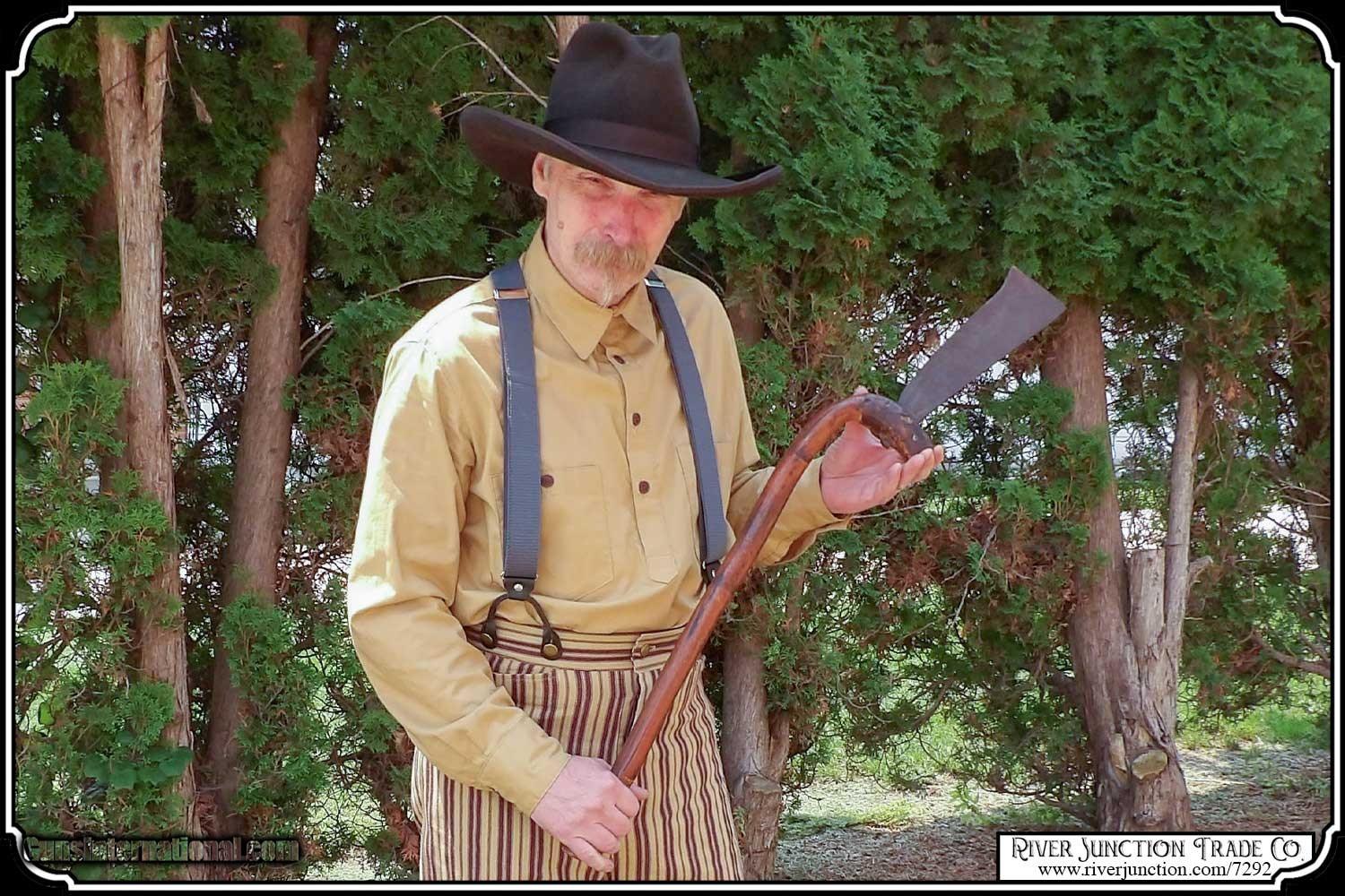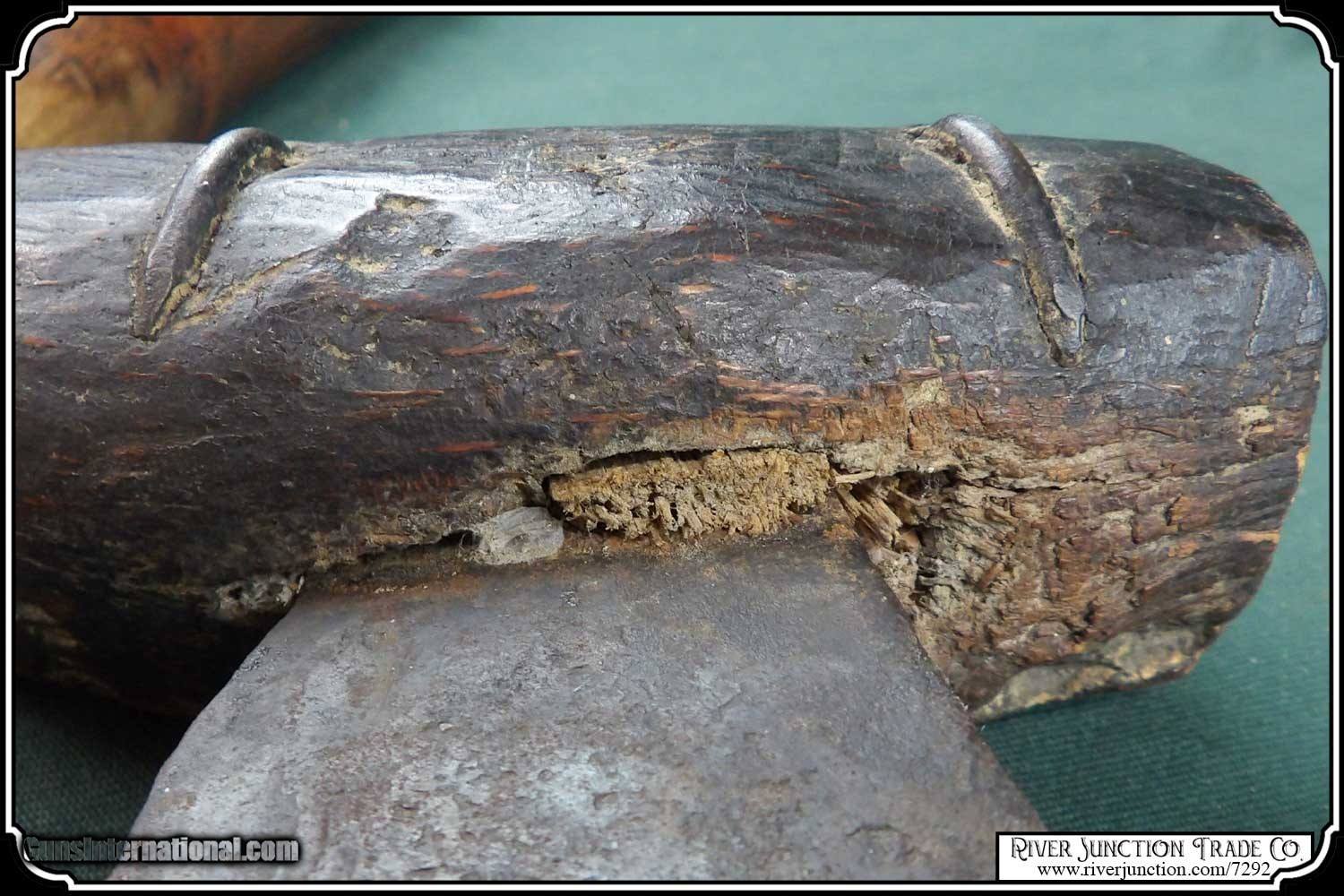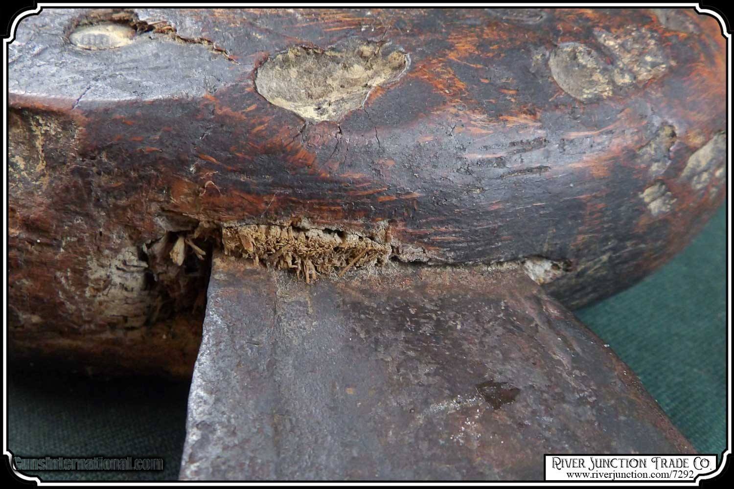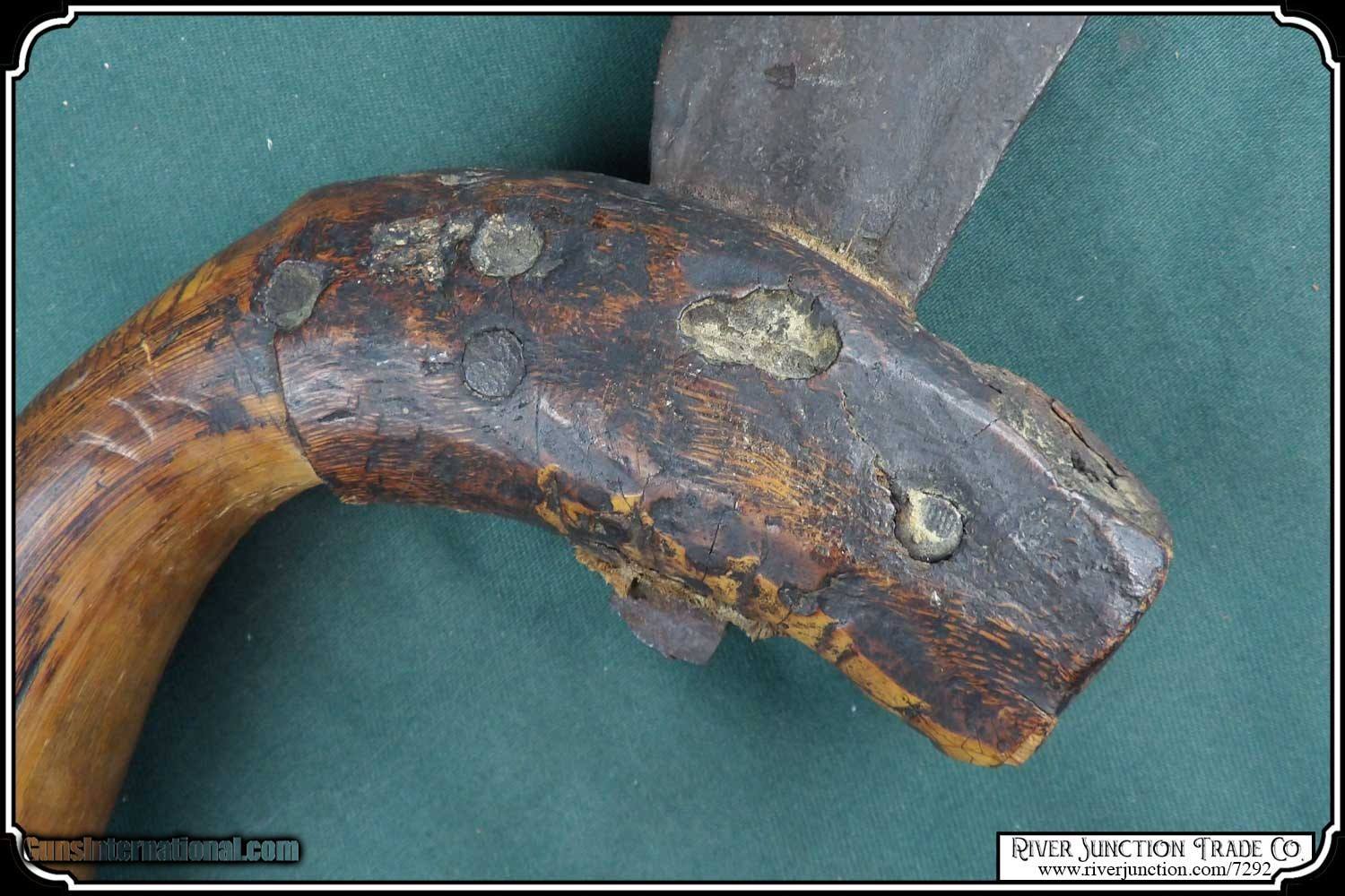 Description: A pioneer anti-deer apple tree trimmer and TIPI pole trimmer. Our Early American Homesteaders had to live off the land. They had to take every opportunity they had and made many primitive tools to help. This is one of those handmade, hand forged tools. If they were fortunate enough to have an apple tree or 2 on their land they would likely have deer as well. That was a good thing and a bad thing. The deer love the apples and they ate them right off the tree. That was good because it brought the deer into rifle range and that meant fresh meat for the homesteaders and his growing family, but then the family was left with the bruised, rotting , stomped, half eaten and pooped on, apples on the ground for the family and that was a bad thing. So he needed a tool to cut the lower limbs off the tree and that was just what this tool was made for. It caused the deer to eat the fallen apples off the ground, leaving choice apples on the tree to be picked and stored in this pioneers underground root cellar, either canned, or hung from the ceiling in a flour sack to stay cool and dry and that was a good thing. A close look at this very rare pioneer made tool will tell that it was made from what ever was at hand. A true Early American Museum Piece. If you have an apple tree or an orchard or cabin you need this great piece of pioneer history, to remember those that came before us.. Price: $169.95 Buy Now Contact Seller |