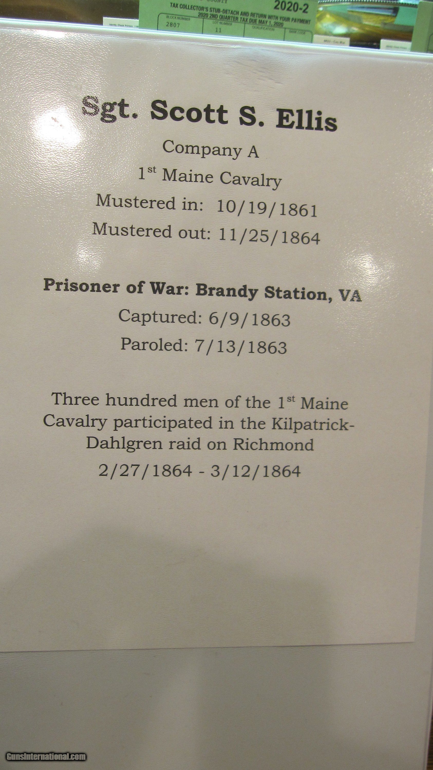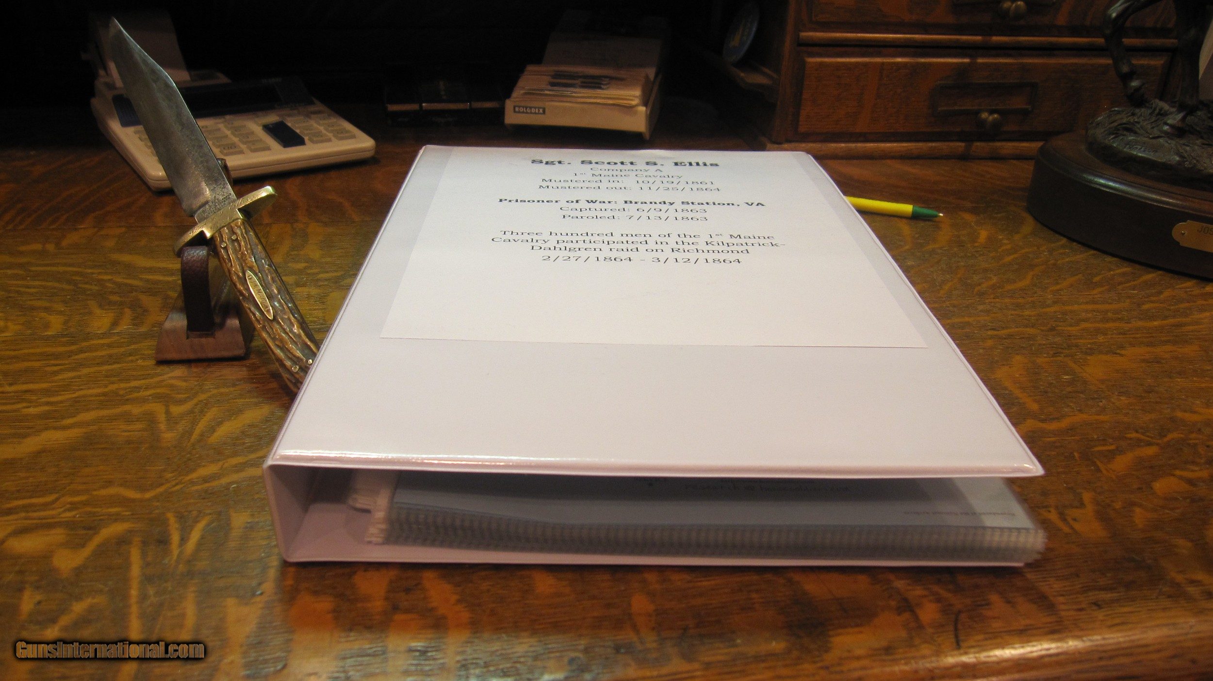 IDENTIFIED CIVIL WAR SIDE KNIFE OWNED BY SGT. SCOTT S. ELLIS 1ST MAINE CAVALRY