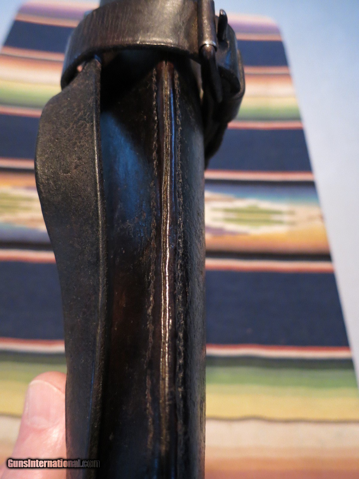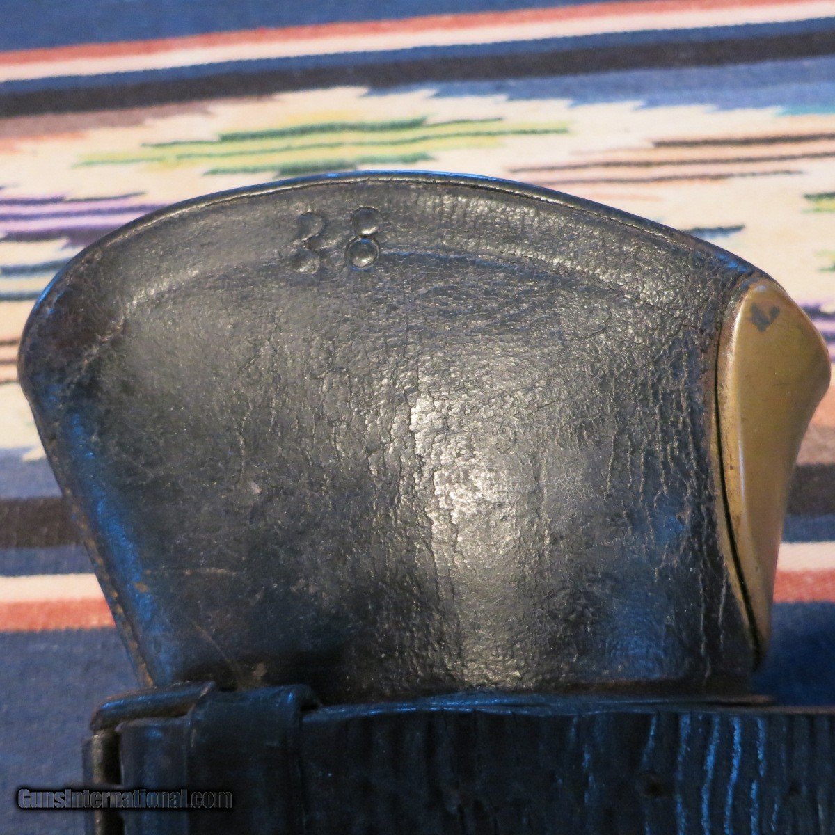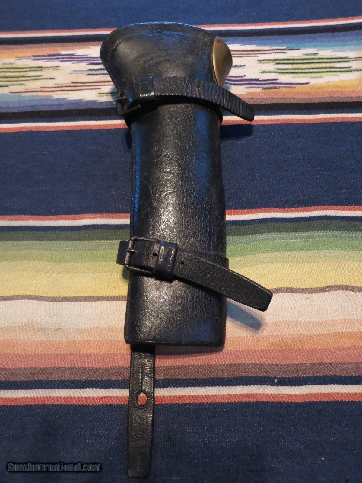 Description: Listed here is an excellent example of the Indian Wars period U.S. saddle scabbard or boot for the Springfield Trapdoor carbine. All seams are tight, all straps are there and not broken and no repairs have been made. Call Steve at 812-459-2234 any time between 8:00AM and 8:00PM central time to discuss. Purchase of this item will include free shipping anywhere in the U.S. I do not ship outside the U.S. SOLD |