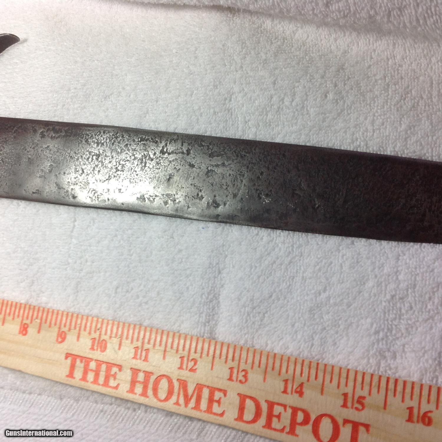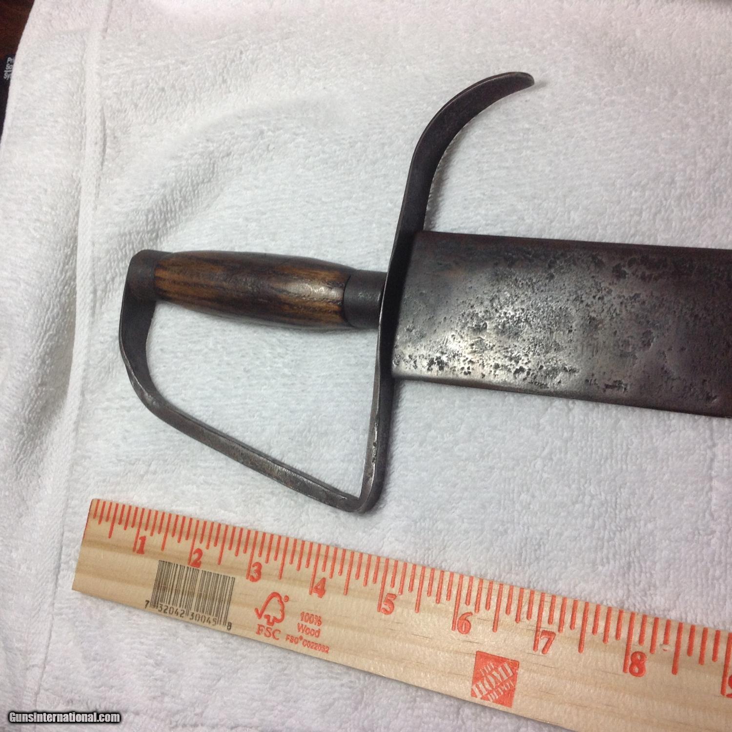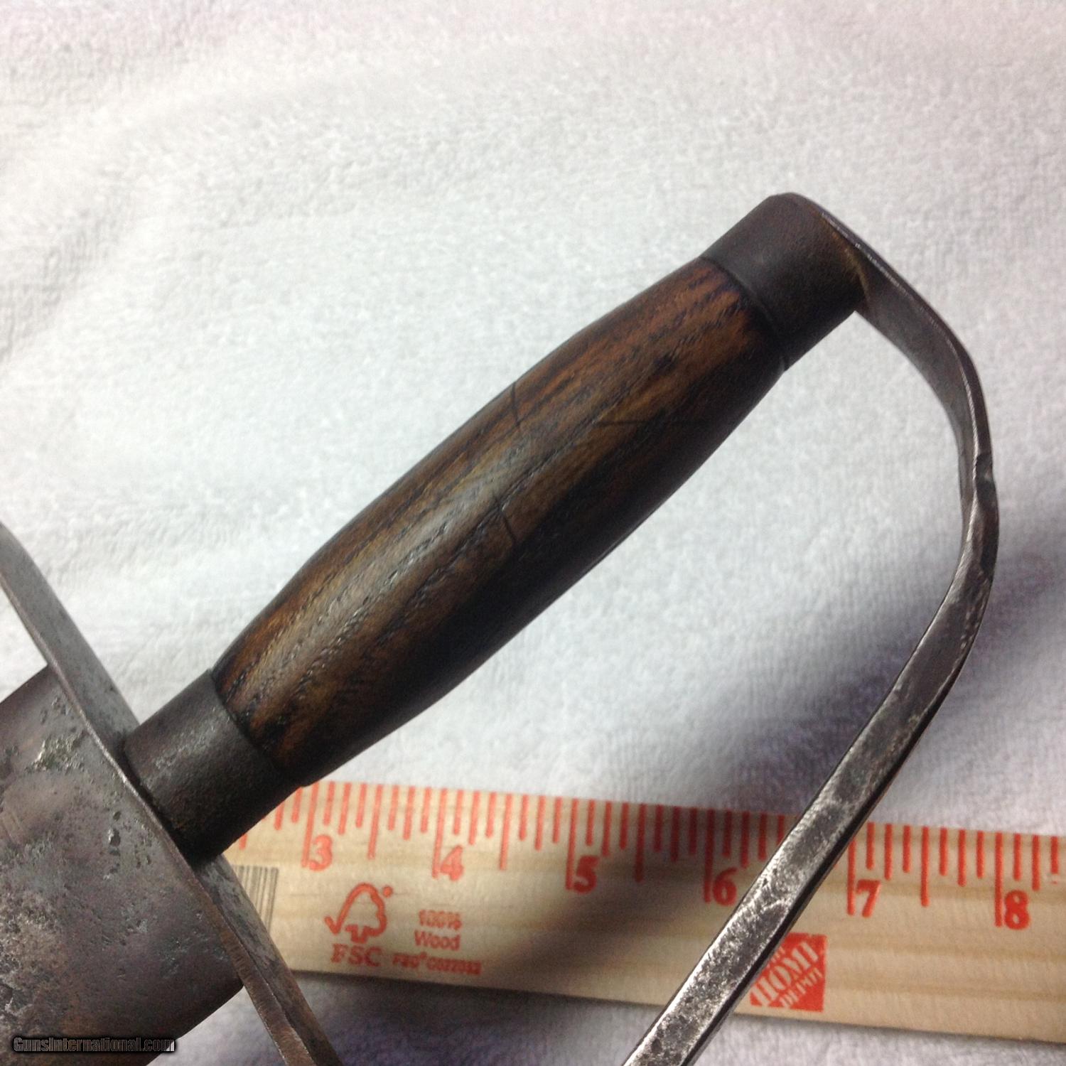 Description: SALE PENDING. Excellent condition Confederate D Guard. 20.5 inches long. Beautiful patina on blade. Never cleaned. Solid handle and grip. This could be Arsenal made and if not it was made by a very skilled Blacksmith. Came out of a Memphis Tennessee estate. Can send extra photos if needed. Killer price! Good luck finding a real Civil War D Guard this size for this price anywhere. SOLD |