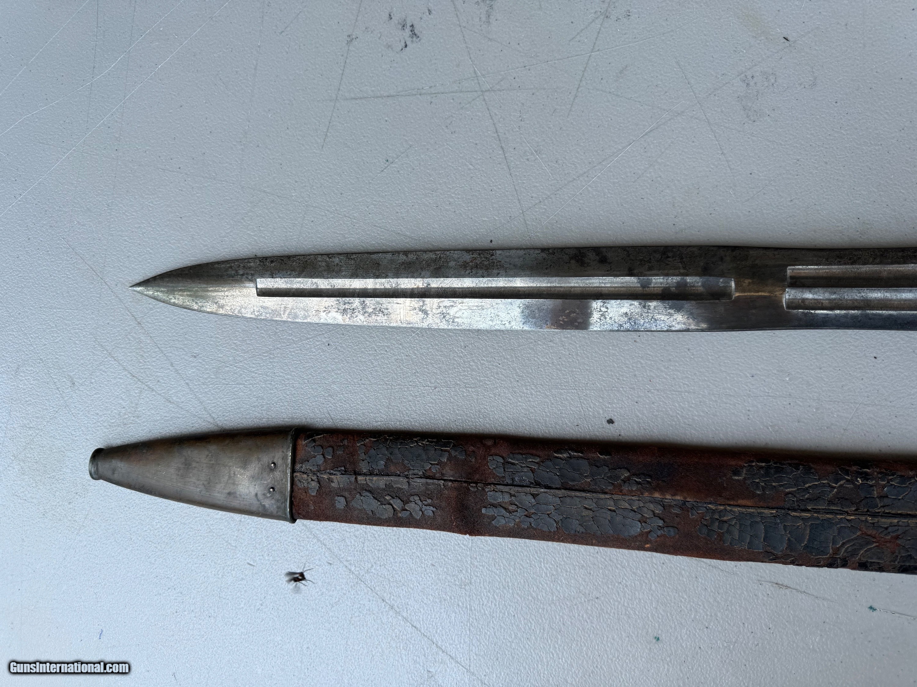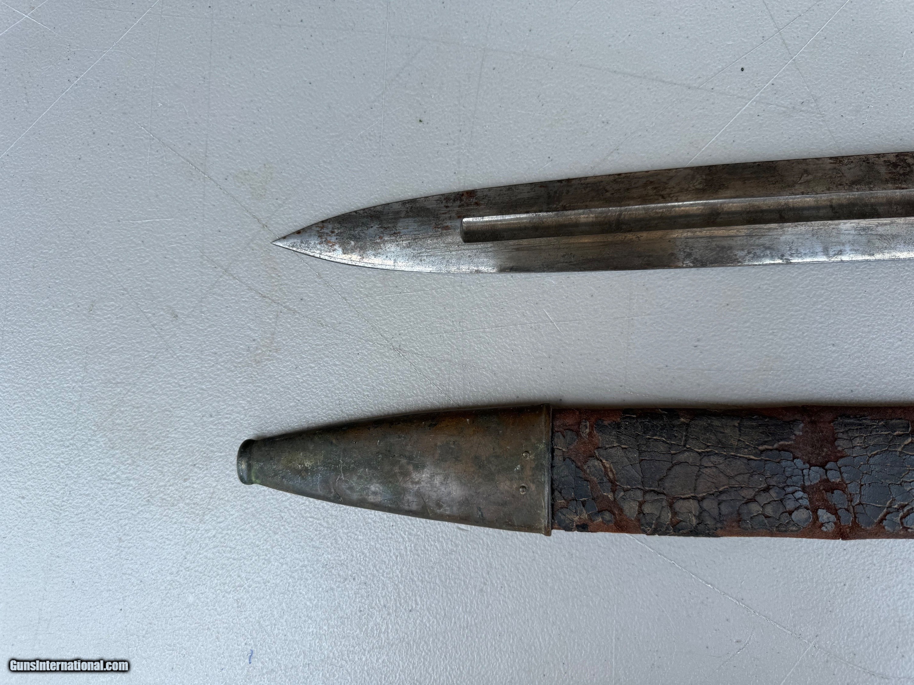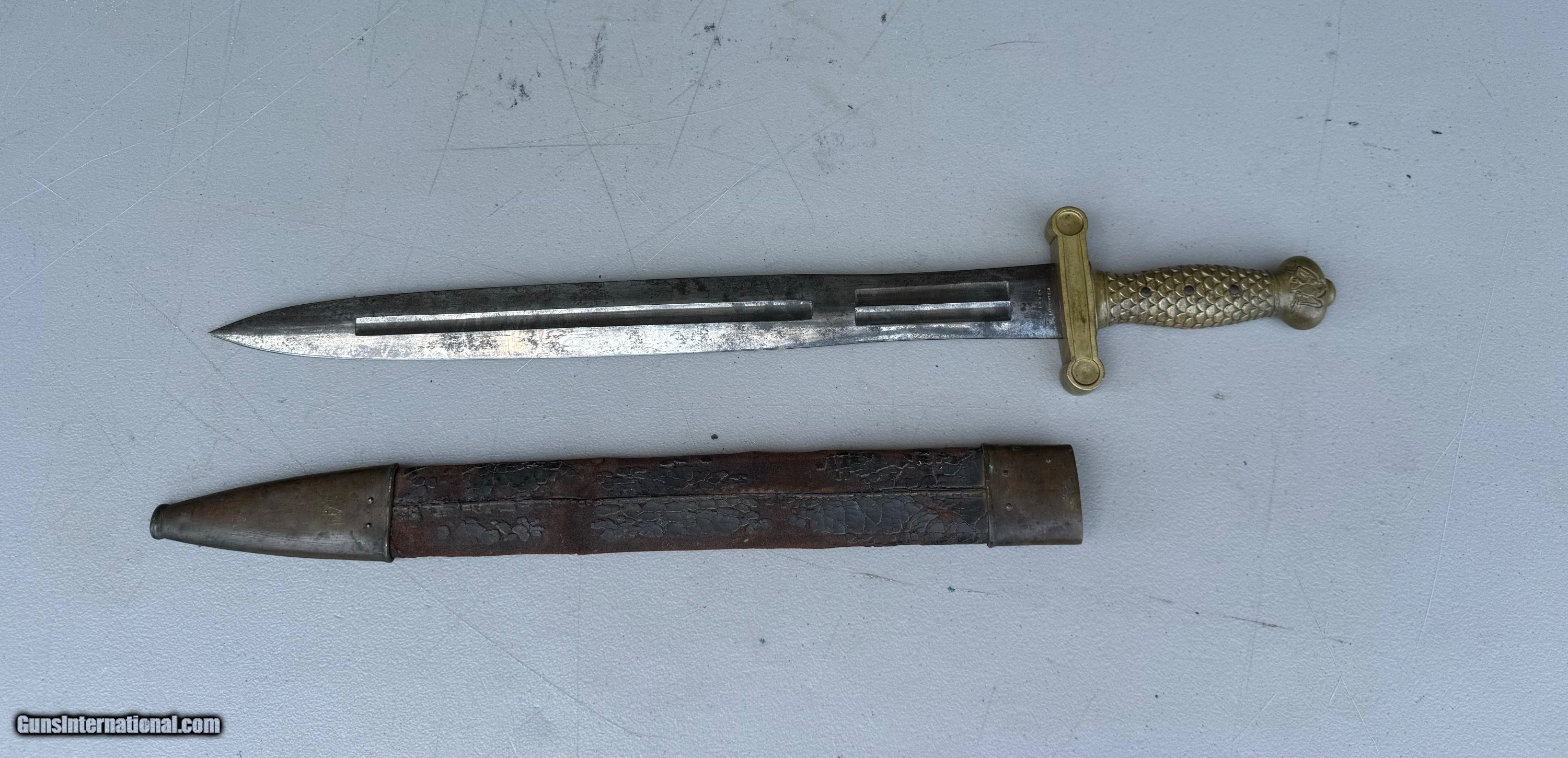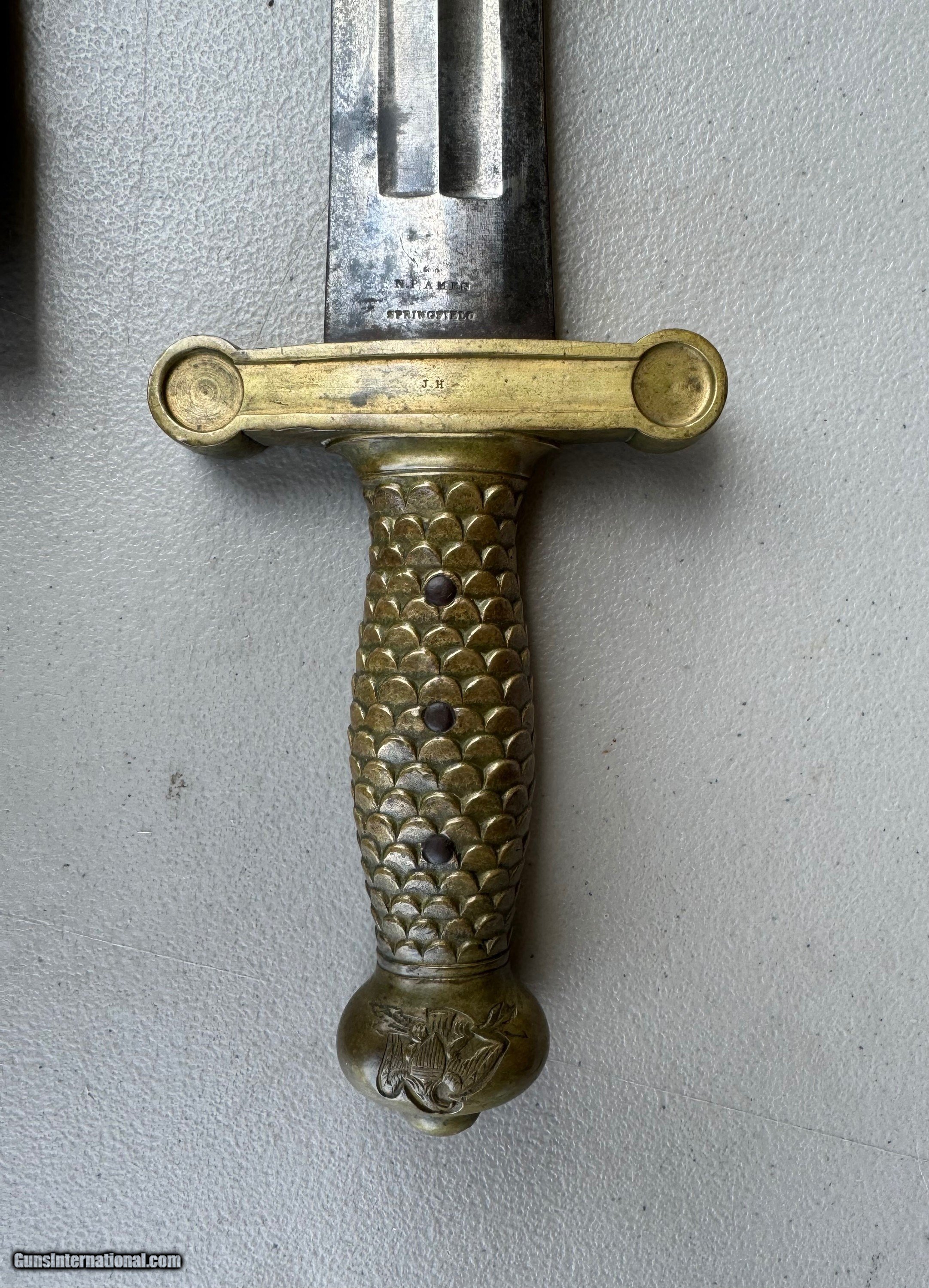 Description: Here's a Excellent Example of a True Survivor! N.P Ames Artillery Short Sword dated 1944 . Has correct inspector stamped with W.A.T. And J.H inspectors ! Blade is untouched original . Rare thing about this Short Sword is that the original leather scabbard has survived 180 years ! The leather on the Scabbard is in poor condition but is still all there . Brass parts are in excellent original condition. Overall a excellent Condition Survivor With U.S. American History ! Please review my photos and email me with any questions? 3 day inspection as allways ! Thank you for looking , Little Jo SOLD |