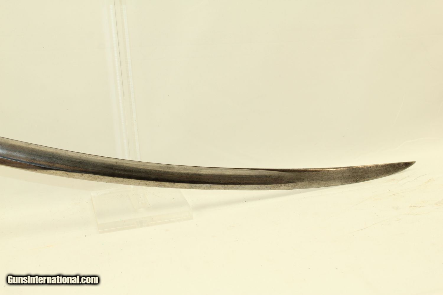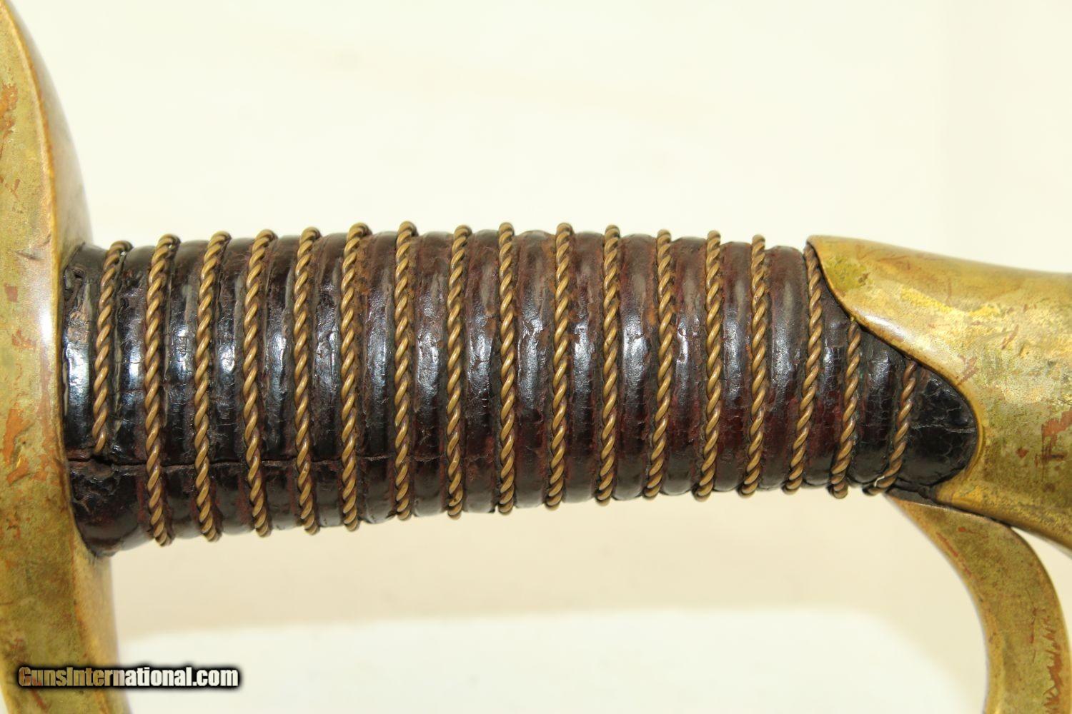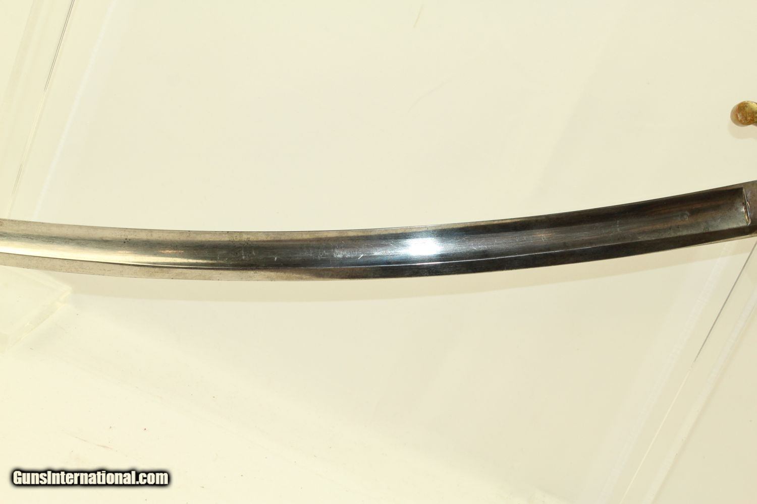Description: Nice Antique AMES U.S. Model 1840 ARTILLERY Saber Dated “1864” & Inspected by John Hannis Here we present an antique U.S. Model of 1840 Mounted Artillery Saber, made circa 1864. The Model 1840 features a beautifully curved blade with a single brass knucklebow instead of a basket hilt. The grip is wrapped in leather and braided wire. Ames address is on the left side of the ricasso and on the right is, “U.S./J.H./1864”. The inspector’s initials belong to Sub-Ordnance Inspector John Hannis. The overall length is 37-5/8 inches with the blade measuring 32-1/4 inches. The nickel finished scabbard is marked “O.D.H.” on the drag. This saber would have been used in the American Civil War by Union Artillery Troops. Overall condition is Fine. The twisted wire and leather handle are secure. The markings are clear. A great piece to complement any collectors display case. Here is a great Civil War Mounted Artillery Saber! Own the original! This is a legitimate antique and not a reproduction. Overall condition as seen in photos. Very Fast. Very Safe. FREE SHIPPING WORLDWIDE. Delivered directly to your door by express mail! Guaranteed AUTHENTIC & Includes CERTIFICATE OF AUTHENTICITY. ancestryguns $1250 #191077 SOLD Antique: Yes |