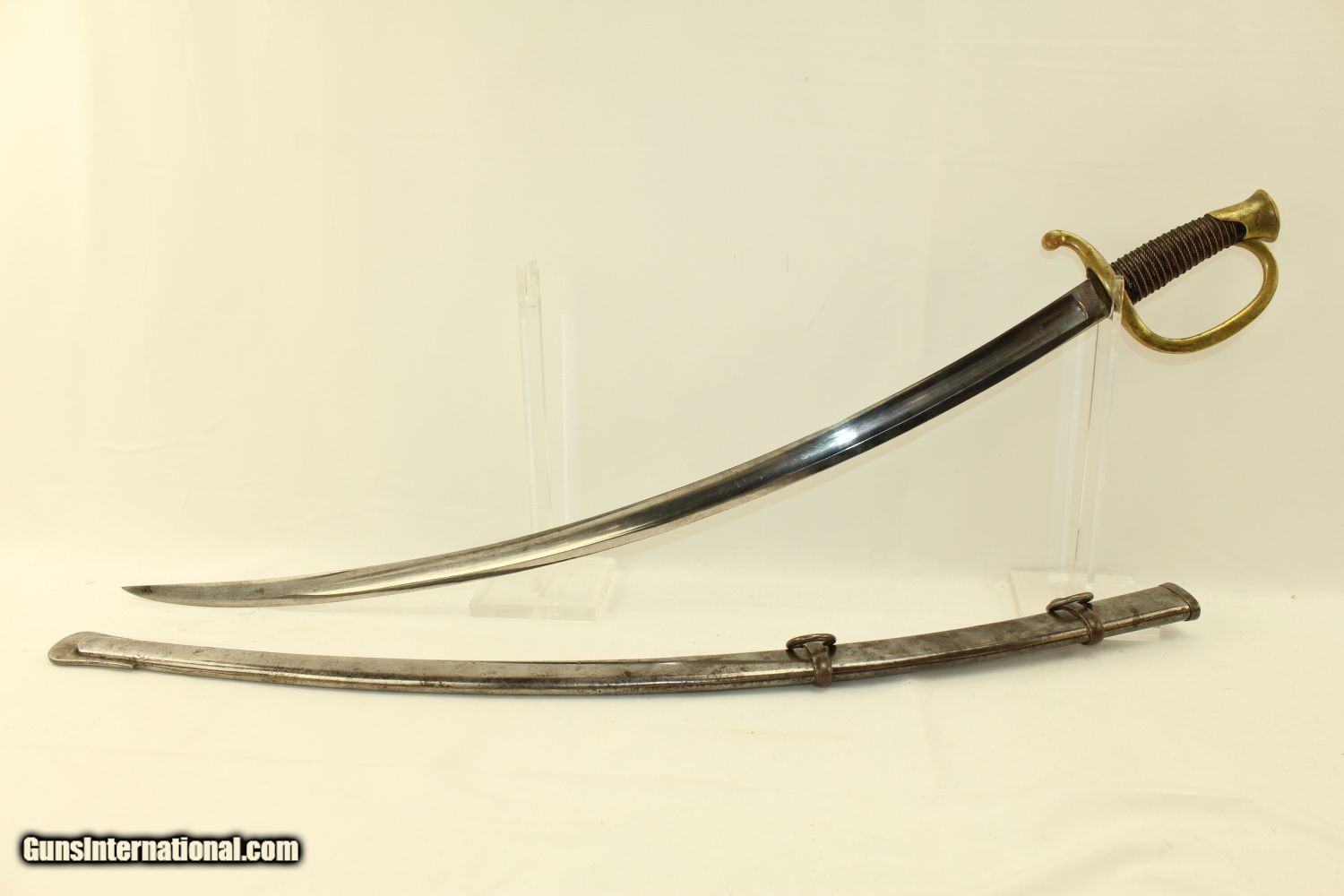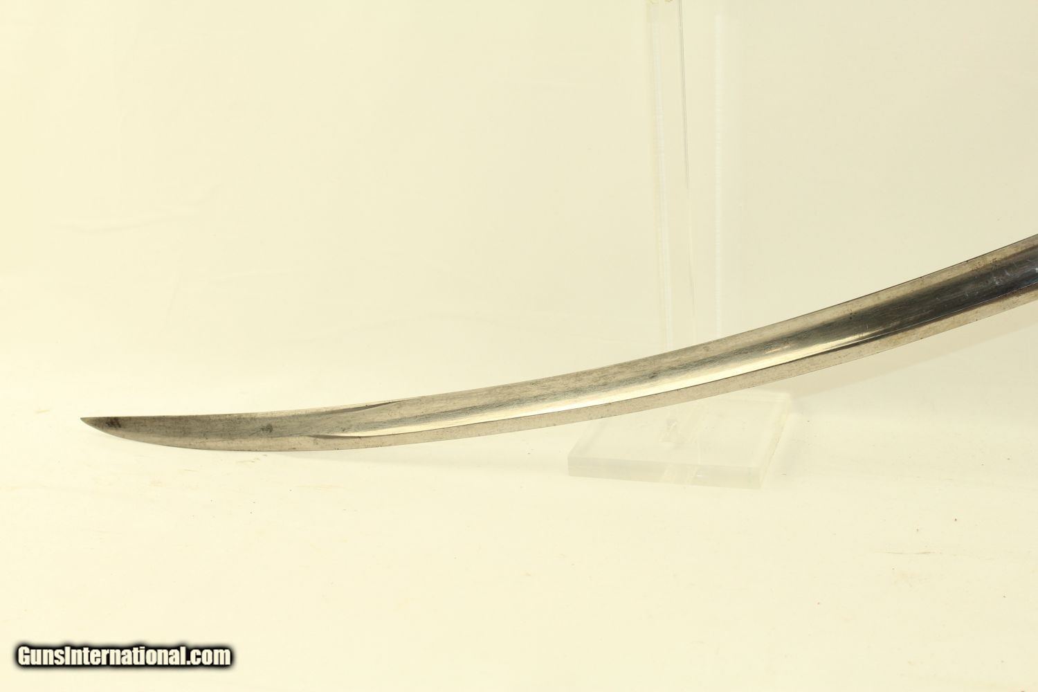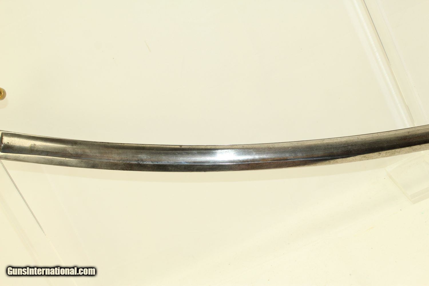 Description: Nice Antique AMES U.S. Model 1840 ARTILLERY Saber Dated “1864” & Inspected by John Hannis Here we present an antique U.S. Model of 1840 Mounted Artillery Saber, made circa 1864. The Model 1840 features a beautifully curved blade with a single brass knucklebow instead of a basket hilt. The grip is wrapped in leather and braided wire. Ames address is on the left side of the ricasso and on the right is, “U.S./J.H./1864”. The inspector’s initials belong to Sub-Ordnance Inspector John Hannis. The overall length is 37-5/8 inches with the blade measuring 32-1/4 inches. The nickel finished scabbard is marked “O.D.H.” on the drag. This saber would have been used in the American Civil War by Union Artillery Troops. Overall condition is Fine. The twisted wire and leather handle are secure. The markings are clear. A great piece to complement any collectors display case. Here is a great Civil War Mounted Artillery Saber! Own the original! This is a legitimate antique and not a reproduction. Overall condition as seen in photos. Very Fast. Very Safe. FREE SHIPPING WORLDWIDE. Delivered directly to your door by express mail! Guaranteed AUTHENTIC & Includes CERTIFICATE OF AUTHENTICITY. ancestryguns $1250 #191077 SOLD Antique: Yes |