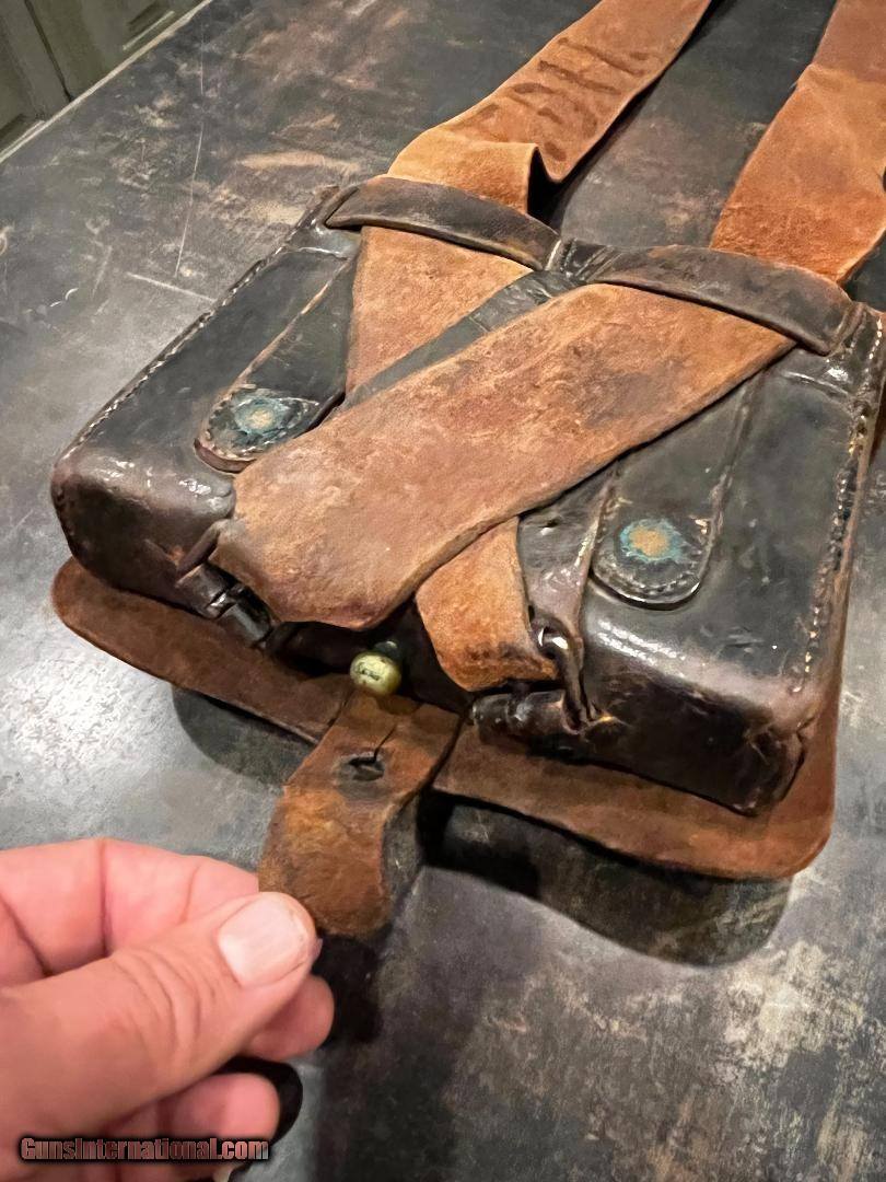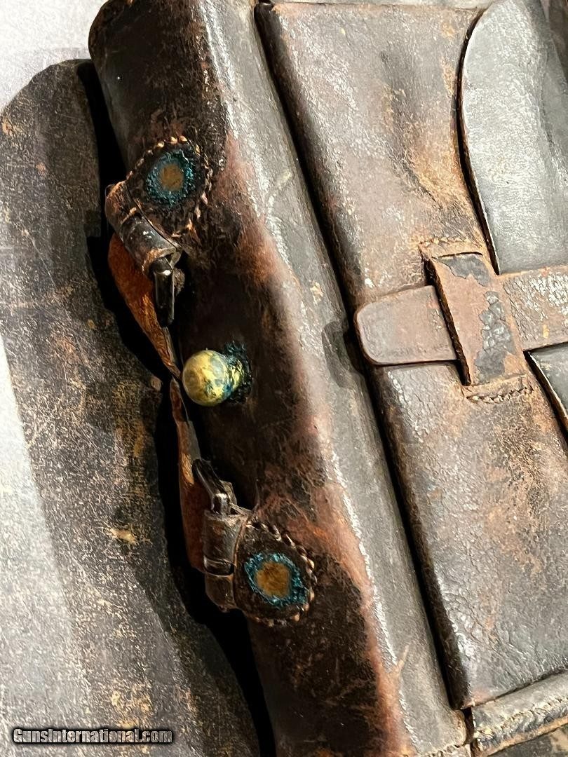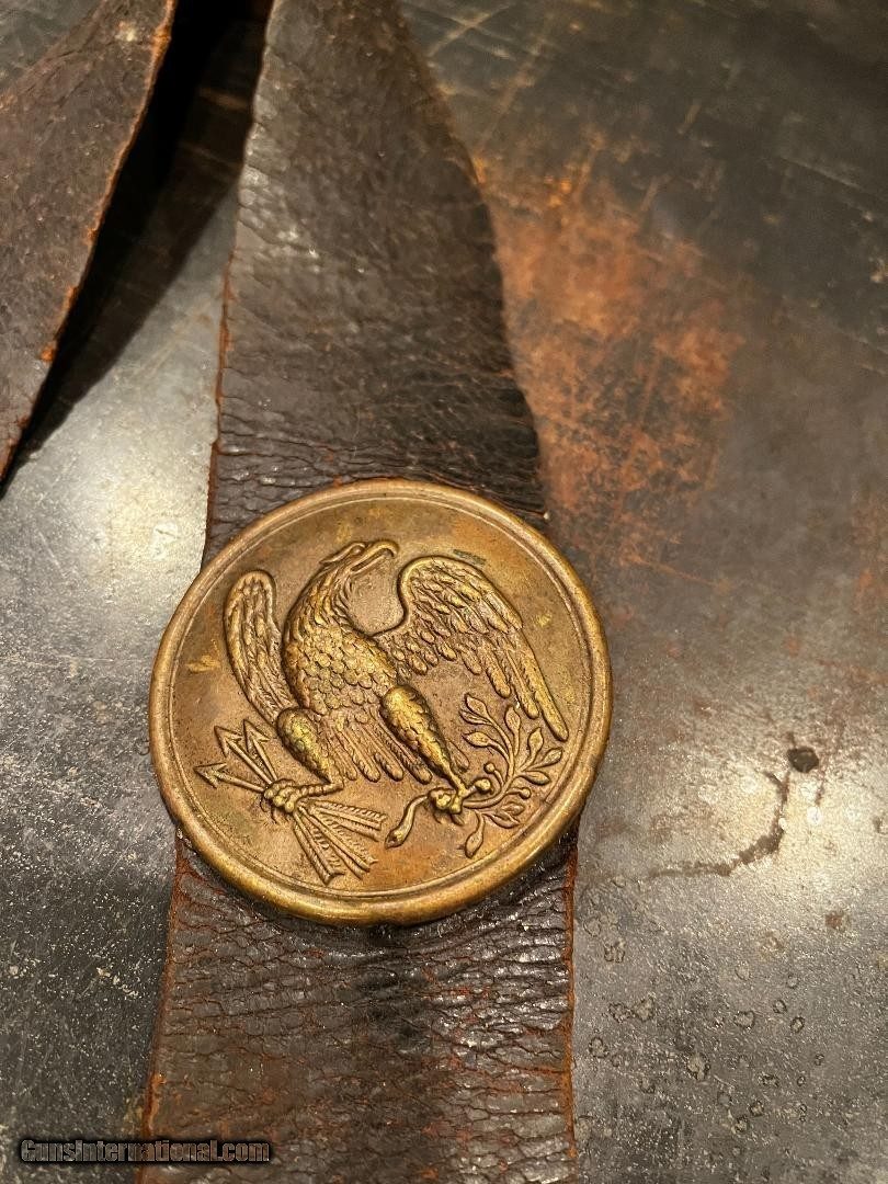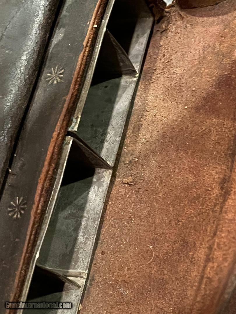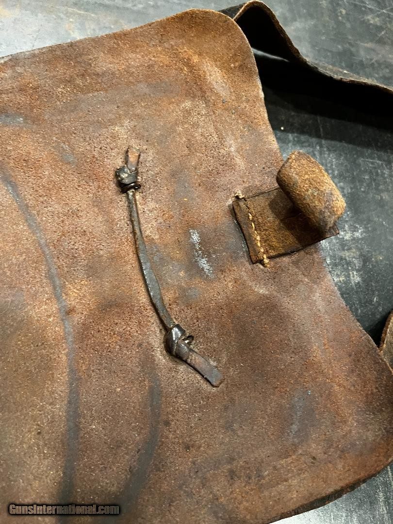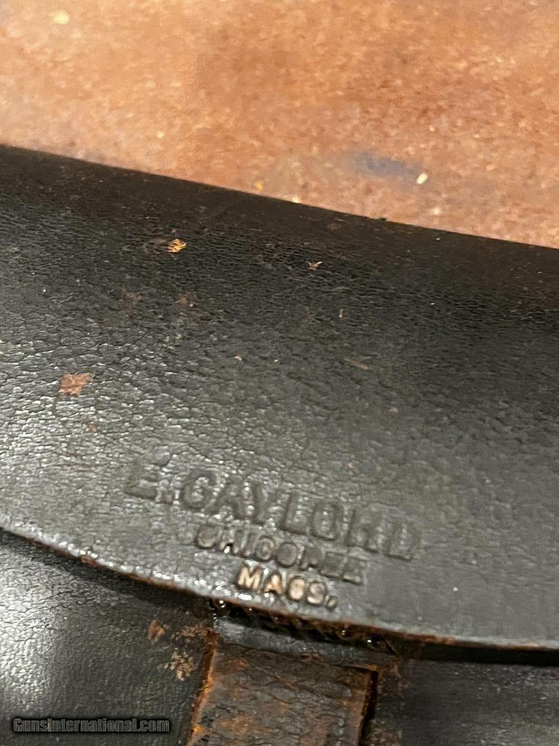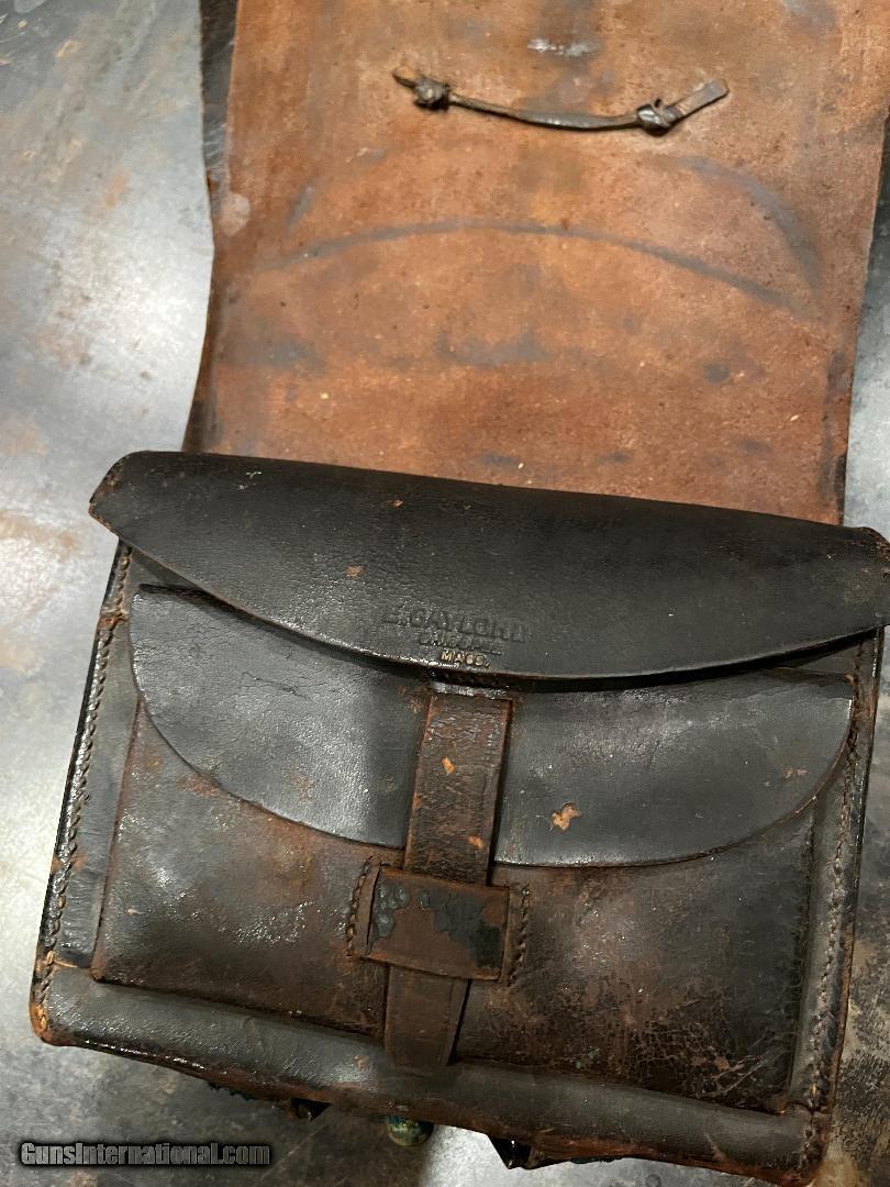 Description: Nice Condition Original Civil War Union US Infantry Soldiers 58. Cal Cartridge Box W/Original Sling with Eagle Plate . Complete with all original tins ..Nice+++ Mfg Marked E. Gaylord , Mass SOLD |