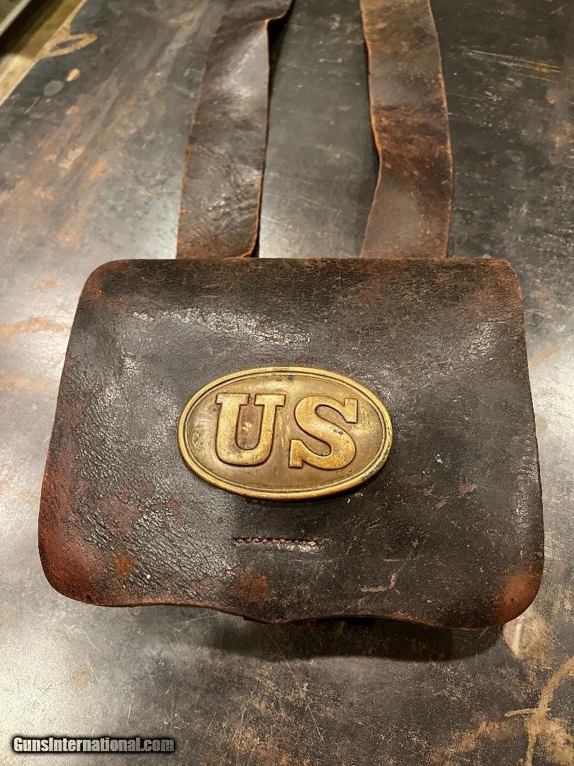 Nice Condition Original Civil War Union US Infantry Soldiers 58. Cal Cartridge Box W/Original Sling with Eagle Plate . Complete with all original tins