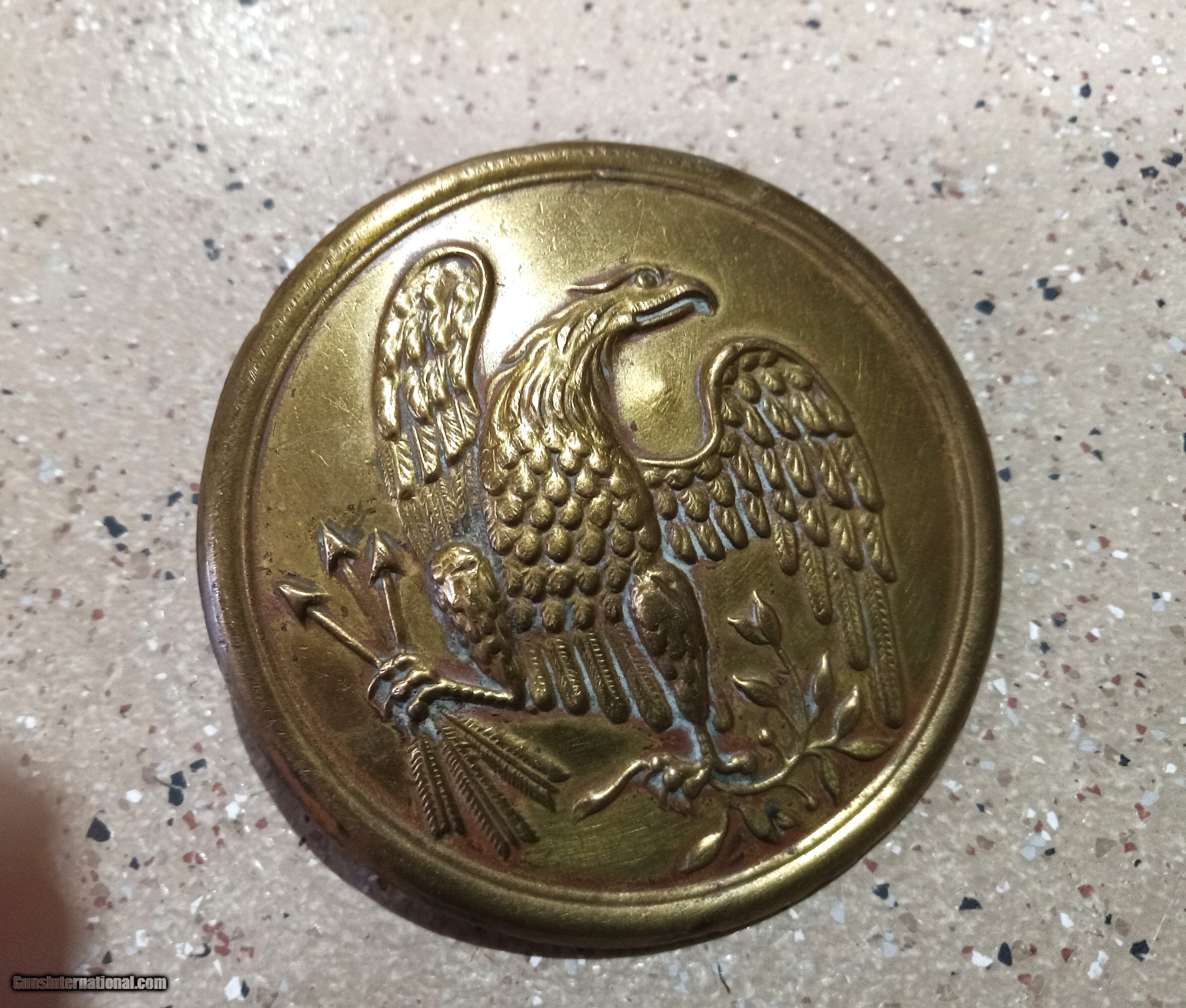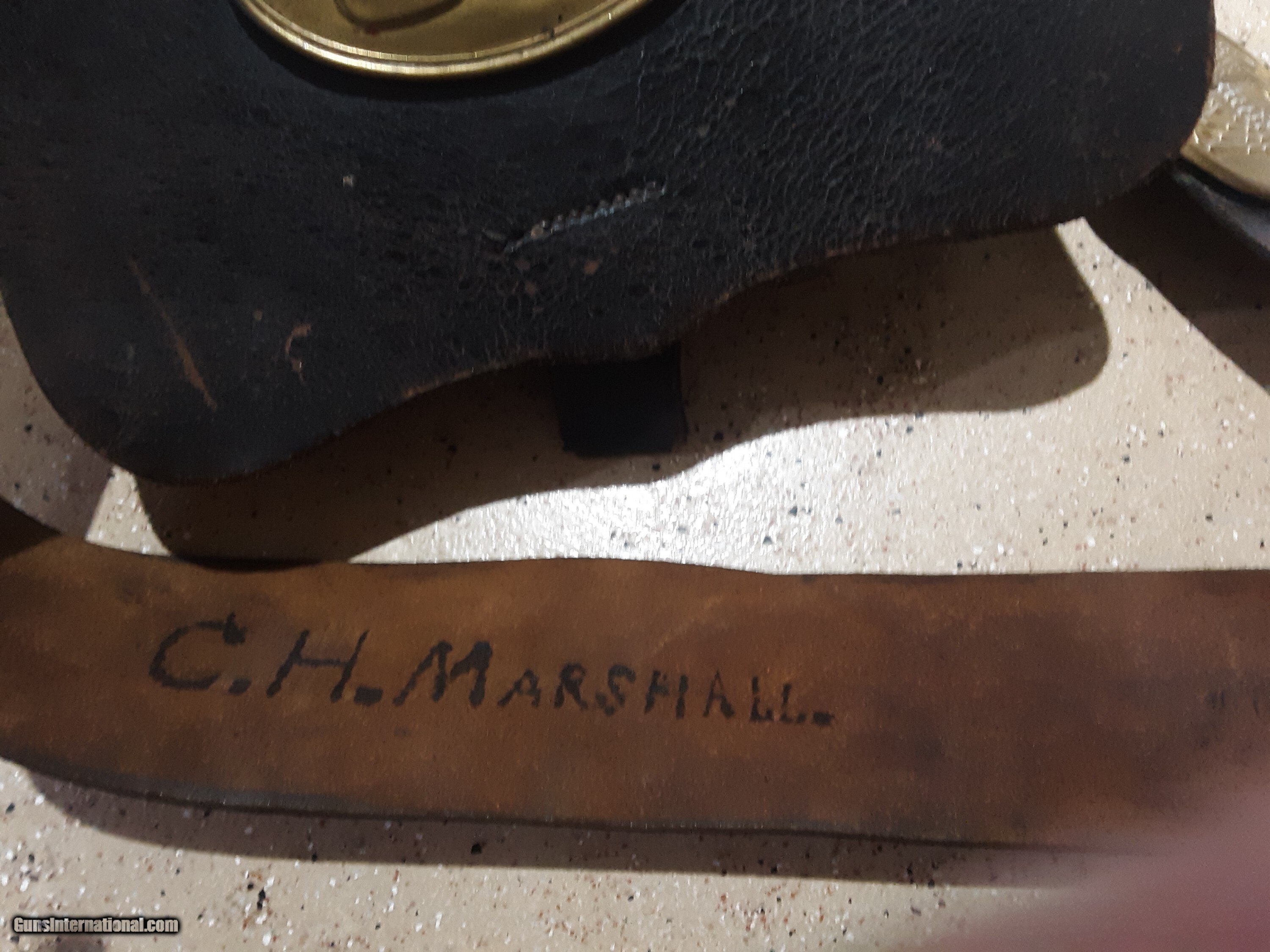 Description: Very good condition grouping. Cartridge box with tins is early war production. Sling is maker markrd A.W. Decrow, Bancor Maine and has name marked inside C,H. Marshall and may well be Charles H Marshall, Co c 203 Pa. Vol. who was wounded Jan. 1865 at Fort Fisher, N.C. Both plates appear to be original but faces cleaned. Price: $825.00 Contact Seller |