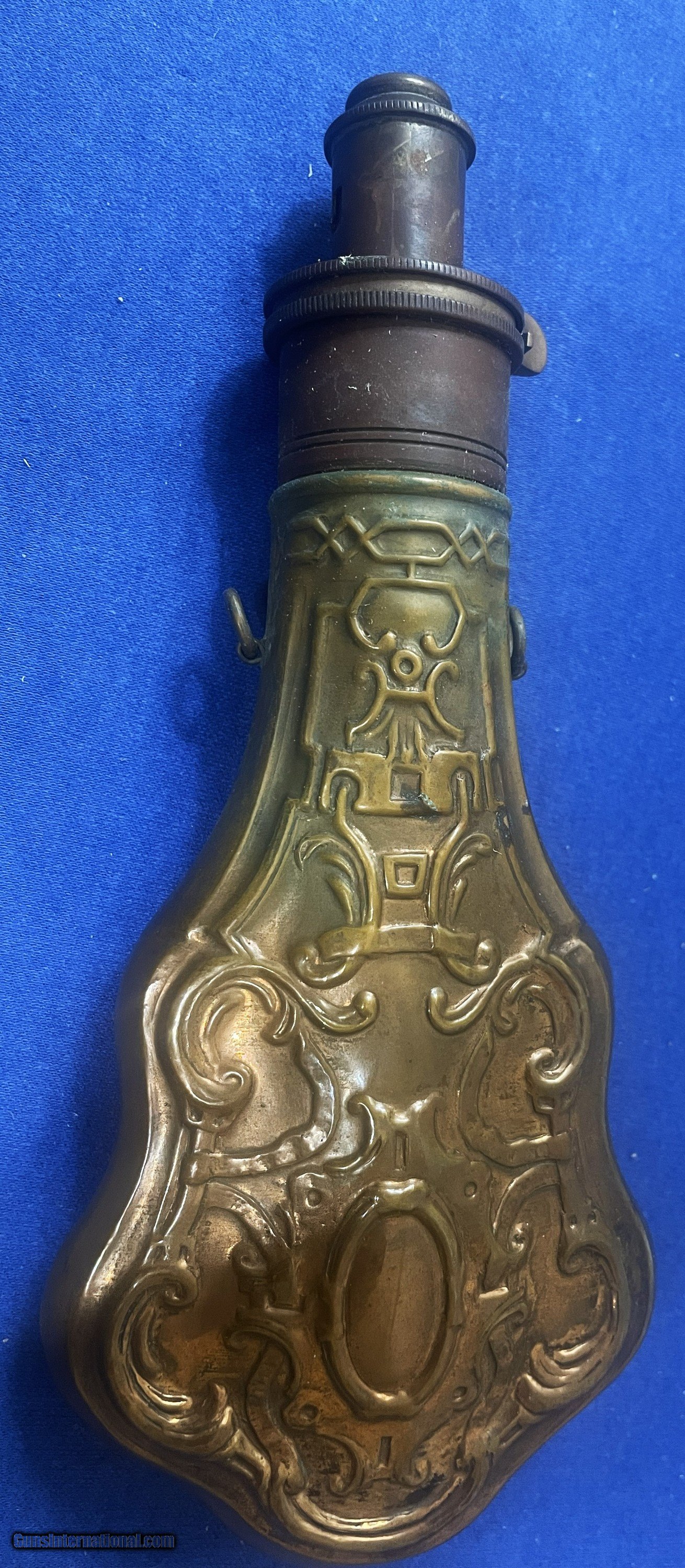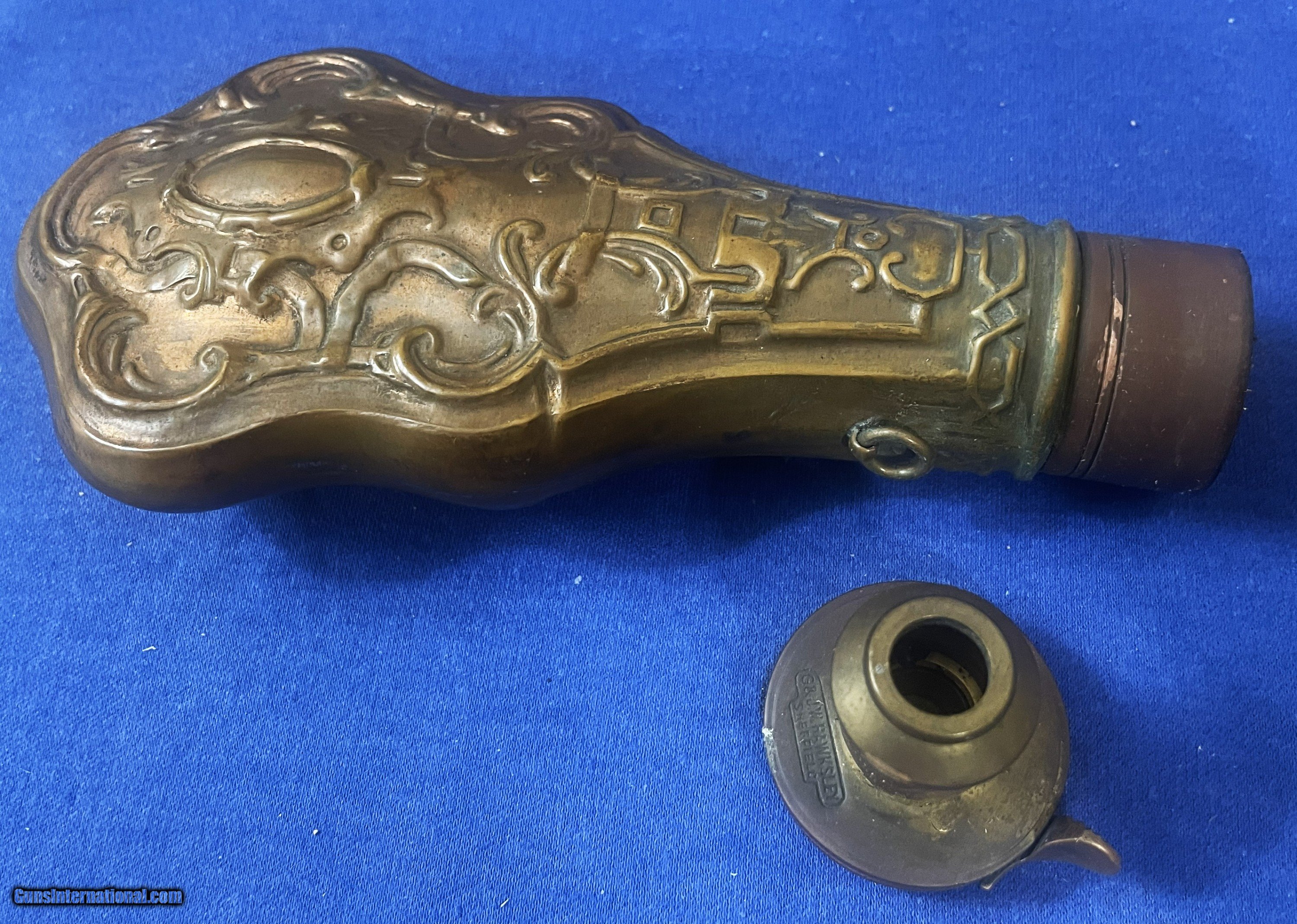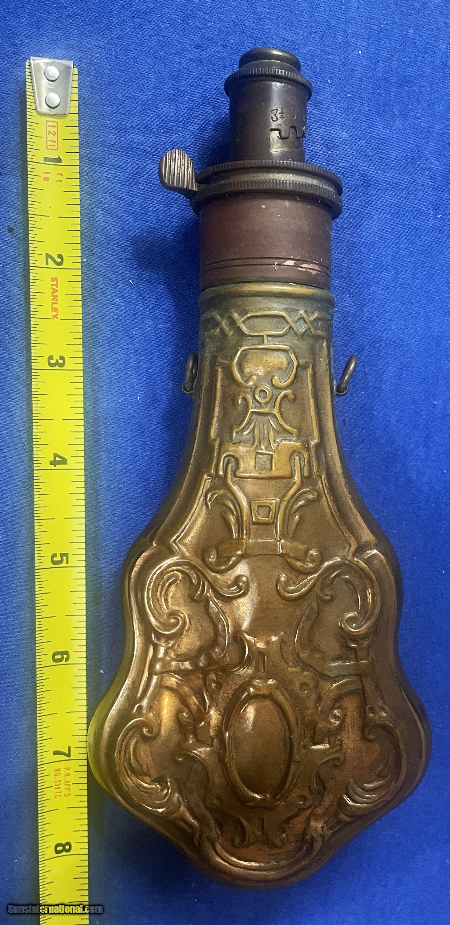 Original G & JW HAWKSLEY SHEFFIELD POWDER FLASK GOTHIC DESIGN 8 1/2