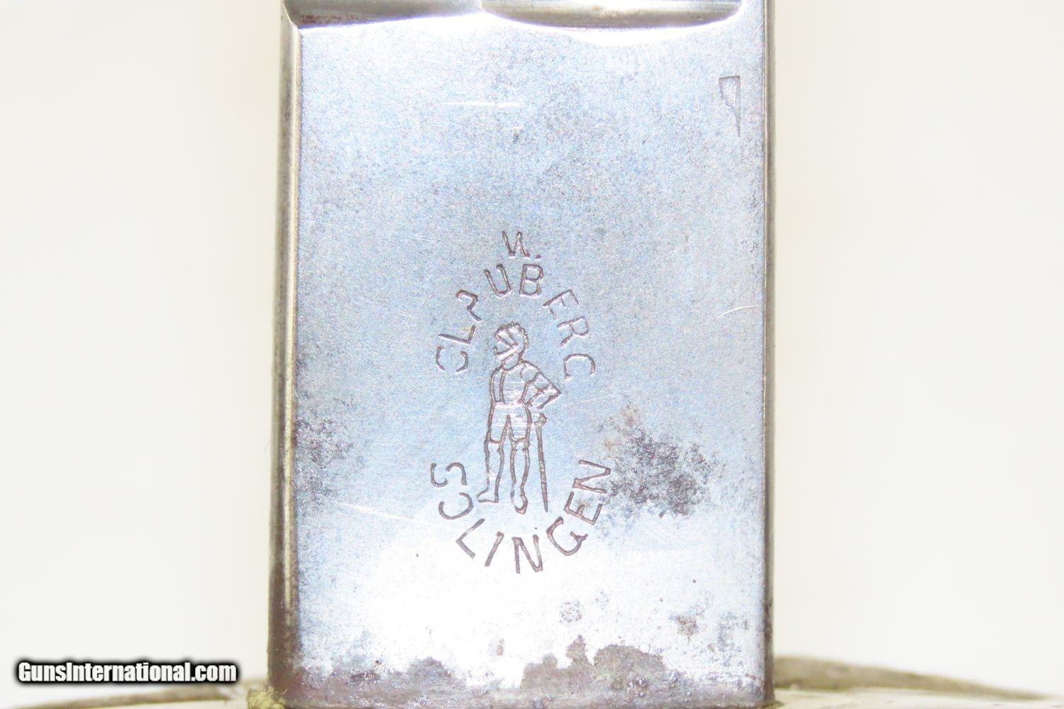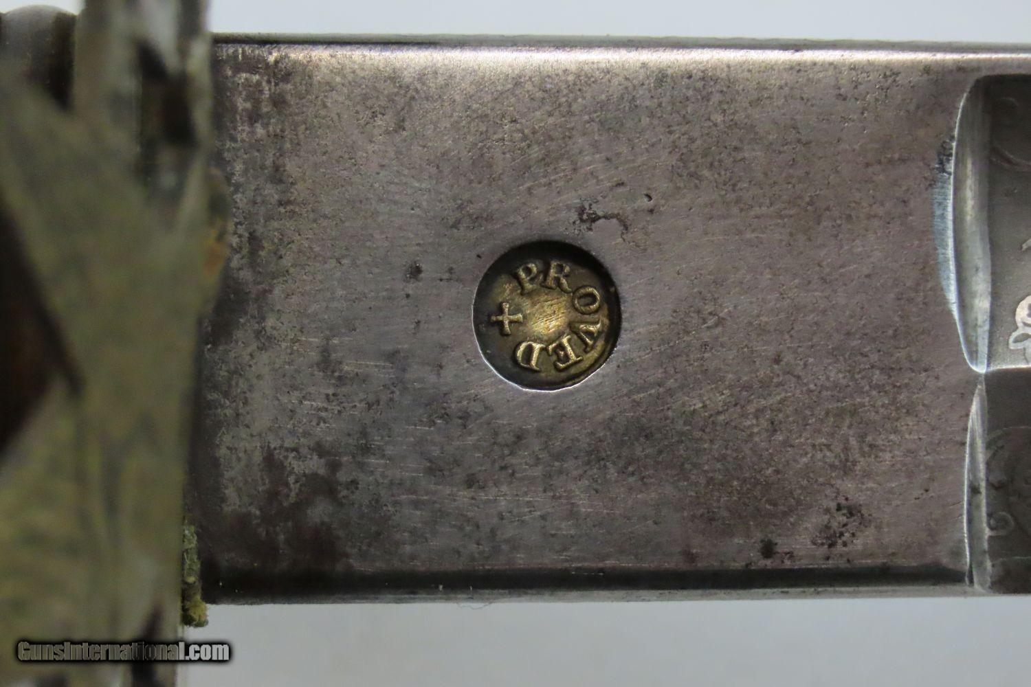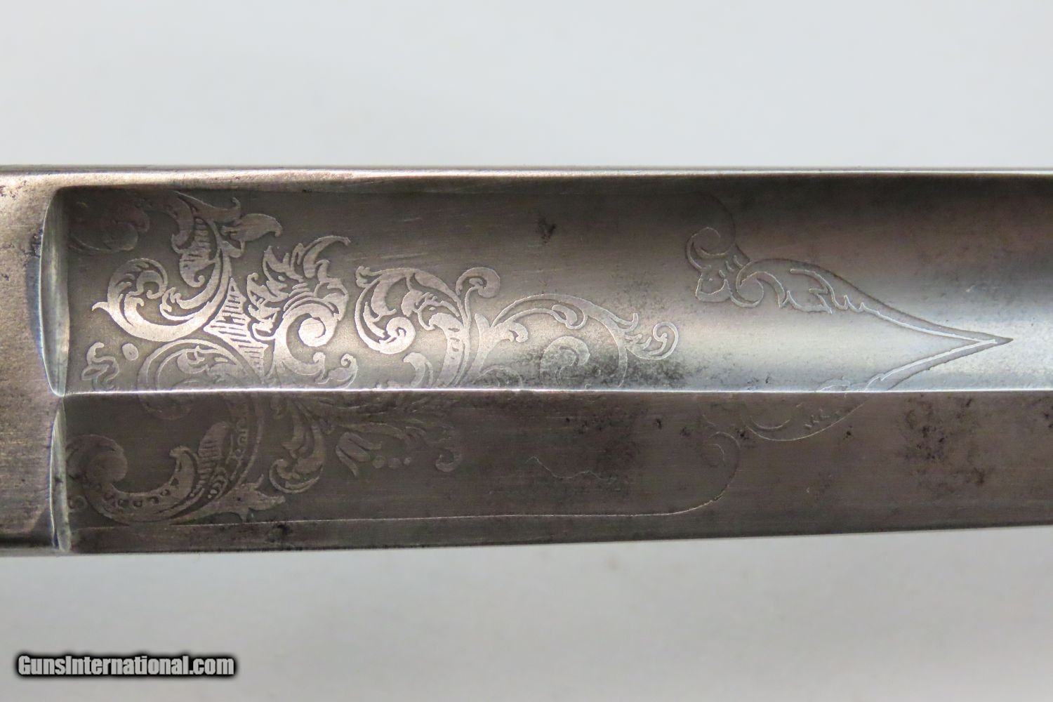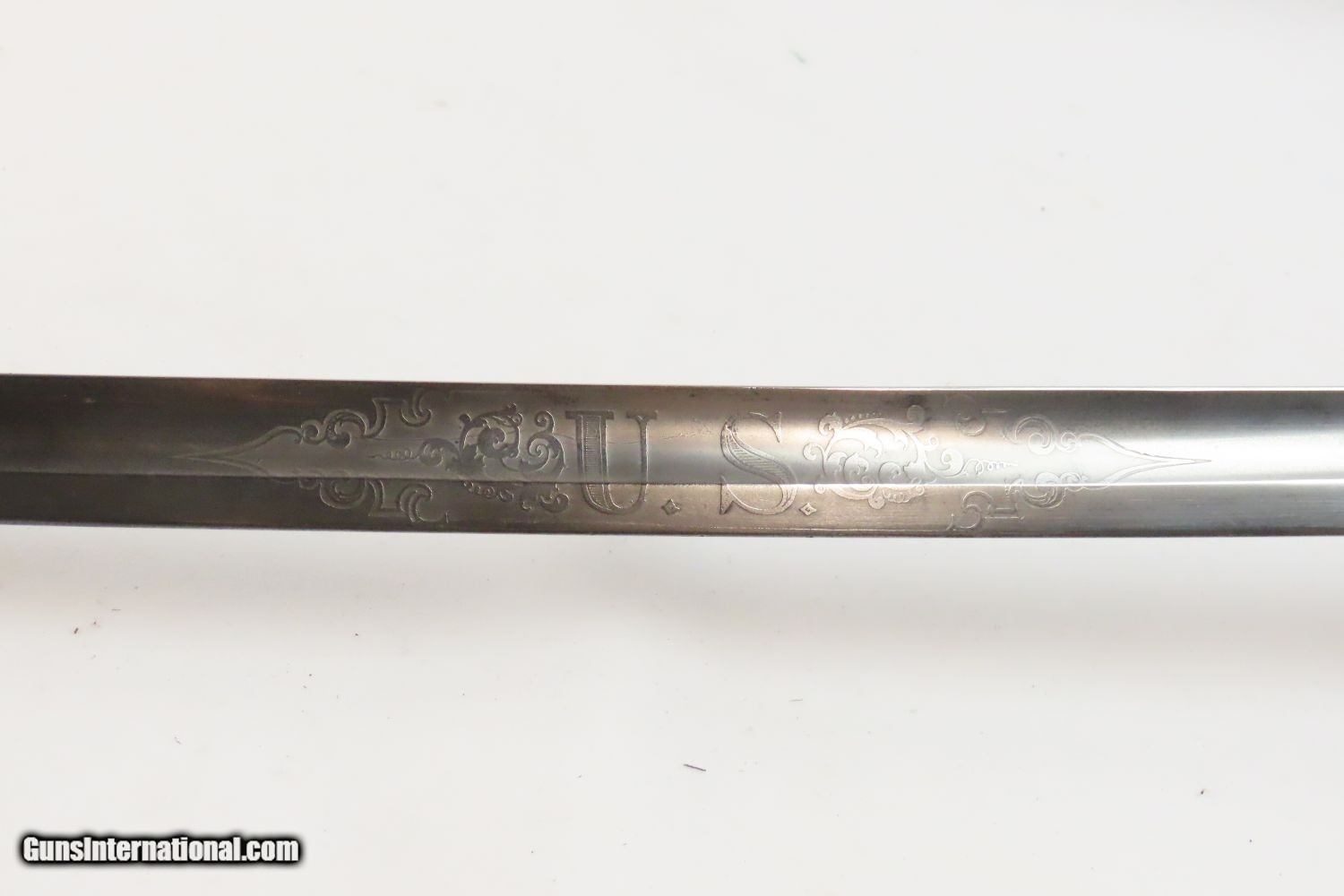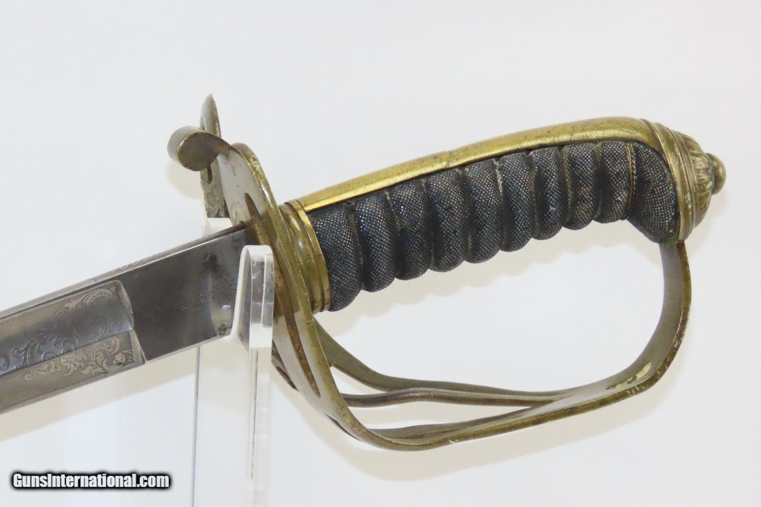 Description: PATRIOTIC US CIVIL WAR Saber by CLAUBERG of SOLINGEN w FEDERAL EAGLES c1861 Etched Private Purchase Officer’s Sword from Prussia Here we present an antique Patriotic Officer’s Saber by Clauberg, made circa 1861 in Solingen, Prussia. This blade is deeply etched with patriotic American symbolism on both sides. One panel is marked “U.S” while the other features a large federal eagle with spread wings and “E PLURIBUS UNUM” in a banner in its clutches. The hand guard likewise has this motif case into it for a particularly handsome appearance. This Latin motto is featured on the Great Seal of the United States and translates to “out of many, one”. This phrase was and remains important to this country which is united though made of many different states. It held a special significance during the American Civil War as this was a conflict centered around member states’ ability to leave the union. The overall length is 37-1/2 inches with the blade measuring 31 inches. The overall condition is very good. Bright. The hilt is solid, the hand guard has a small amount of movement. The handle’s rayskin grip is firm. The scabbard is in very good condition. A fabulous piece of history in fantastic condition! Own the original! This is a legitimate antique and not a reproduction. Overall condition as seen in photos. Very Fast. Very Safe. FREE SHIPPING WORLDWIDE. Delivered directly to your door by express mail! Guaranteed AUTHENTIC & Includes CERTIFICATE OF AUTHENTICITY. ancestryguns $1345 #20778 SOLD Antique: Yes |