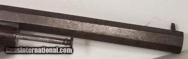 Description: SOLD!!! RARE Lafacheaux Pin fire 38 with octagon bbl.; Lafacheaux Model 1853; serial no. 27987; Civil War Revolver; RARE 38 cal. With 6 ¼” octagon bbl.; good amount of original blue present; ORIGINAL grips; EXCELLENT action and bore; identical to one shown on page 122 of FIREARMS FROM EUROPE (SN on one in text is 34842); 100% correct and original; antique, no FFL/C&R required for shipping;All items shipped fully insured Priority Mail- -Hand guns $30 --Long guns $45-- Spurs $30-- Knives, Swords & Sabers $30 (Texas residents please add 6.75% sales tax); return policy: three days inspection from the date the item is received; full refund of shipping both ways ONLY IF THE ITEM IS MISREPRESENTED. Note: International sales only as laws permit. Will ship C&R eligible items to C&R license. Antiques shipped without license to anyone EXCEPT New Jersey and City of New York where a FFL is required. SOLD |