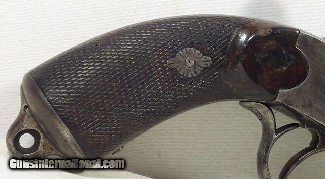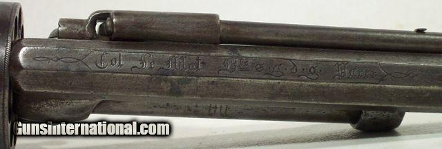 Description: Le Mat Civil War Confederate used revolver; SN1506; French made Confederate imported; two bbls.; 42 cal none-shot cylinder and 20 ga. shotgun bbl.; this example has all the proper markings and is 100% correct and original; it is identical to SN1422 featured on pg. 126 of ‘Firearms from Europe’, by Yantz and Whisher; additionally , this gun is a few numbers off of one that is identical to a Virginia Cavalry Captain; A SCARCE ORIGINAL CONFEDERATE GUN!; antique, no FFL/C&R required for shipping; All items shipped fully insured Priority Mail- -Hand guns $30 --Long guns $45-- Spurs $30-- Knives, Swords & Sabers $30 (Texas residents please add 6.75% sales tax); return policy: three days inspection from the date the item is received; full refund of shipping both ways ONLY IF THE ITEM IS MISREPRESENTED. Note: International sales only as laws permit. Will ship C&R eligible items to C&R license. Antiques shipped without license to anyone EXCEPT New Jersey and City of New York where a FFL is required. SOLD |