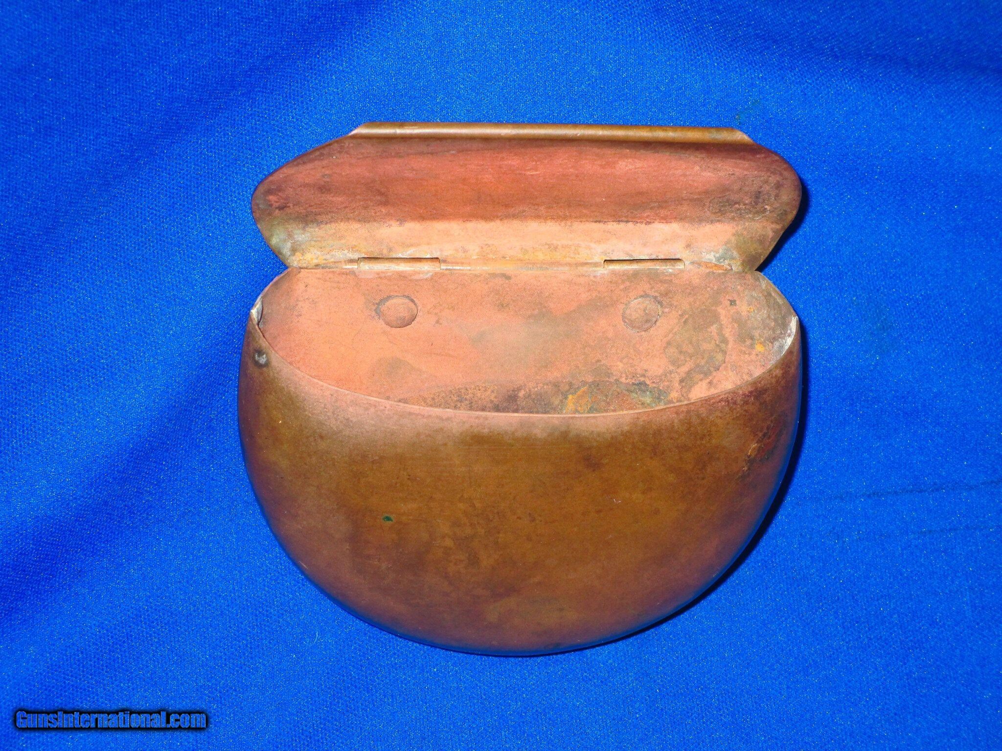 Description: U.S. Civil War 1863 Brass Kittridge & Co. Cartridge Box In Fine Untouched Condition. All original throughout. The box has fine markings on the top of the lid. It is marked "B. KITTREDGE & CO./PATENTED JAN. 27,1863 / REISSUED APL. 14,1863". The brass throughout the box has a wonderful mellow color to it and no damage to it. The scarce brass cartridge box was used during the civil war with the "Henry Rifle" and the "Kittridge Marked Frank Wesson" tip up civil war carbine. This Is A Fine Looking Untouched Example Of A Scarce Civil War Kittredge & Co. Brass Cartridge Box! SOLD |
