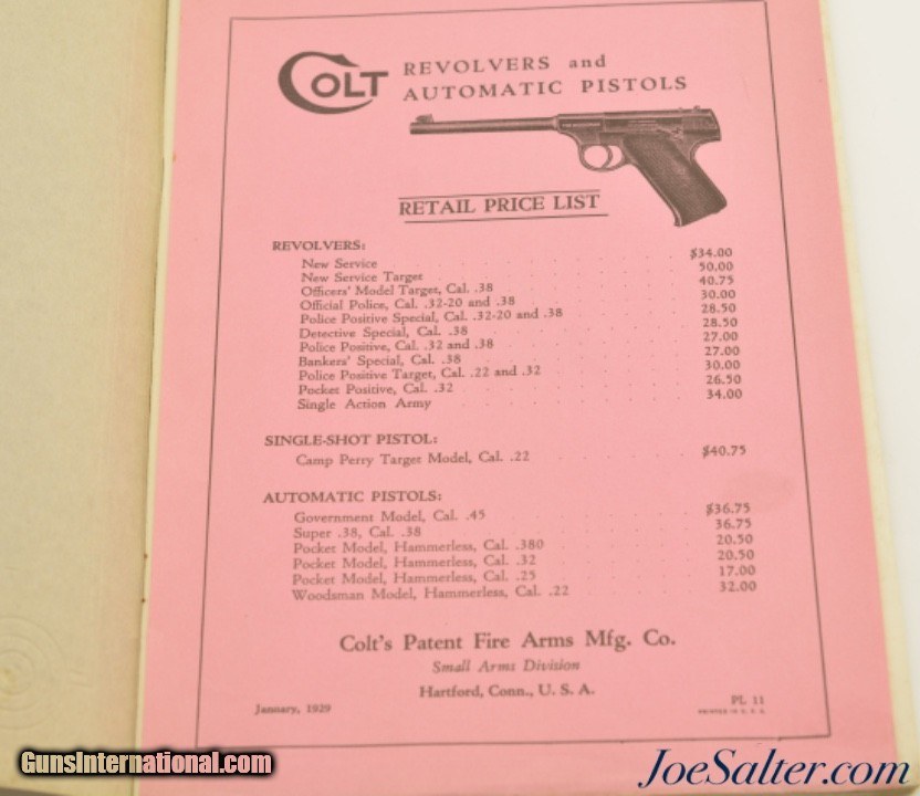 1929 Colt Firearms Arm of Law and Order Gun Catalog with Price List