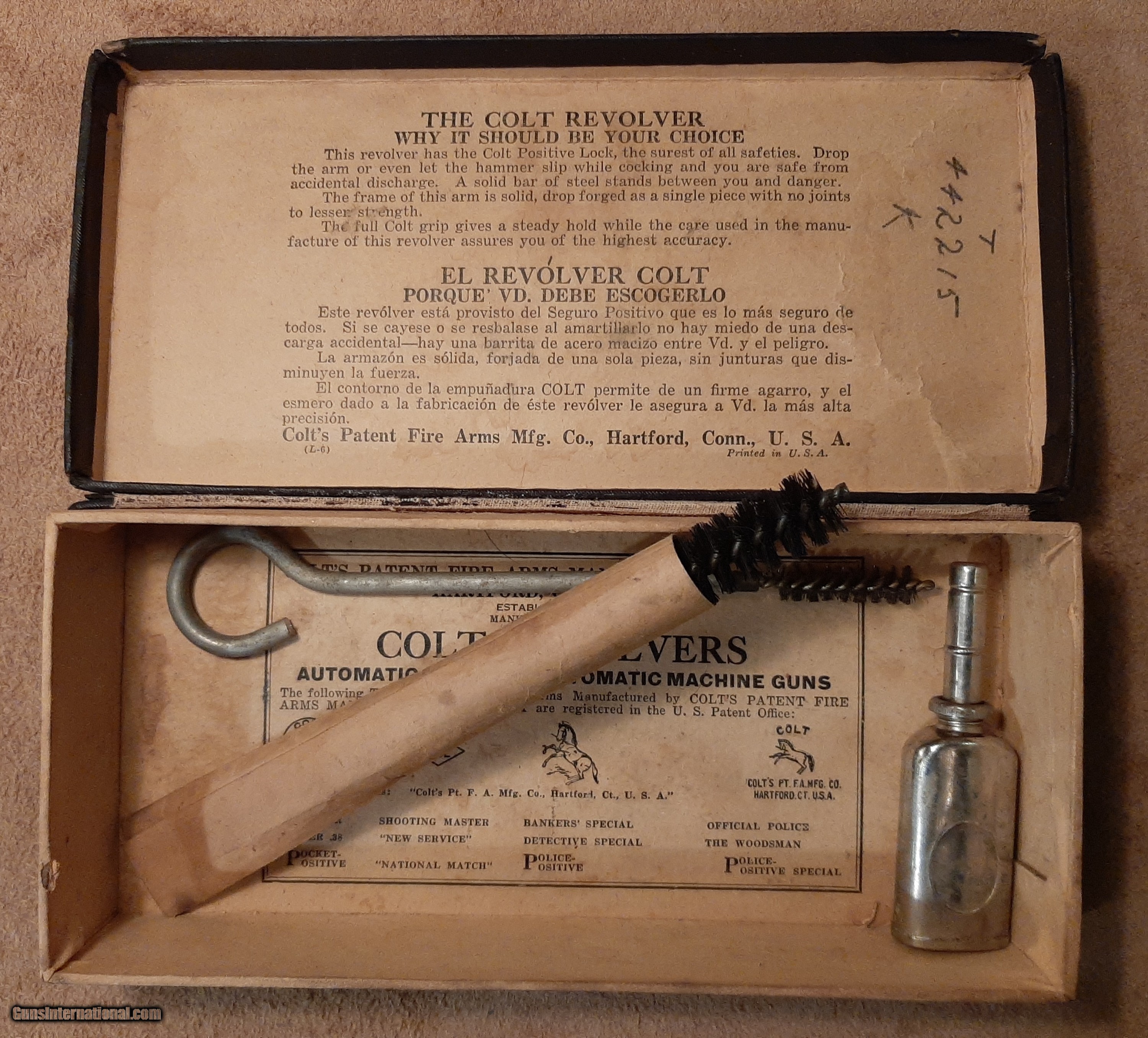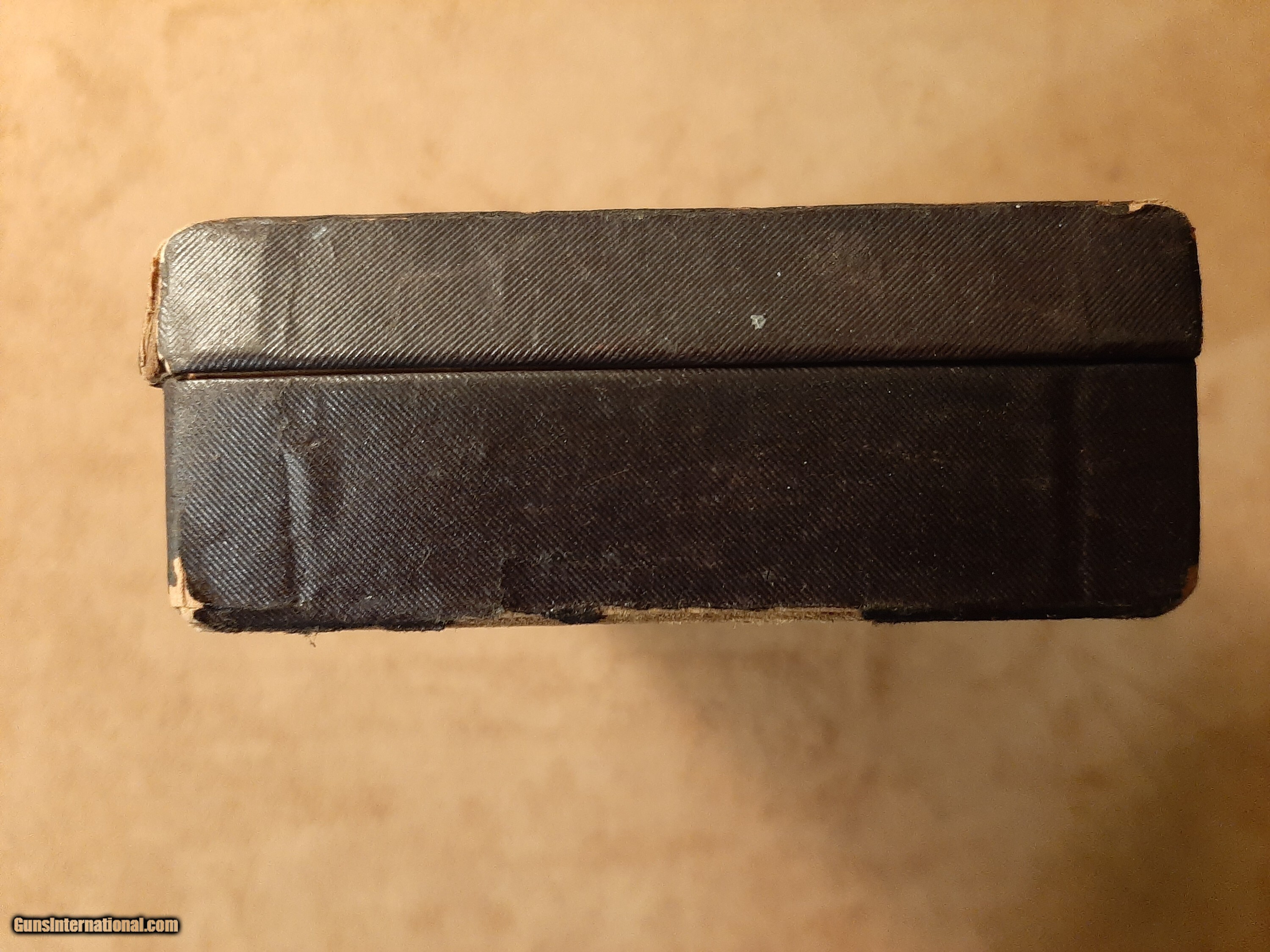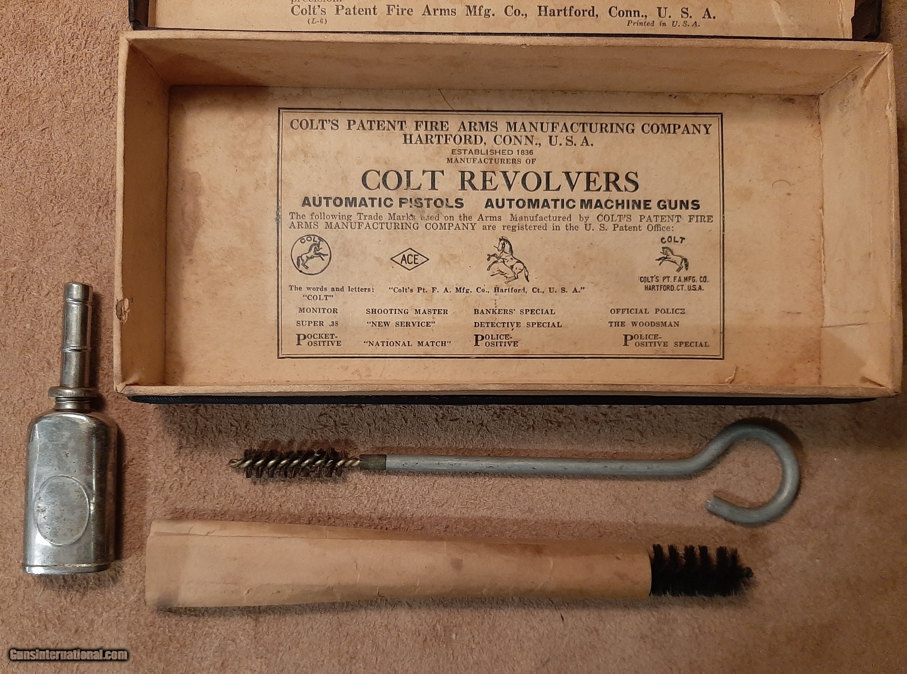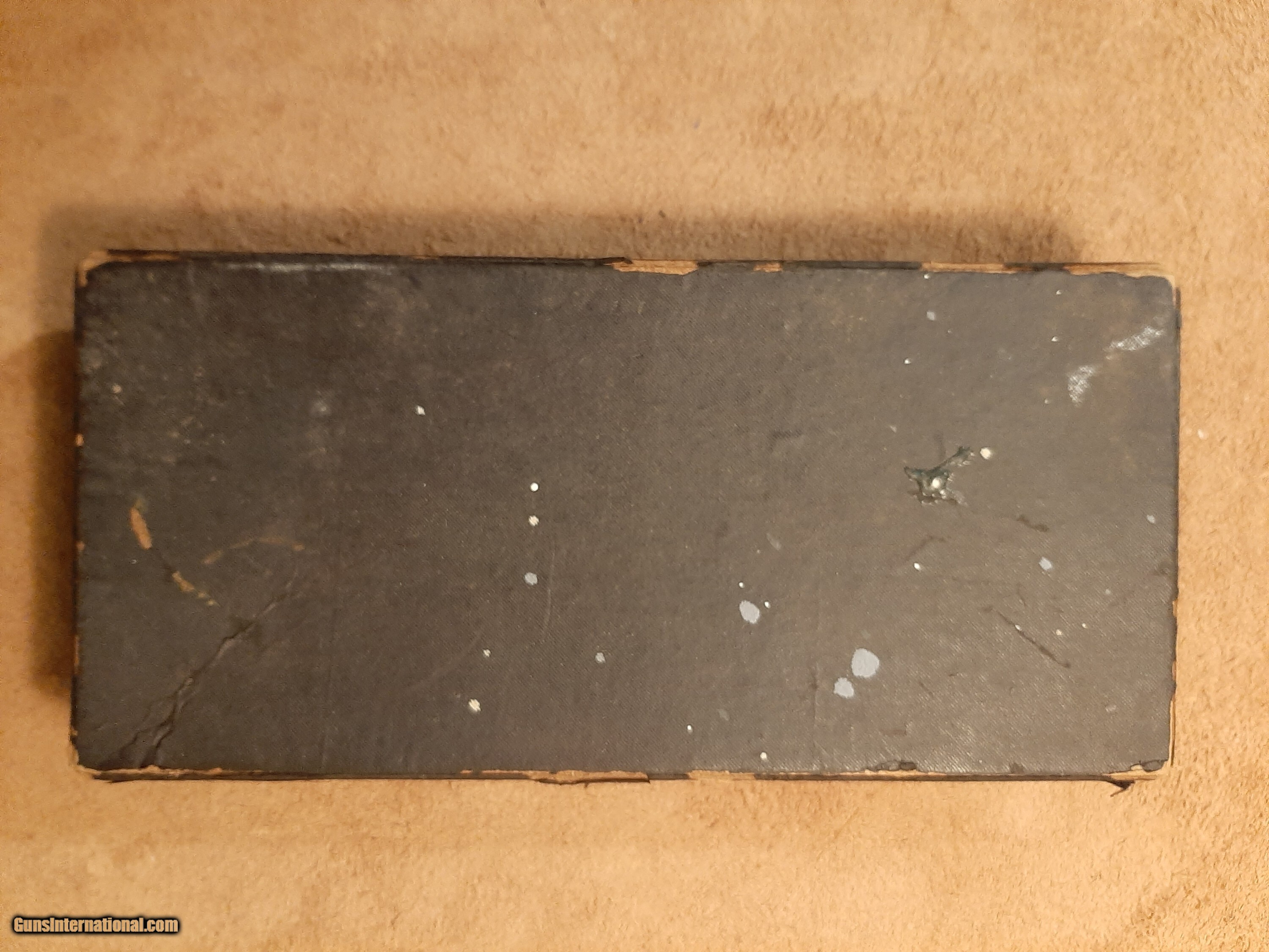Description: Hyper rare original Colt Police Positive box with accessories. See photos for details. This box is in remarkable condition given its age. The contents are two bore brushes, one soft bristle and one brass bristle along with an oiler tin. Overall dimensions are 8 ½” long x 4” wide x 1 5/8” deep. For payment we will accept personal checks, money orders, certified check or cashiers’ check. All major credit cards acceptable. Personal checks require 8 business days to clear the bank, all other forms of payment receive same day as received shipment. Full coverage insurance and shipping is $30.00. If you are in the Middle Tennessee area, please visit us at “The Bunker” in Cookeville TN. We are located at 6 South Washington Avenue on the Court-House Square in Jones Antiques, open Tuesday through Thursday 10:00 AM-5:00 PM, Friday Saturday 10:00 AM-4:00PM. Thanks for looking and if you have any questions give us a call or text 931-303-6739. Price: $425.00 Buy Now Contact Seller |