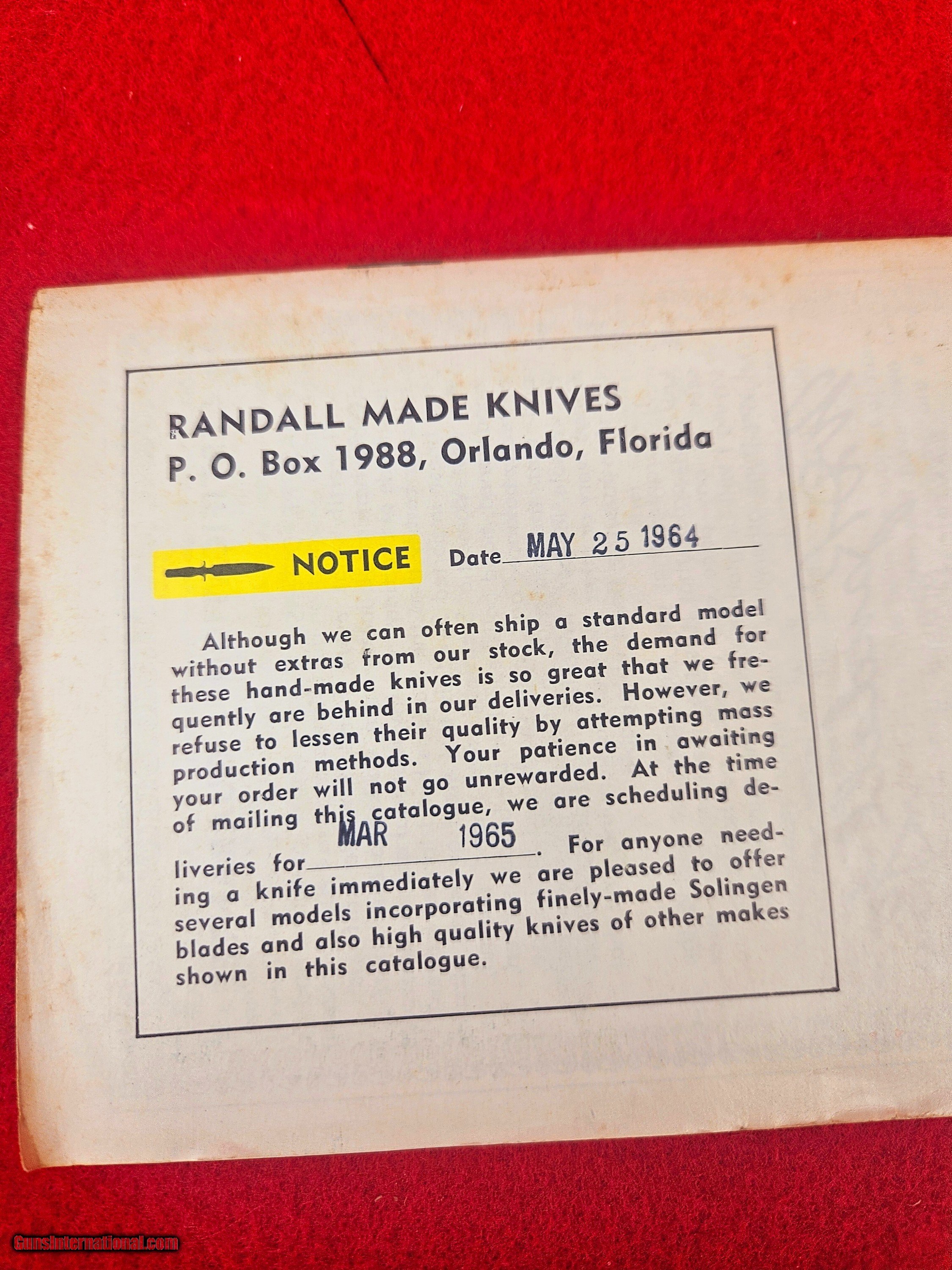 Randall Made Knives 1965 "Time Capsule" 3 Mint Knives With Original Order Catalog - Wow!