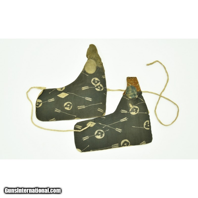 Description: "Pair of Cloth Archers Gloves with Doesikin. Finger holds cloth pattern with target and arrows. Very good condition. Rare item. SOLD |