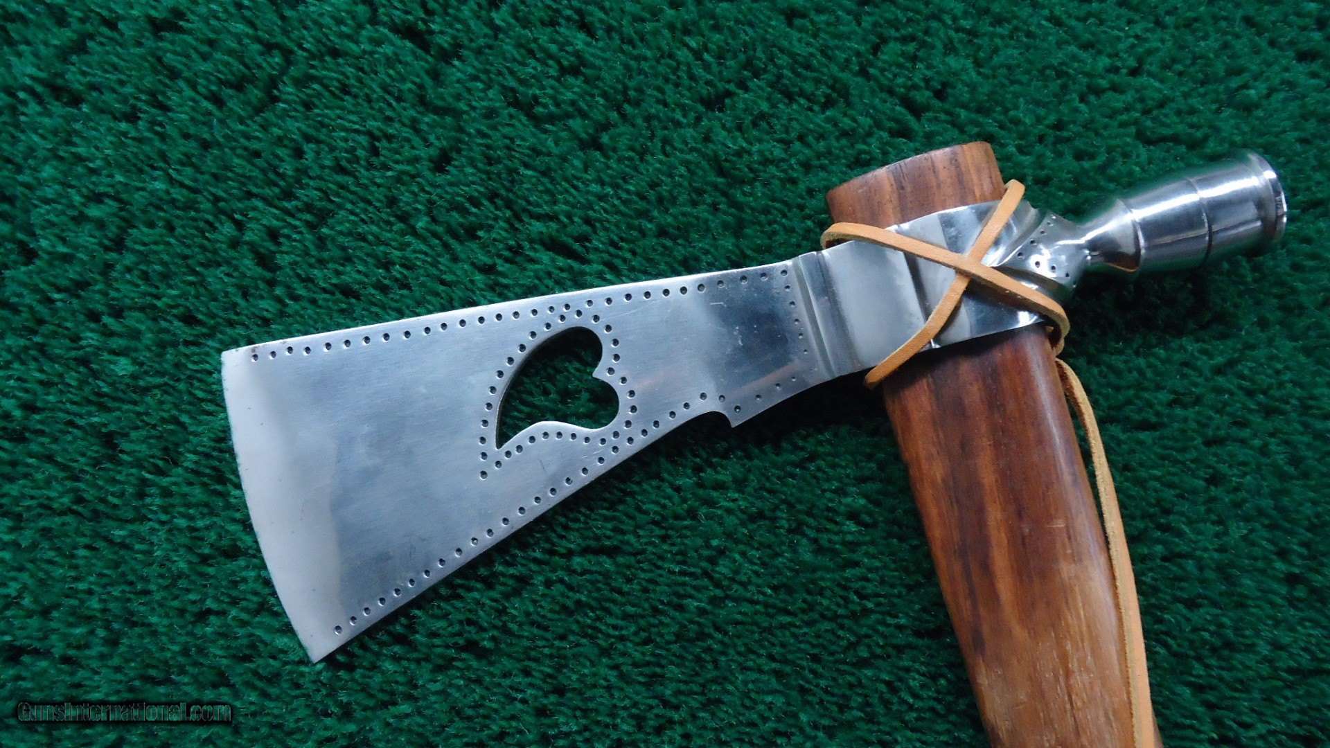 Description: 10-1/4 inch blade with a pipe bowl made out of polished metal. 22-3/4 inch wooden handle with 4 inlays by the mouth piece. Not a bad looking representative display piece. A leather strip is loosely wrapped around the handle. Not a bad looking representative display piece. Leroy Merz Antique Firearms specializes in antique and vintage Winchesters and other fine American firearms. Since 1965 Mr. Merz has taken part in the world of firearms and has been a contributor to many well known reference books. We have hundreds of additional guns in every price range at our home online. Search for Merz Antiques in google. SOLD |