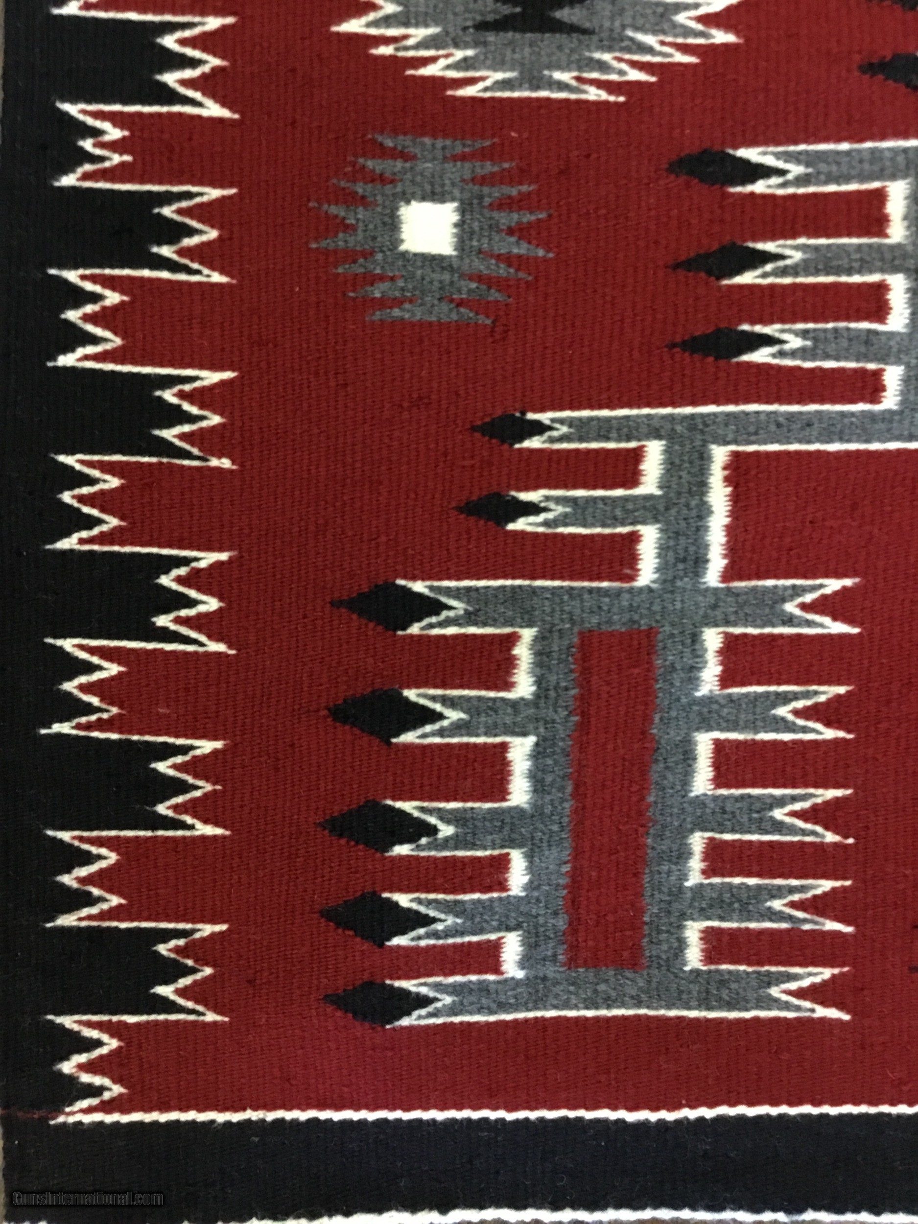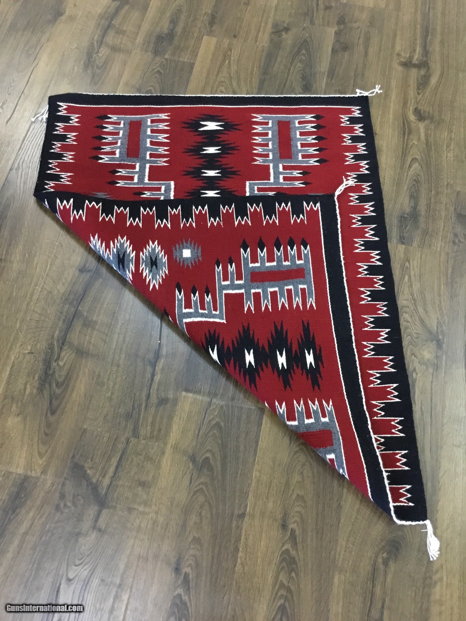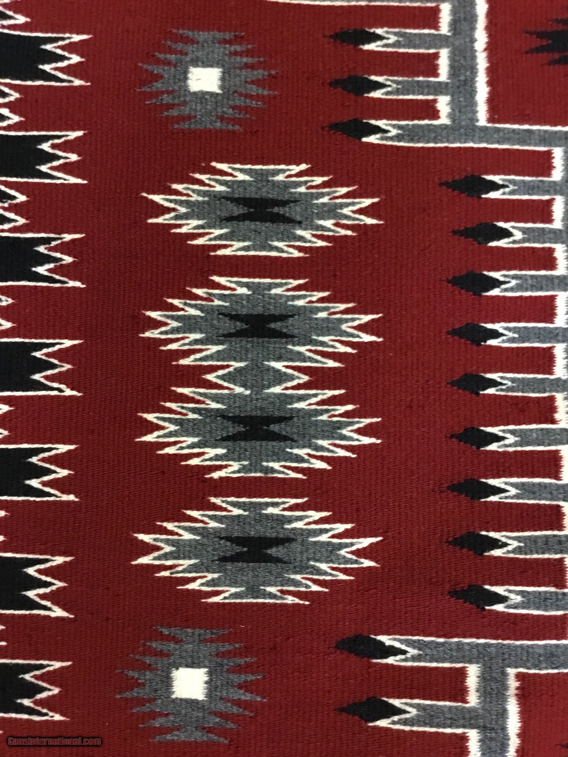 Description: This stunning Navajo Rugs was woven by Cecelia Dee of Montezuma Creek, Utah, (pictured) master weaver. Cecelia has done a Storm Pattern with Traditional Ganado colors. One beautiful rug, very intricate, near perfect. Rug measures about 44” x 35” This one won’t be available long, it is just stunning. free shipping , no credit card fees SOLD