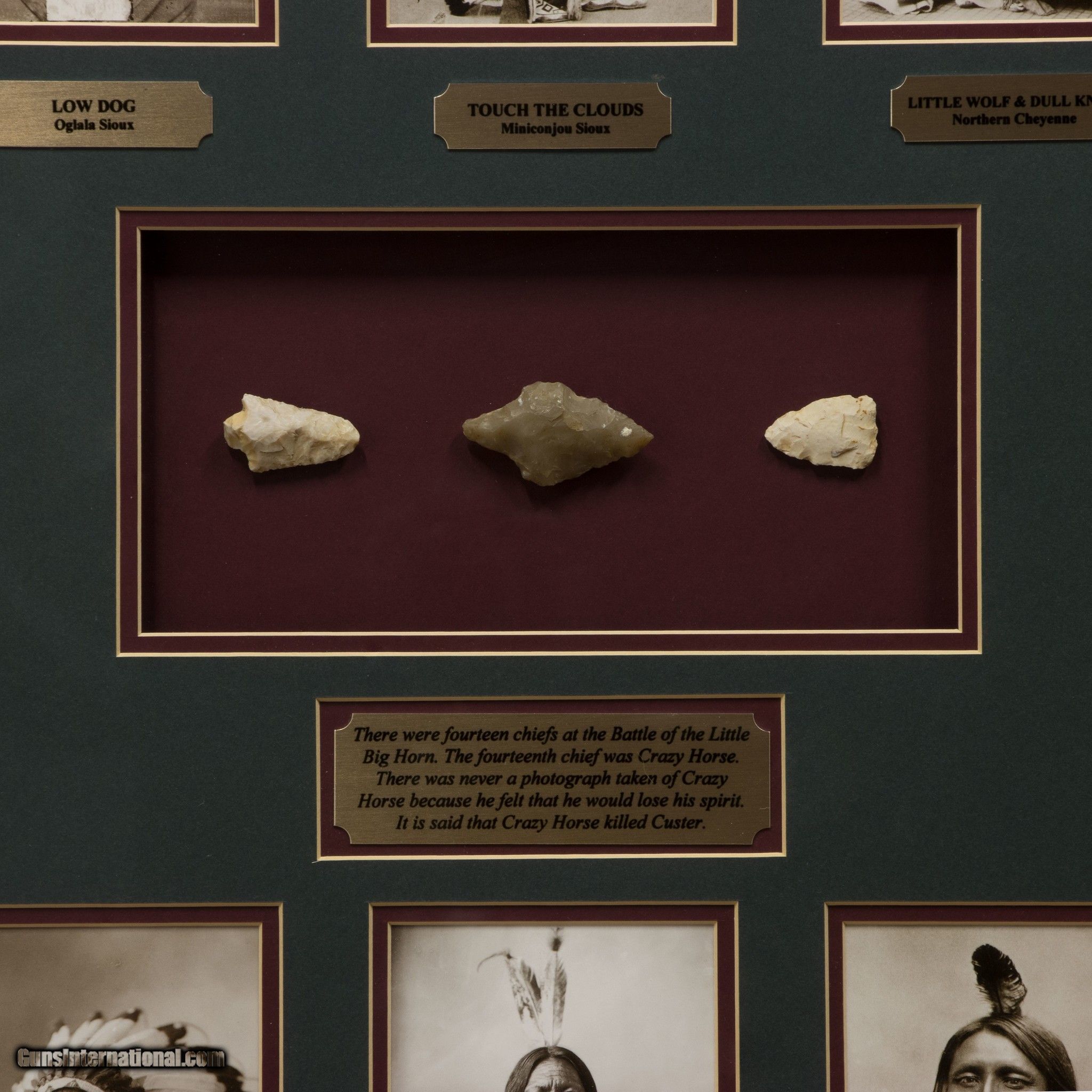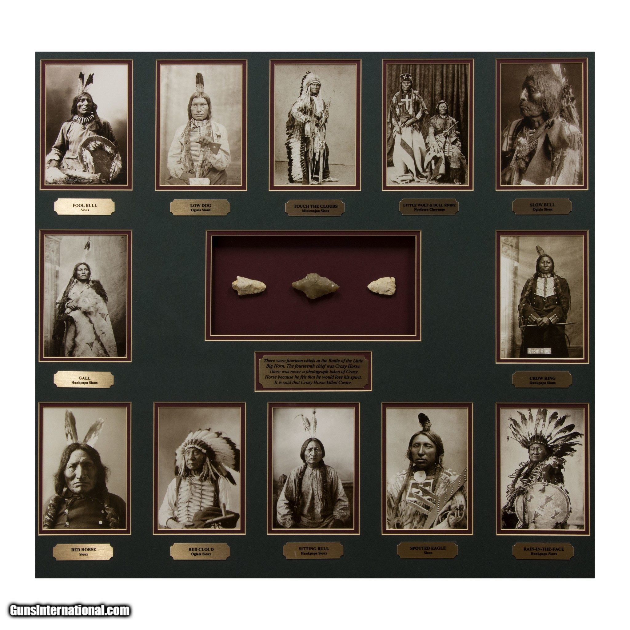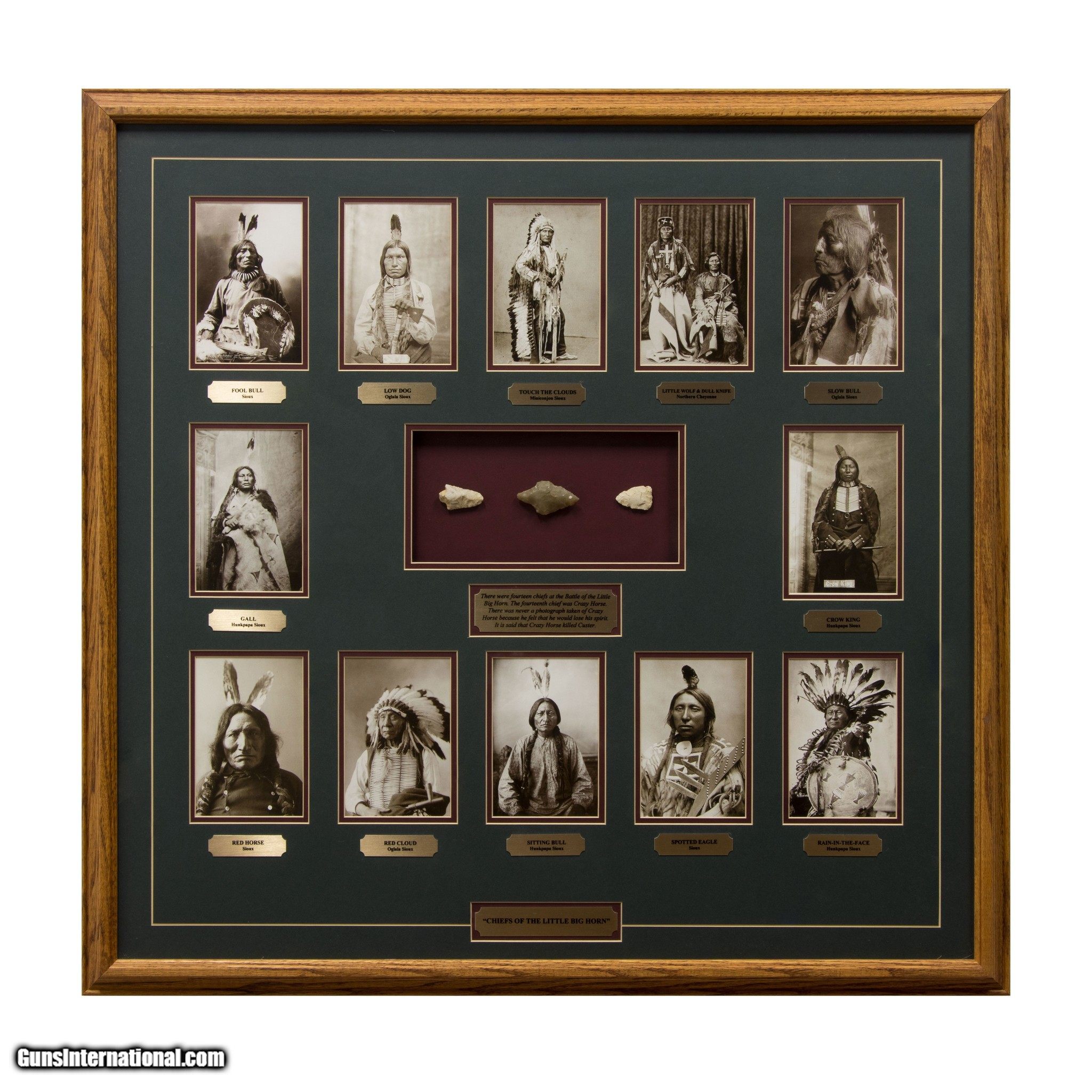Description: There were 14 chiefs at the Battle of the Little Big Horn. The 14th chief was Crazy Horse who was never photographed because he felt he would lose his spirit. It is said that Crazy Horse killed Custer. Photos include Fool Bull Sioux, Low Dog, Oglala Sioux, Touch the Clouds, Miniconjou Sioux, Little Wolf and Doe Knife Northern Cheyenne, Slow Bull Oglala Sioux, Crow King, Hunk Papa Sioux, Rain in the Face - Hunk Papa Sioux, Spotted Eagle Sioux, Sitting Bull Hunk Papa Sioux, Red Cloud Oglala Sioux, Red Horse Sioux, Gaul Hunk Papa Sioux. Frame 32" x 33 SOLD |