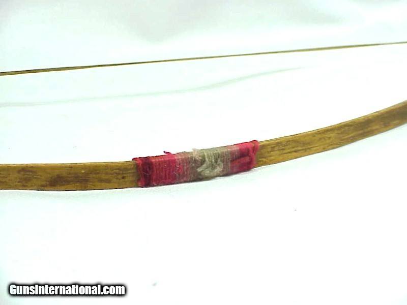 Description: PLAINS INDIAN CHILD'S BOW & ARROWS WITH METAL POINTS. BOW IS 20-1/2" LONG. SINEW BOW STRING, TWO ARROWS - EACH 18-1/2" LONG. FEATHERS & STEEL POINTS HAVE SINEW WRAP. CIRCA 1880'S. SOLD |