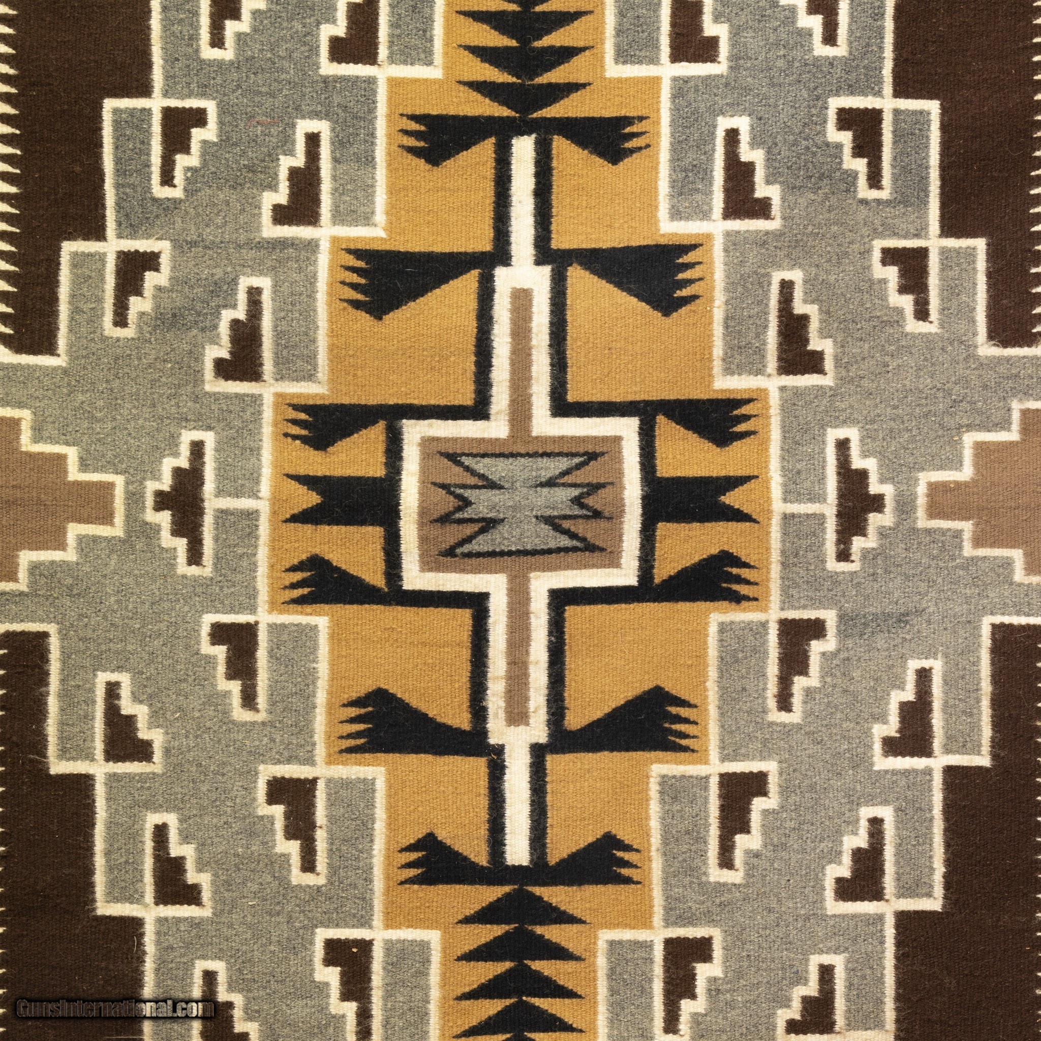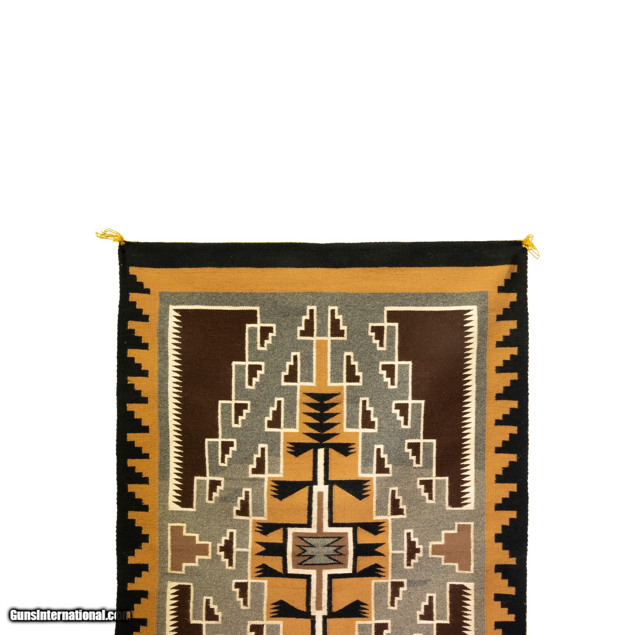 Description: Multi colored Navajo Two Grey Hills weaving. Very fine weave. Weaver unknown. 38" x 50". After 1950 SOLD |