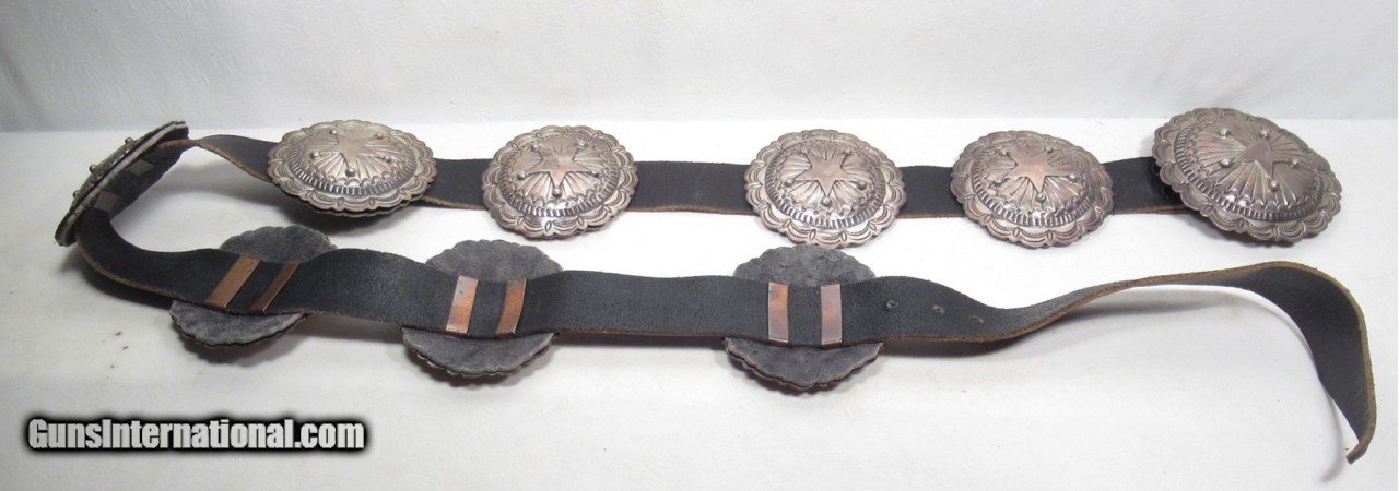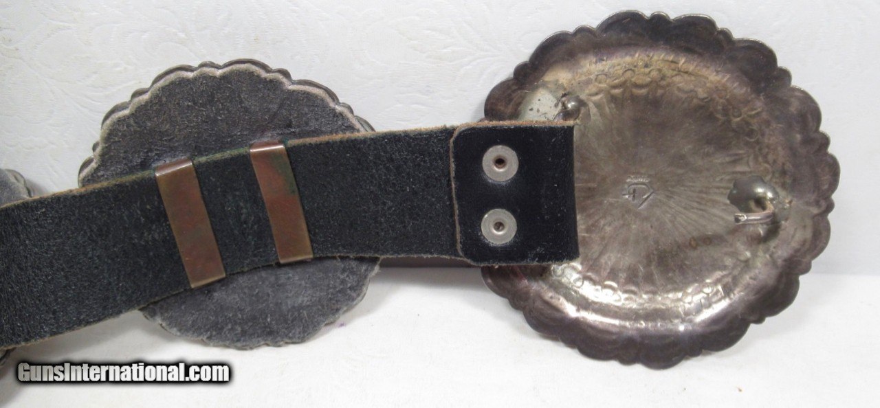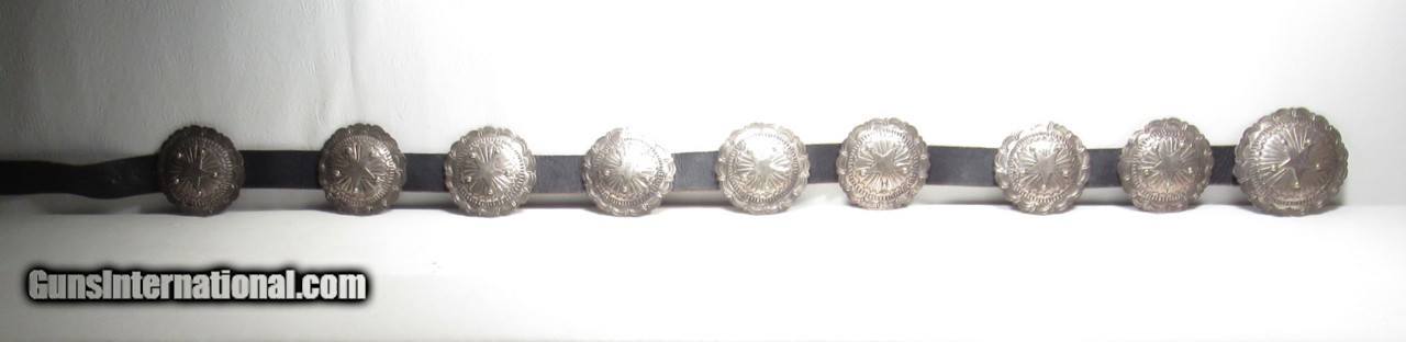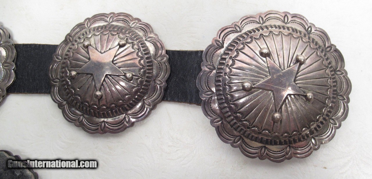 Description: 9 Piece Medallion Concha Belt with Stars; Sterling Silver; Signed by Artist; Measures Approximately 48” End to End; See All Photos for Condition; No Texts; Call (254)541-5765 or Email Only; PERSONAL PROPERTY of Harold Wieser; Price: $375 + $45 S&H Via USPS PRIORITY MAIL; Payment Address: Harold Wieser - 1466 U.S. Hwy 77 - Rosebud, TX 76570; SEND PAYMENTS VIA USPS PRIORITY MAIL; BEWARE of SCAMS!!! – DO NOT SEND MONEY or CORRESPONDENTS ELECTRONICALLY UNLESS YOU HAVE SPOKEN to HAROLD WIESER FIRST! 254-541-5765 SOLD |