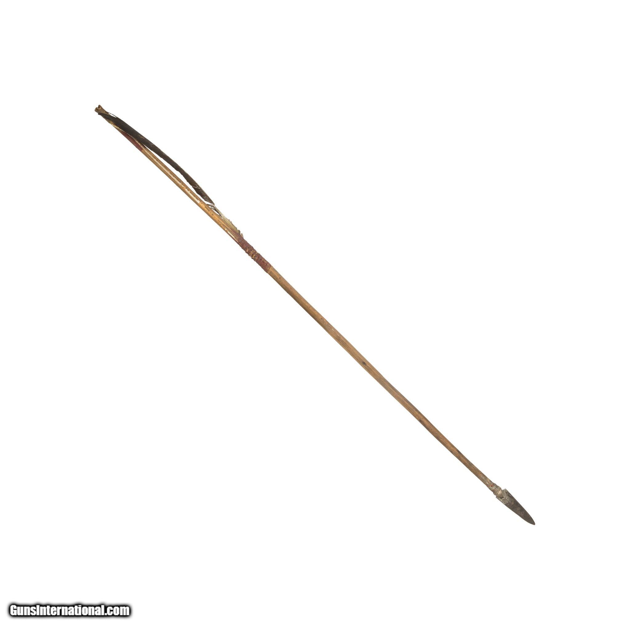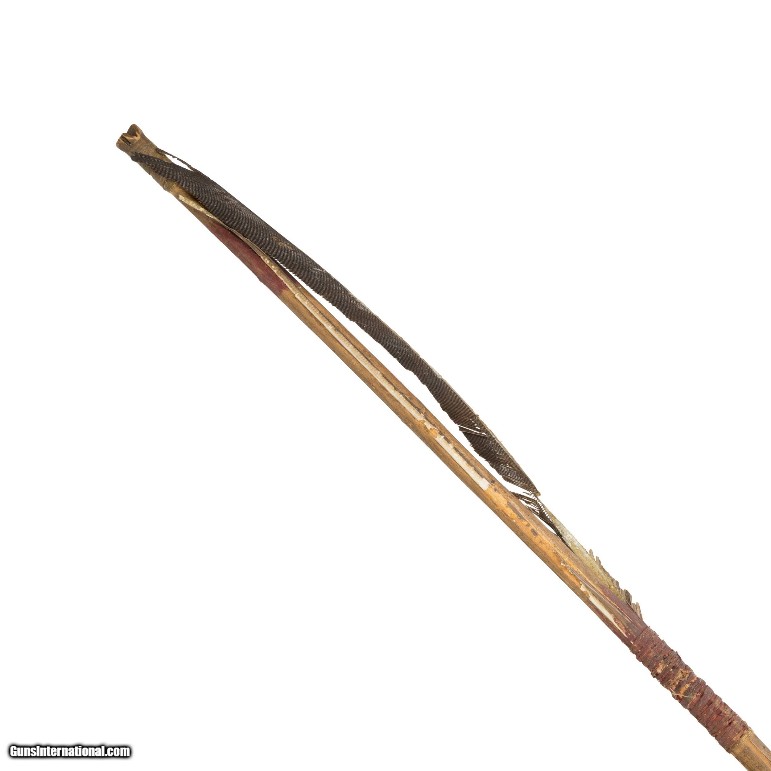 Description: Native American Northern Plains Indian arrow. This piece features blood grooves and the original trade steel point. In great condition for display, and would make an excellent addition to a collection of frontier, western, or indigenous artifacts. Size: 26"L SOLD |