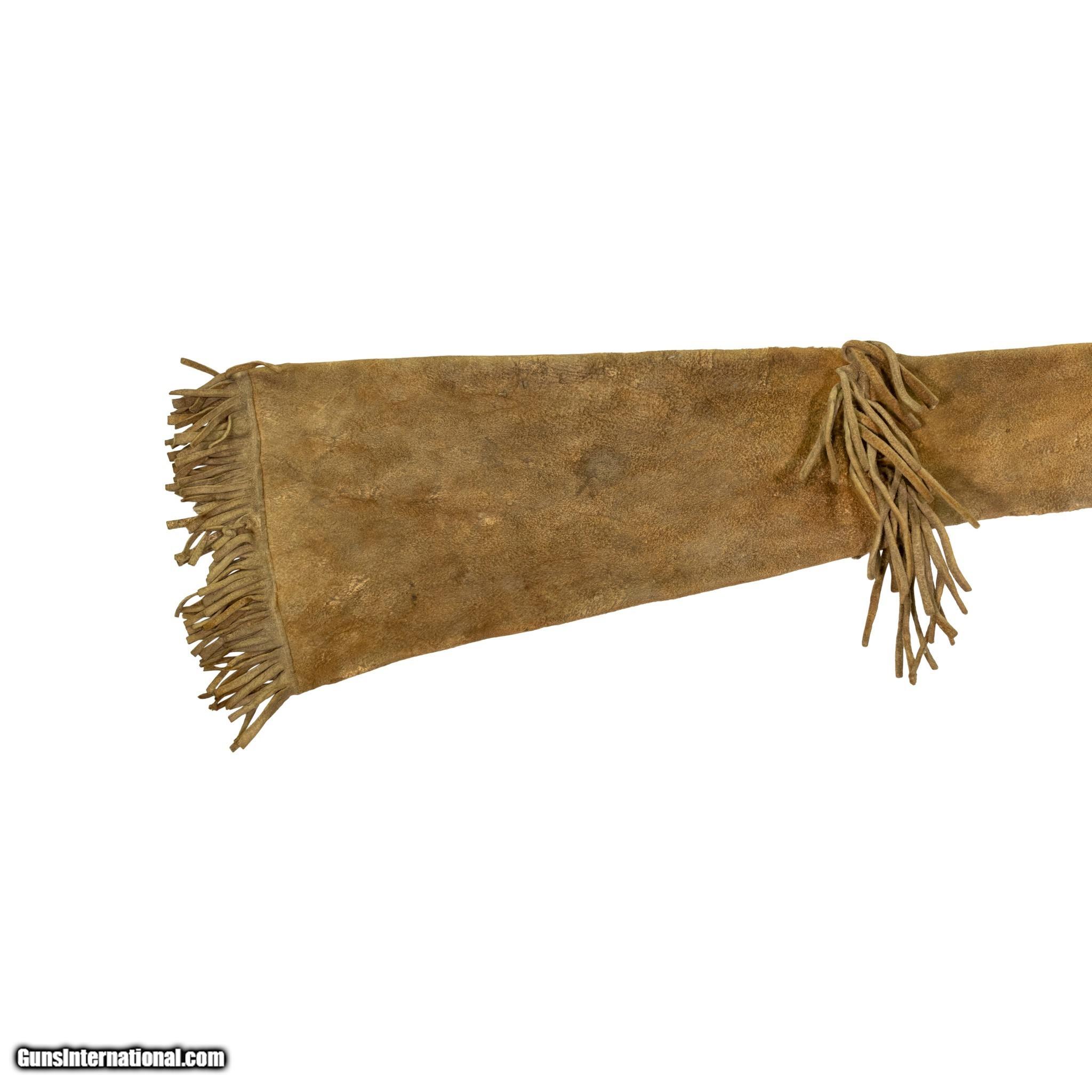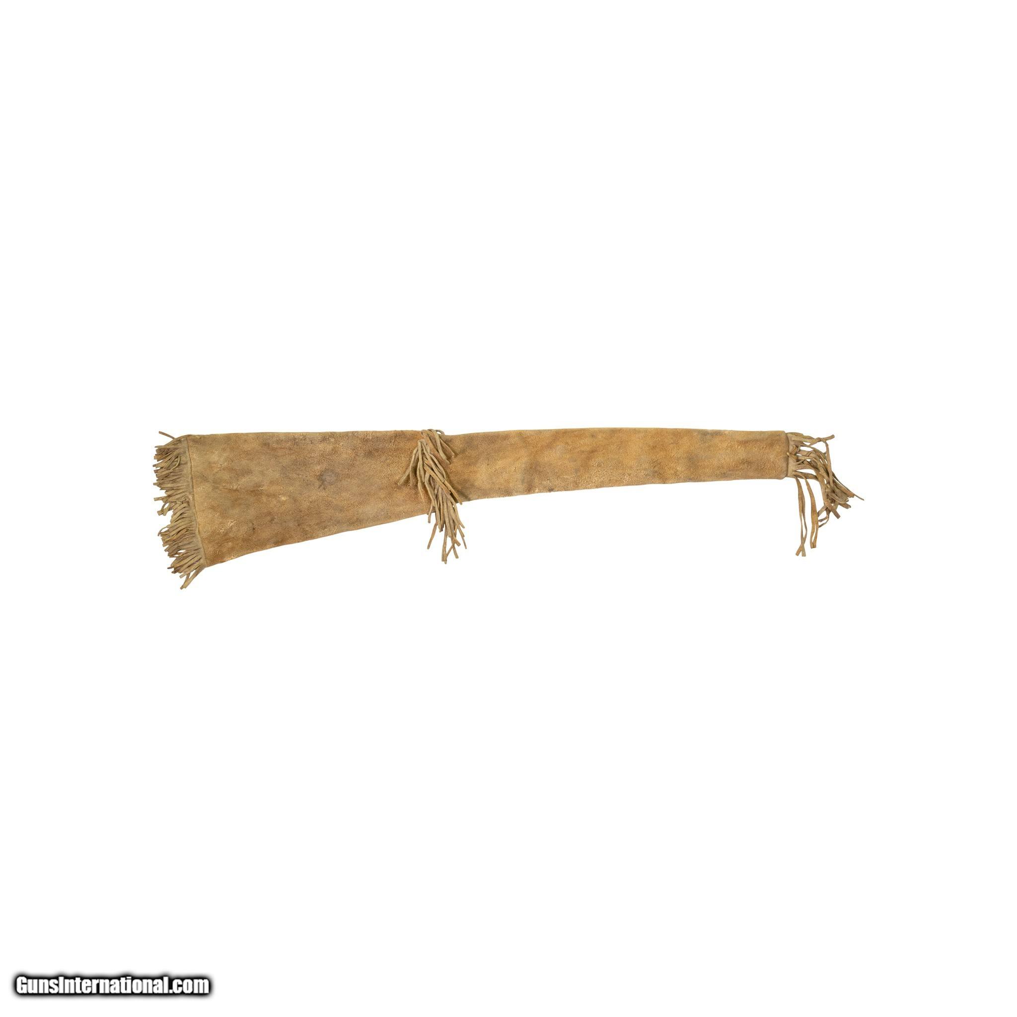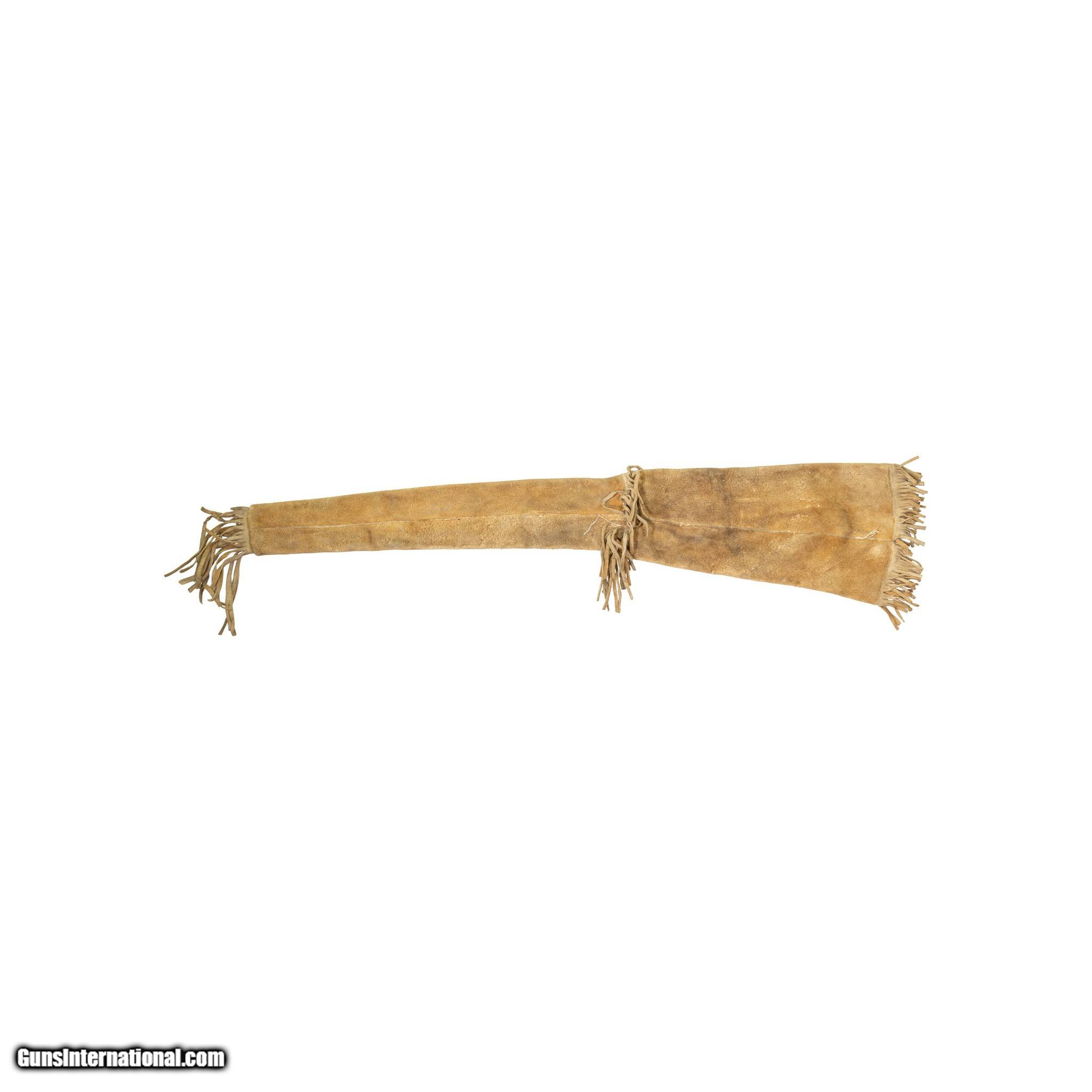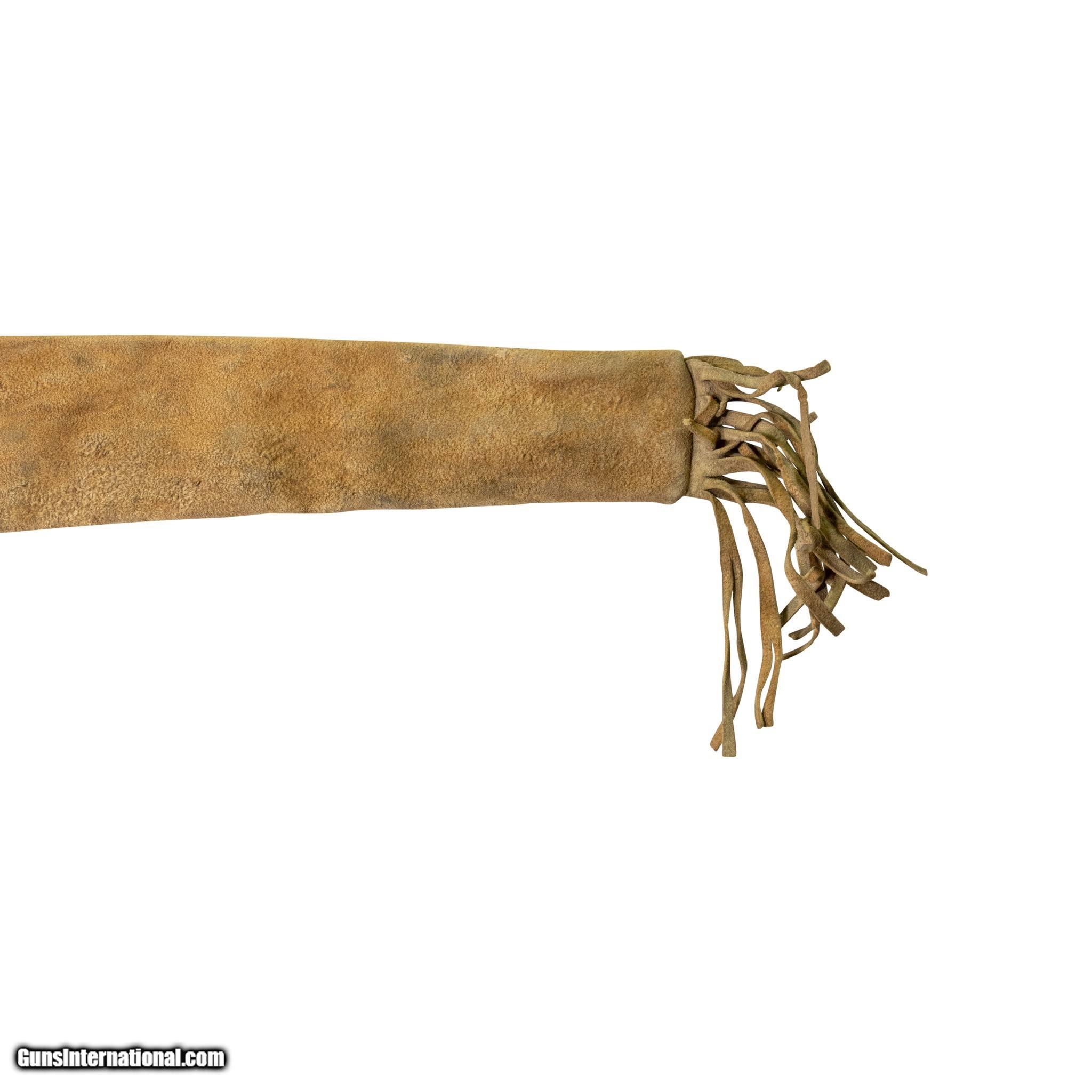 Description: Northern Plains brain and smoked tanned rifle scabbard for Winchester lever action. Bugfalo hide, fringed decorated without beading. 39" x 8" Plus Fringe. Last half 19th Century. SOLD |