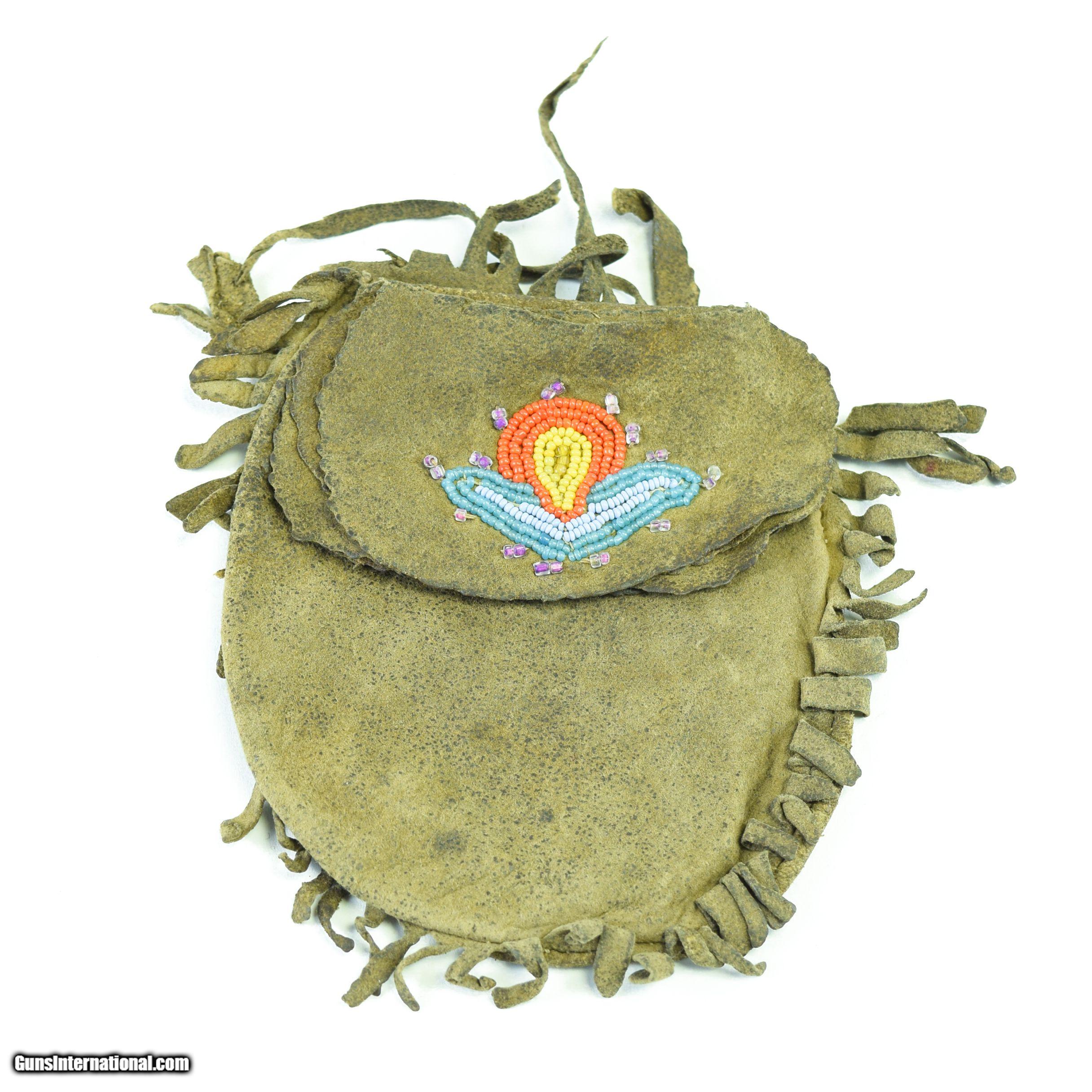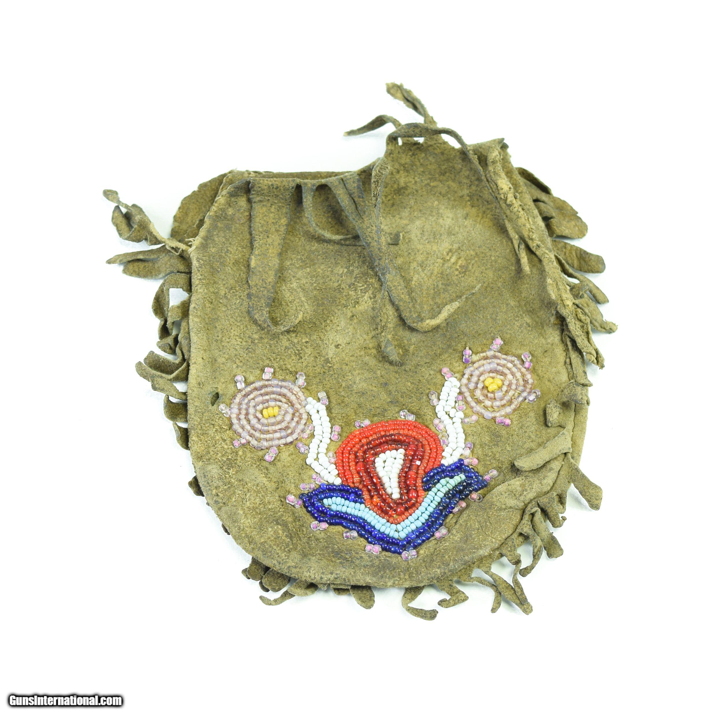 Description: Plateau flap pouch with beadwork. Much used. 19th Century. 5" x 4 SOLD |