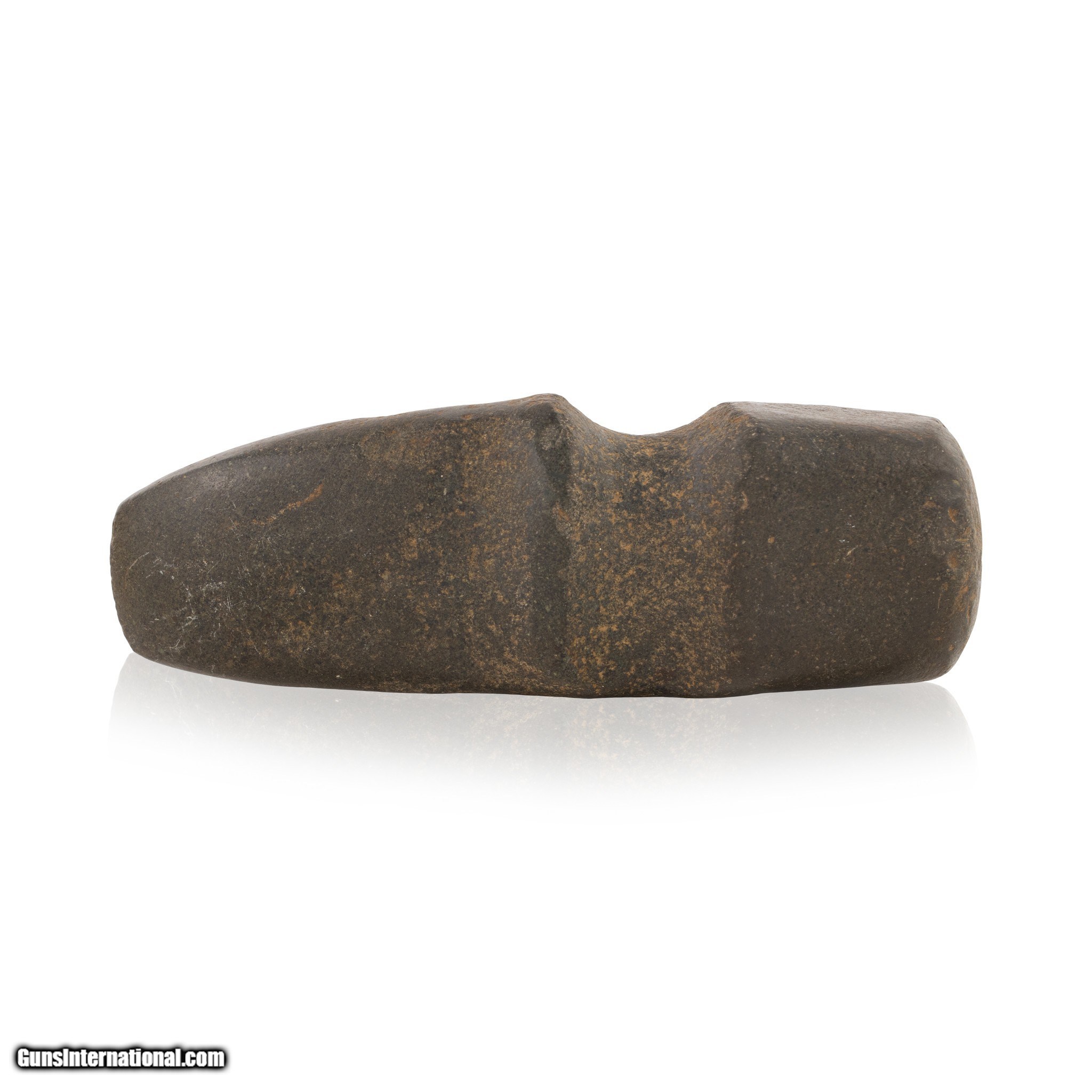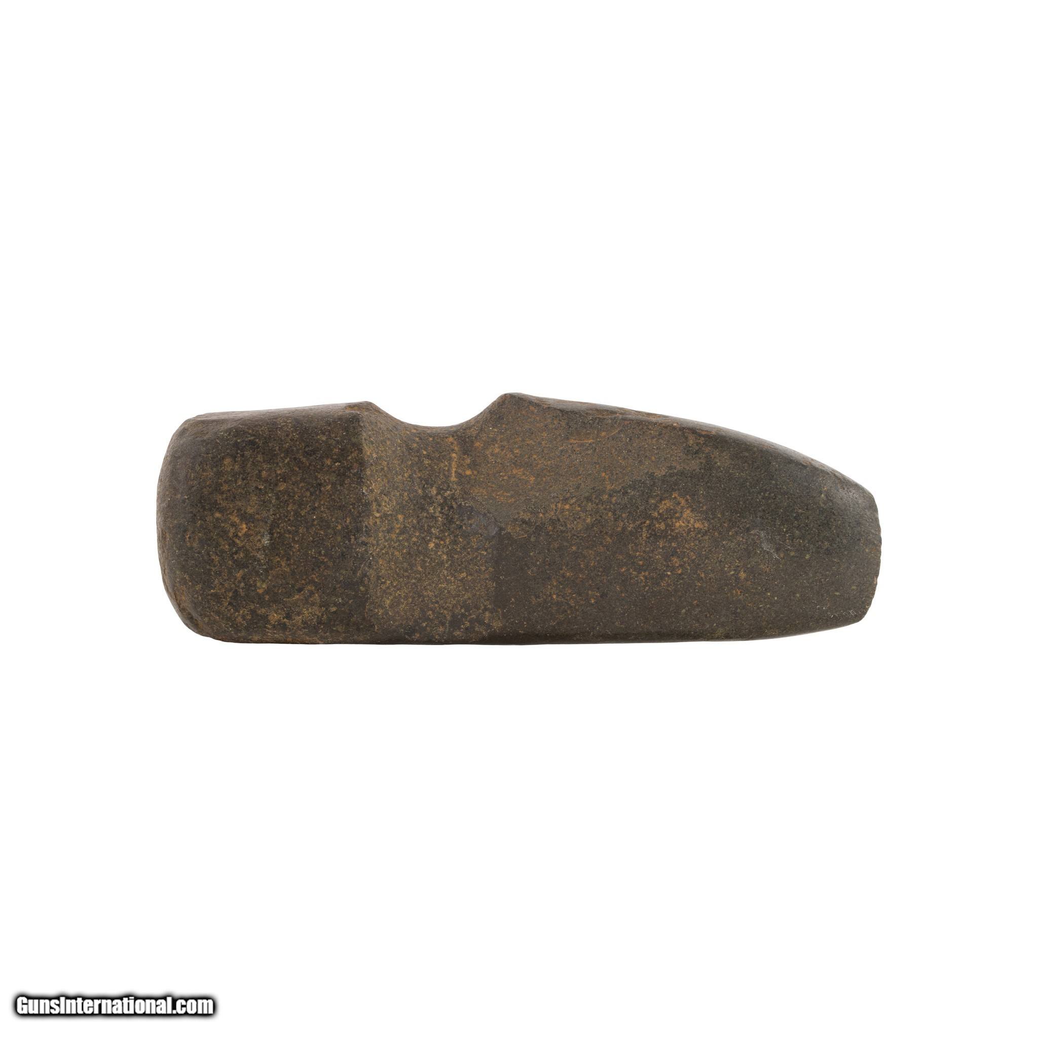 Description: Prehistoric Mimbres/Anasazi 3/4" groove axe with high polish blade. This axe was worked into a curve rather than straight. Great Native or indigenous artifact for Native American and prehistoric collectors. Size: 6 1/2"L x 1 3/4"W x 2"D SOLD |