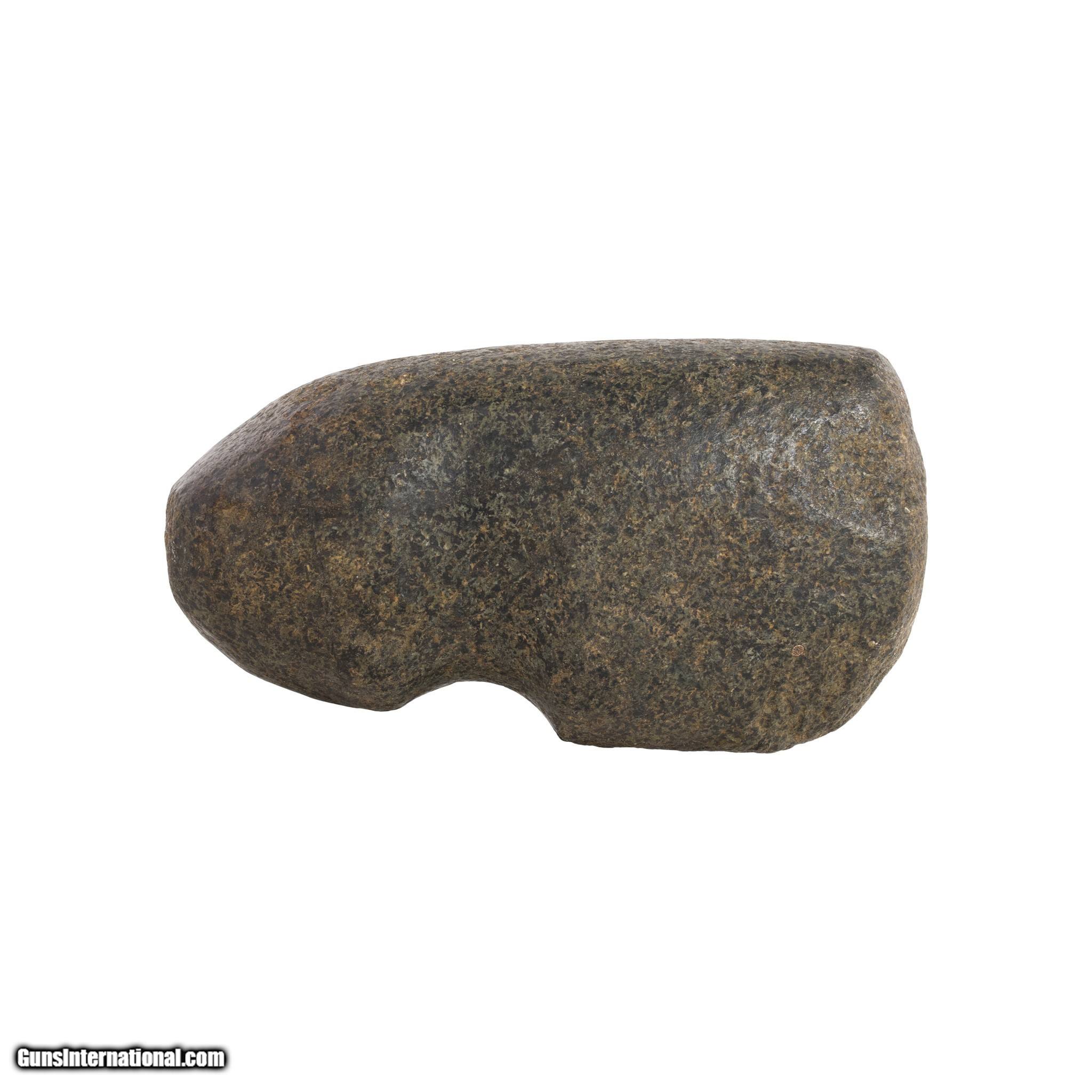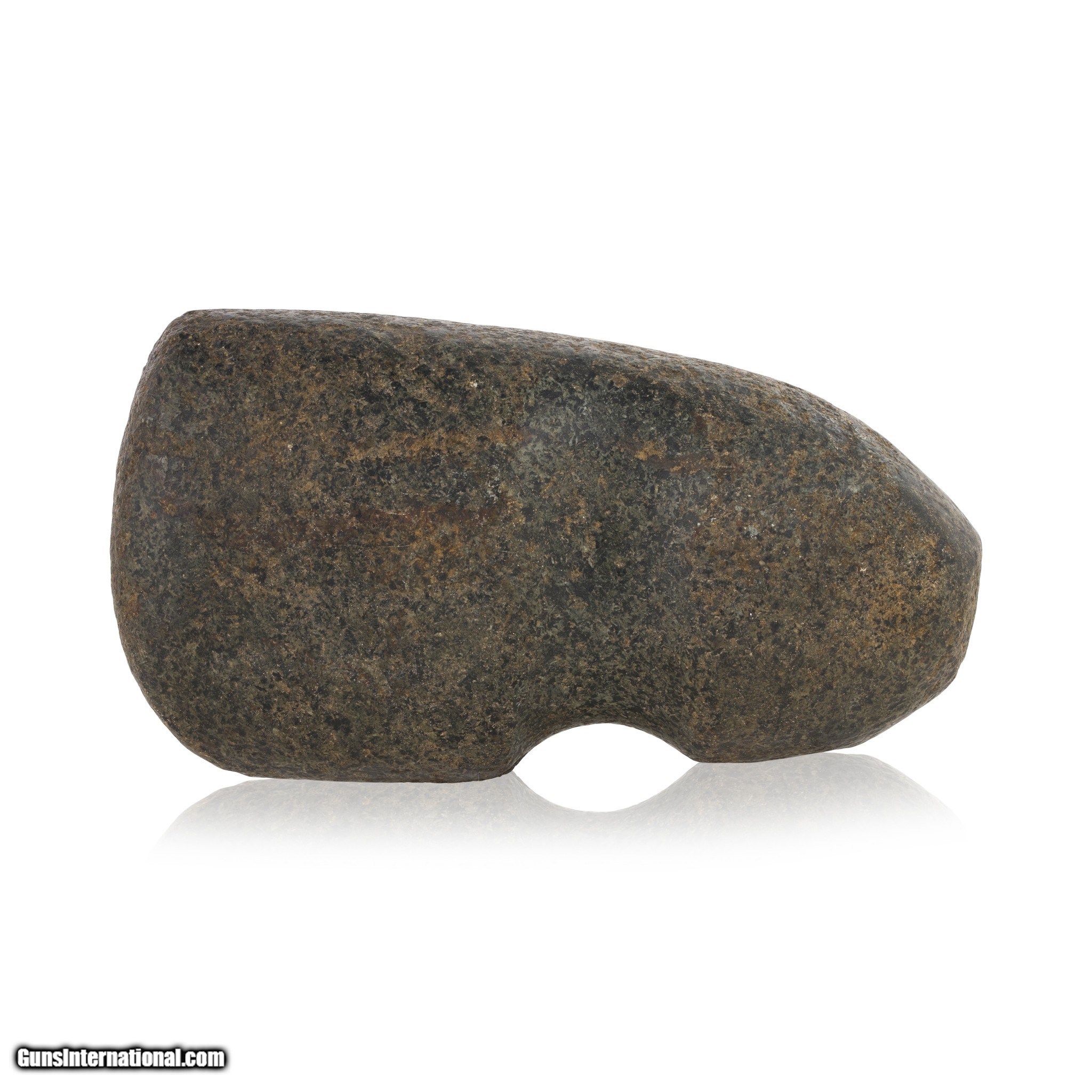 Description: Mimbres/Anasazi 3/4" mallet. Appears once to have been an axe but blunted during the period of use. Great Native or indigenous artifact for collectors. Size: 5 1/2"L x 2 1/2"W x 3"H SOLD |