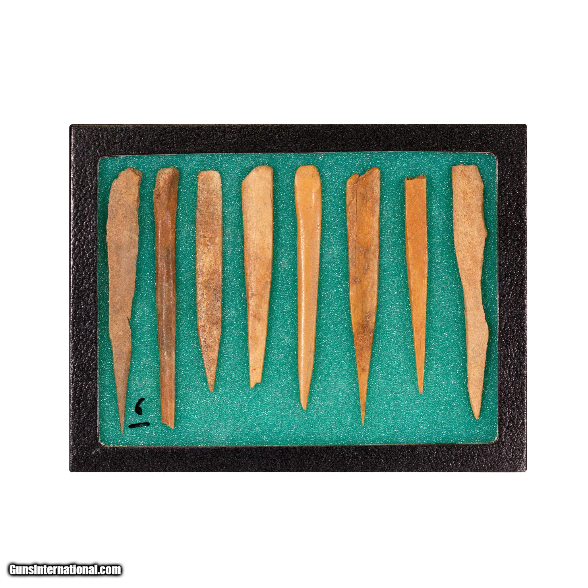 Description: Collection of 8 splinter bone awls. Largest 4". Collected at the Mandan Site in North Dakota. Ex. Anderson SOLD |