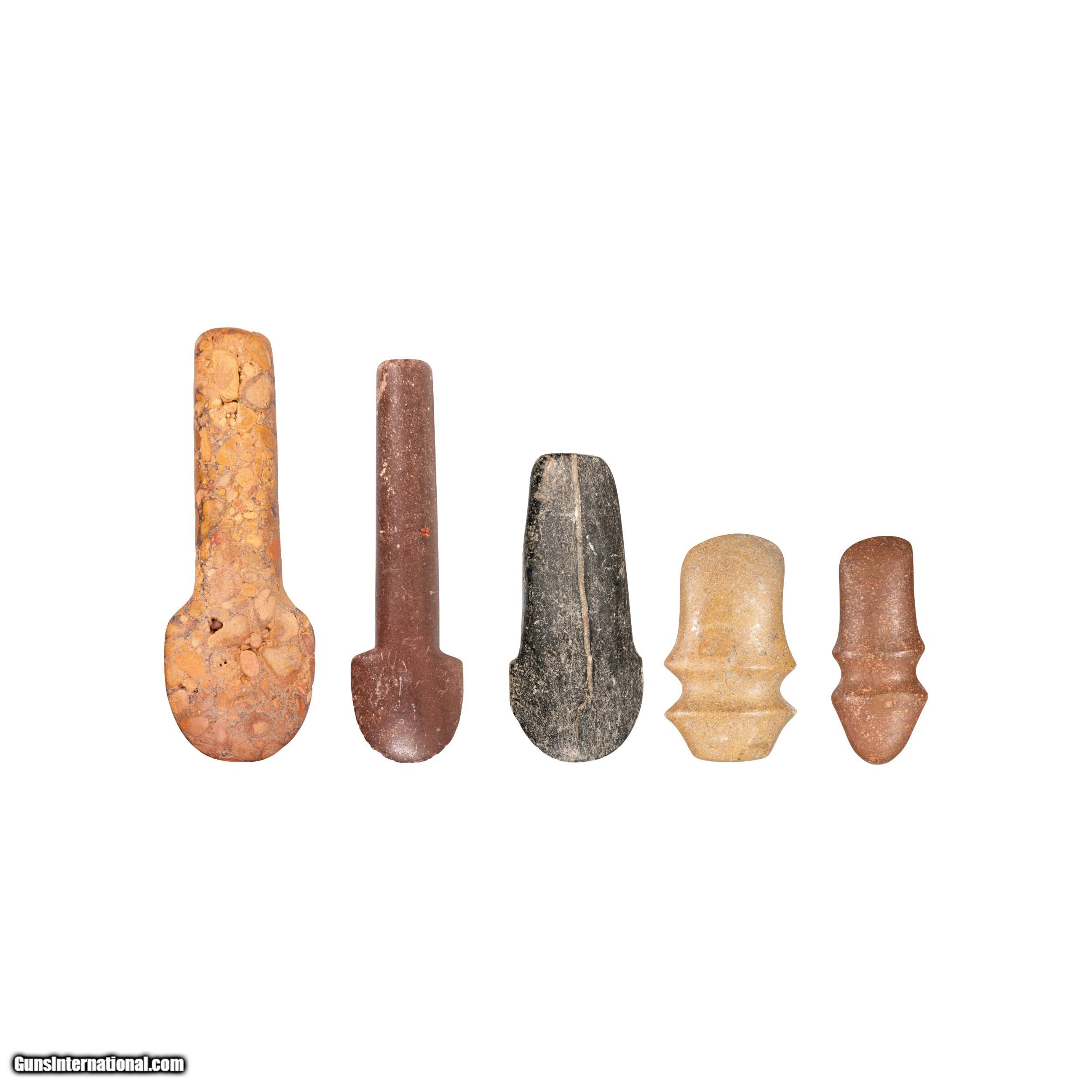 Description: Collection of three spuds and two single groove axes. Purchased in an Eastern . All mint, different stones, not sure of age. Spuds 8 1/2", 8", 6" Axes 4 1/2" Each SOLD |