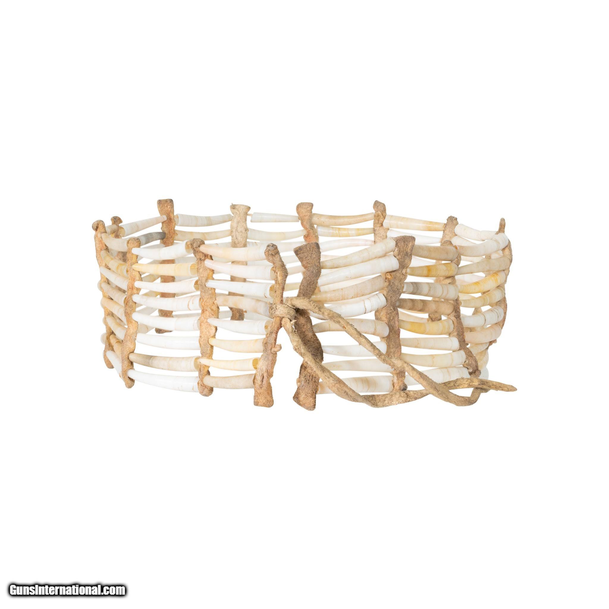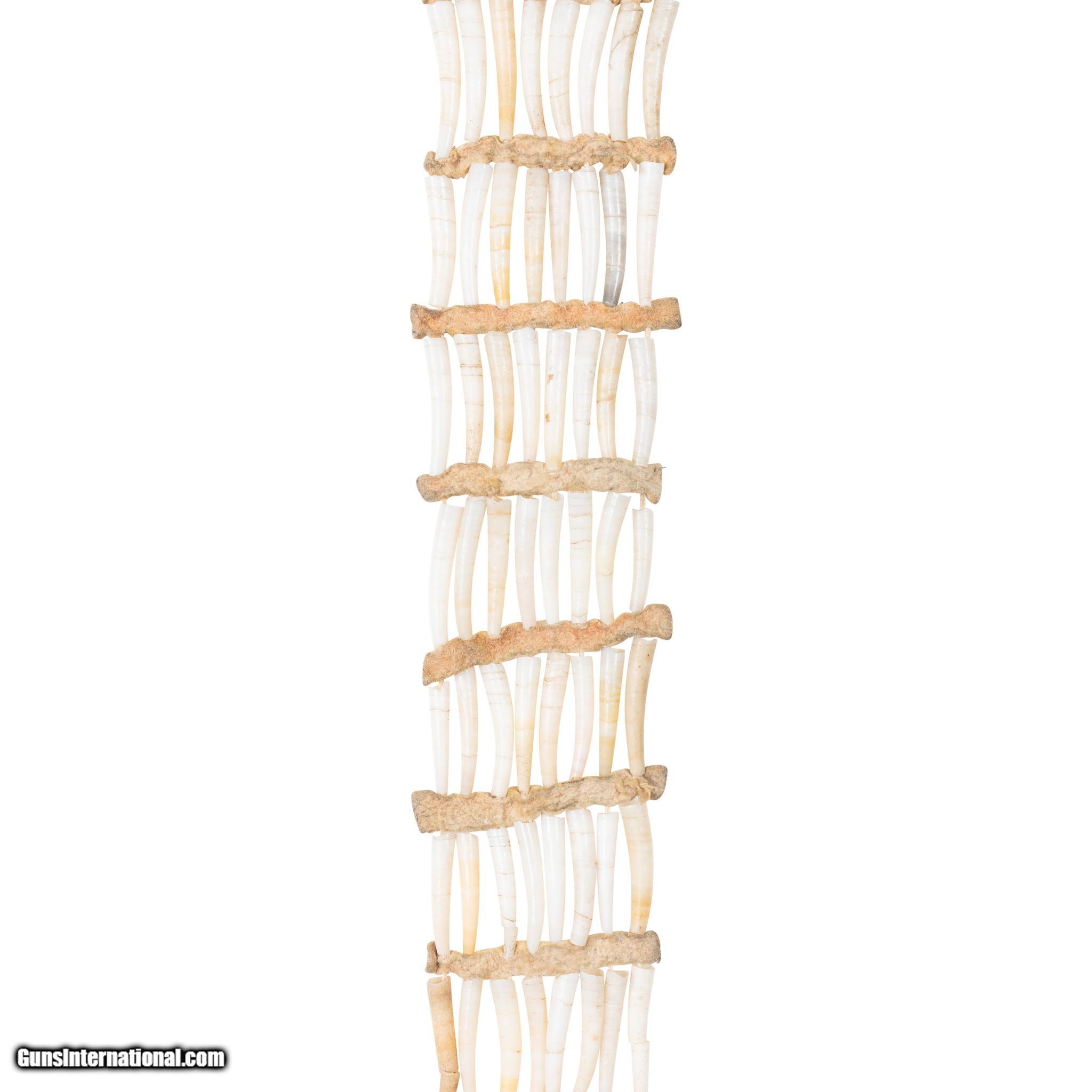 Description: Sioux dentalia shell choker with brain tanned hide spacers.. 17" x 2". Last half 19th Century. SOLD |