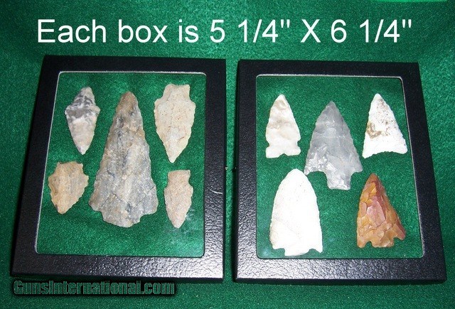 Description: Two Native American Indian Arrowhead Relics Points Display From N.C Ships only to lower 48 states. Shipping $8. No add on credit card fees. SOLD |