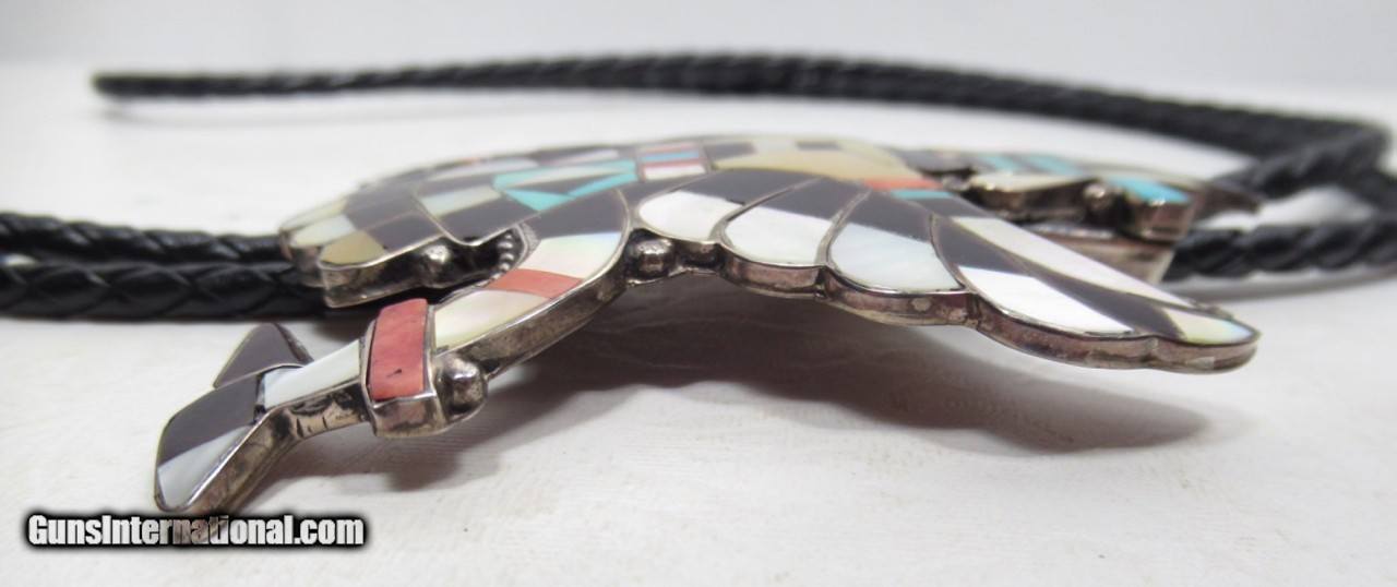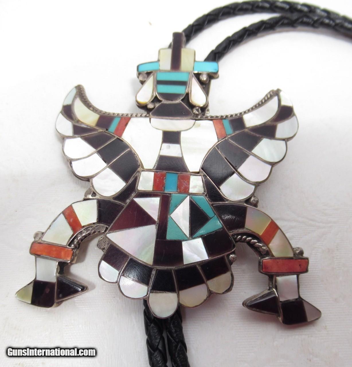 Description: Very High Quality Zuni Bola Tie Knife Wing; ½ Man and ½ Eagle; Inlay and Channel Work; Coral, Turquoise, Jet, and Pearl; See All Photos for Condition; No Texts; Call (254)541-5765 or Email Only; PERSONAL PROPERTY of Harold Wieser; Price: $495 + $45 S&H Via USPS PRIORITY MAIL; Payment Address: Harold Wieser - 1466 U.S. Hwy 77 - Rosebud, TX 76570; SEND PAYMENTS VIA USPS PRIORITY MAIL; SOLD |