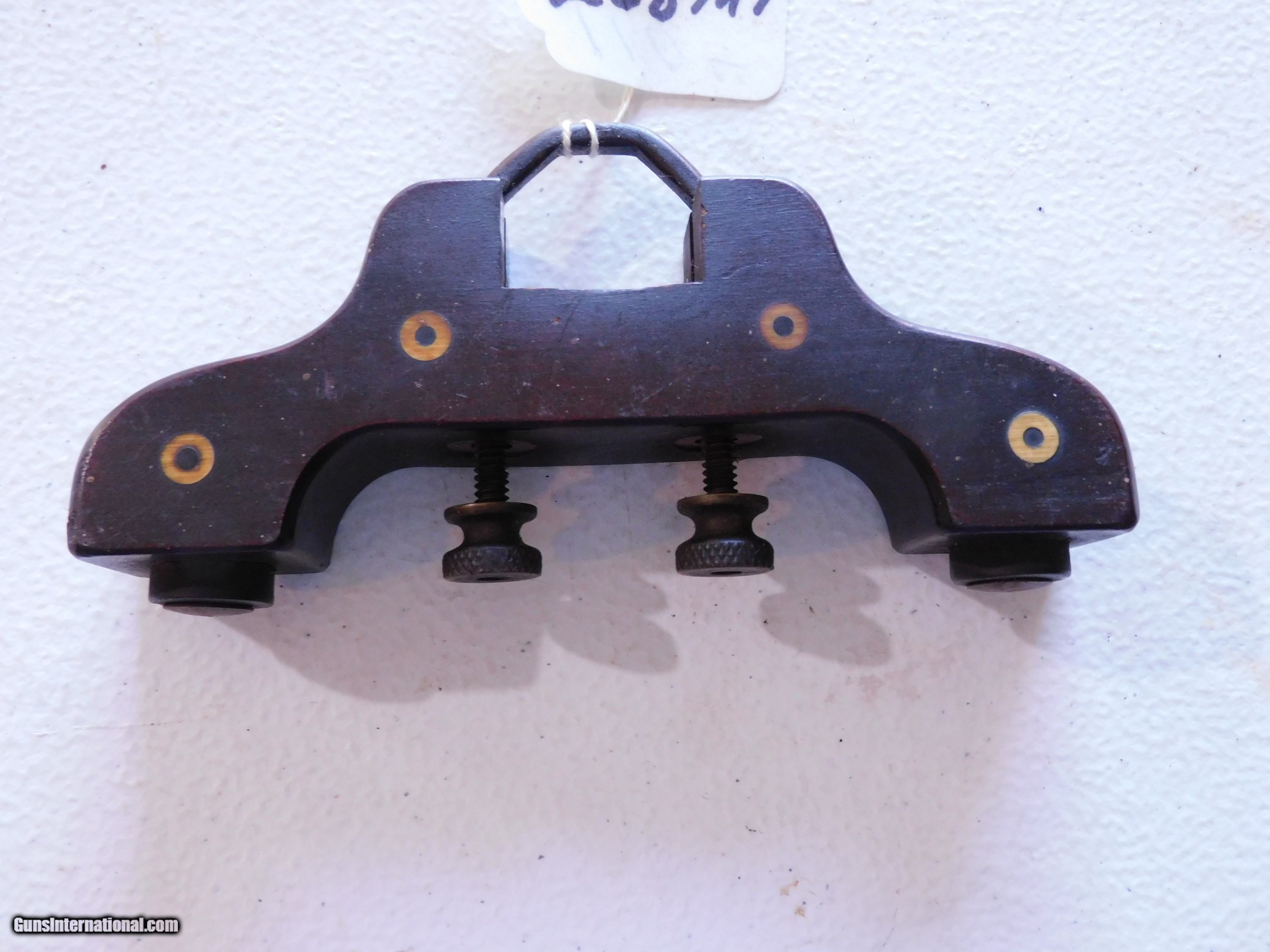 Description: #268MT Benchrest barrel rest, wood & brass, adjustable, looks early, 1 1/4” diameter barrels or smaller, looks professional. $110 SOLD |