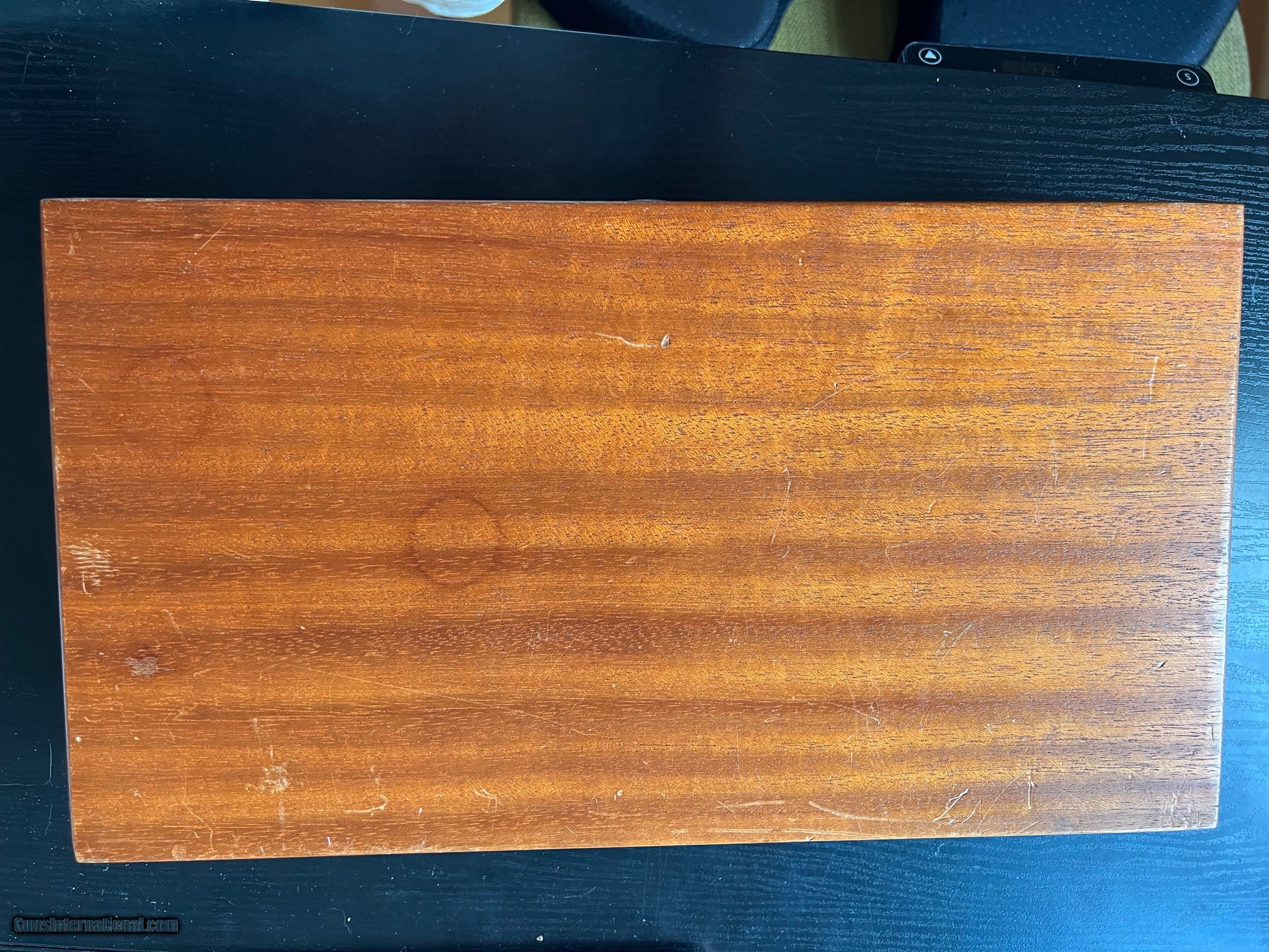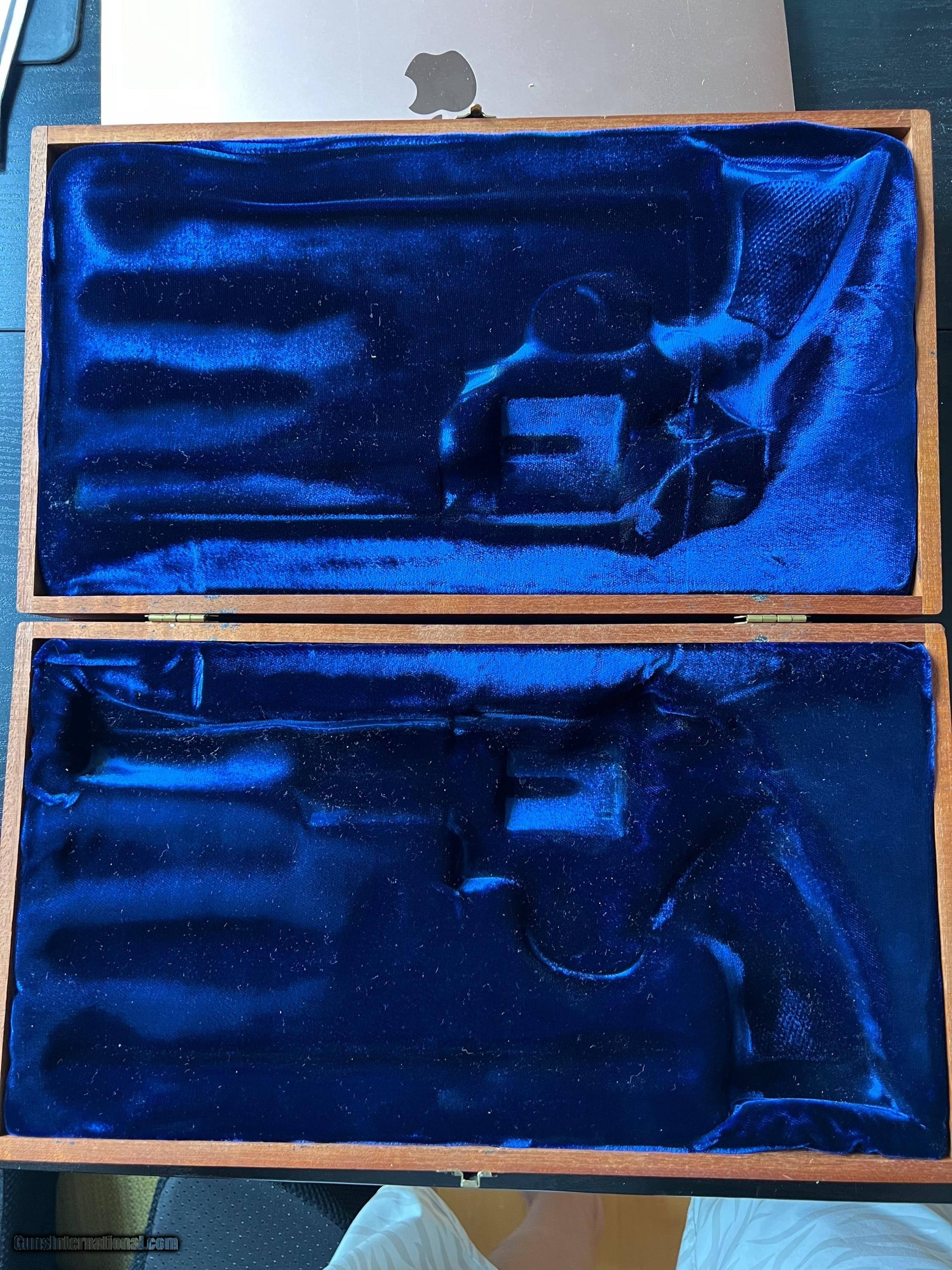 Description: This is a very early S&W Model 57 revolver box in excellent condition. Made only in the first 3-4 years of production, these cases were velour/velvet lined and came with S-prefix revolvers only. This particular case is in excellent original shape with a few minor handling marks and no defects. A great accessory for an early Model 57! 3-day inspection . Free shipping in CONUS. SOLD |