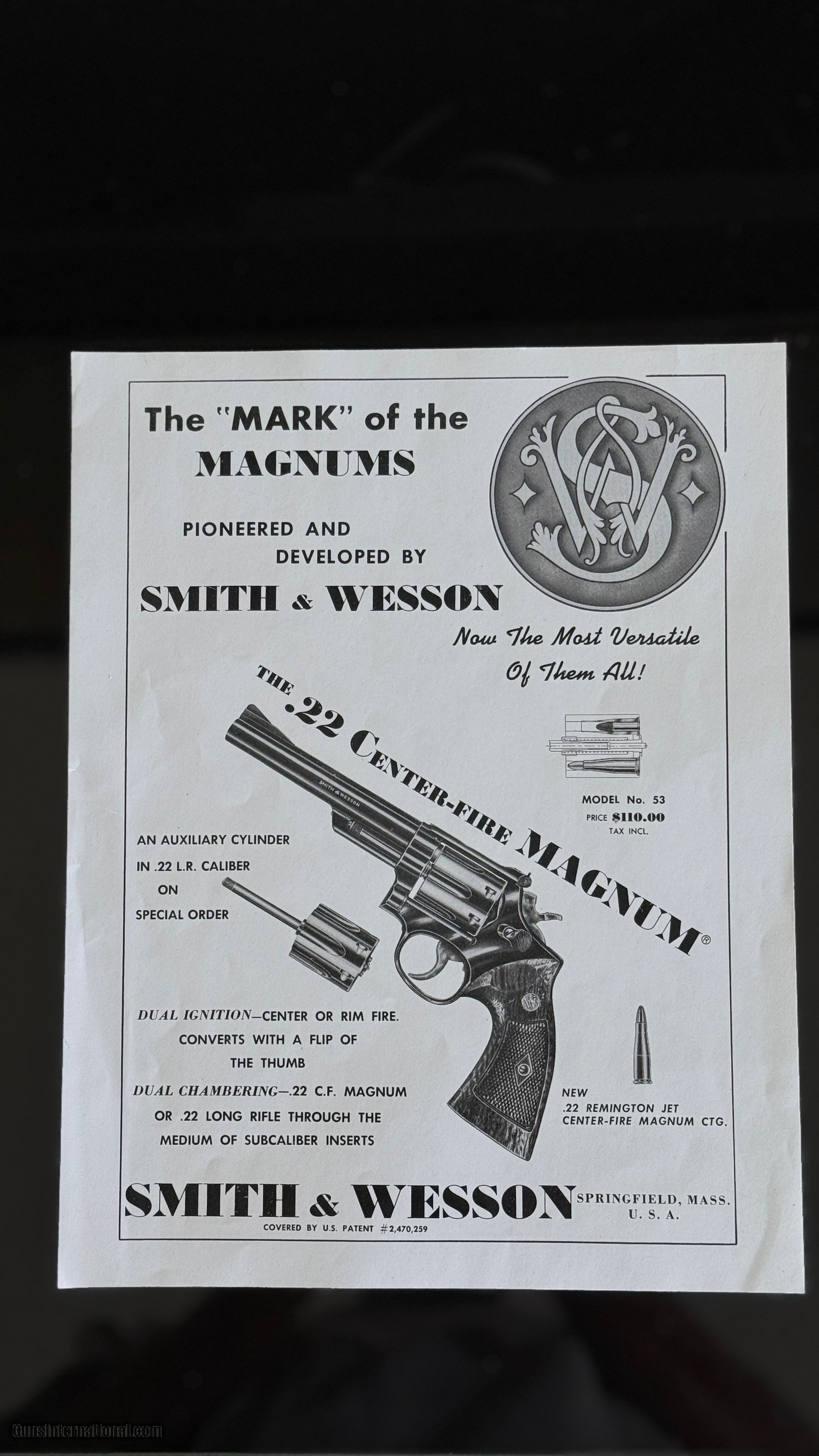 SMITH AND WESSON MODEL 53 JET * CLEANING KIT * SIGHT TOOL * FACTORY FLYER