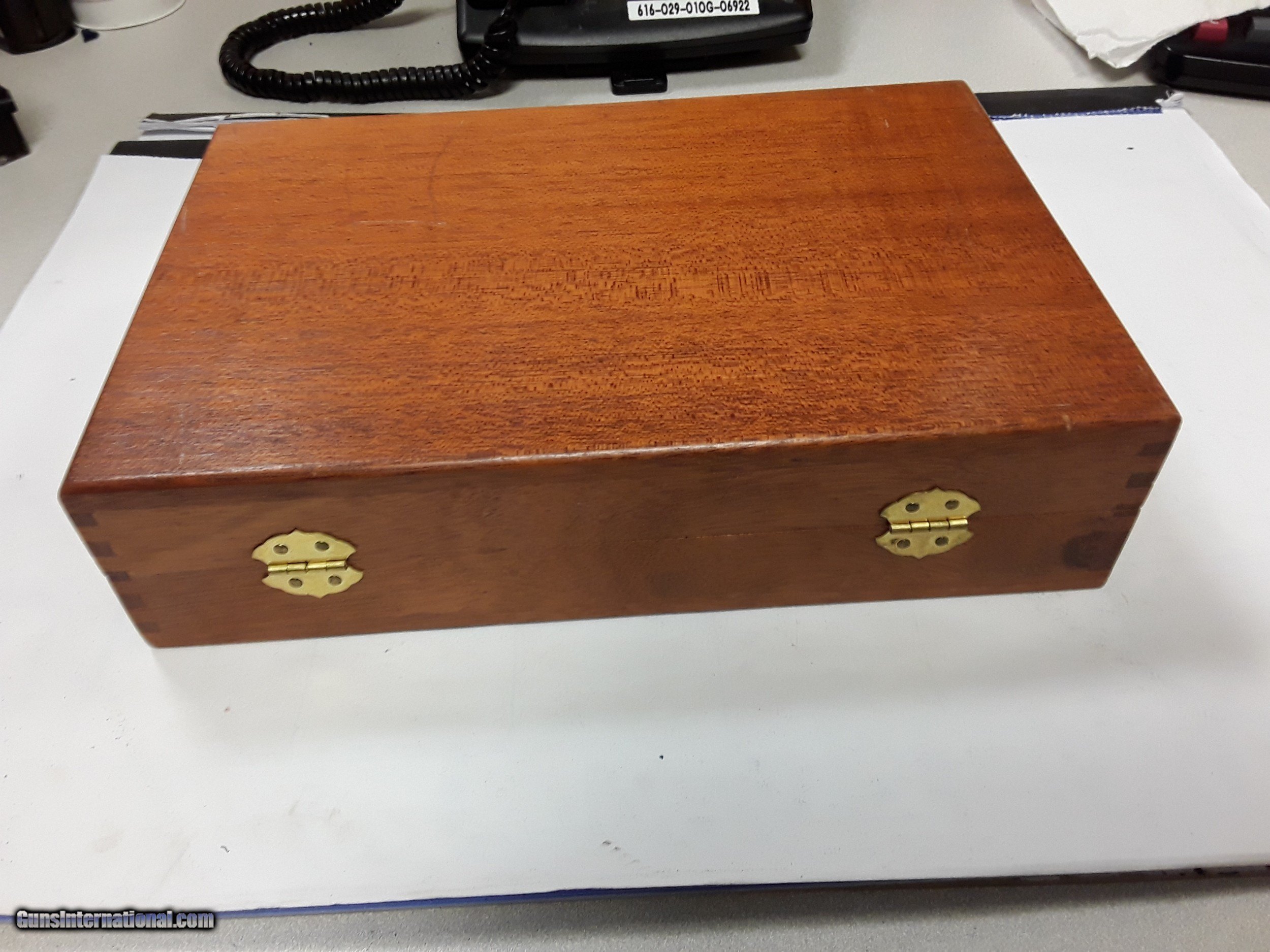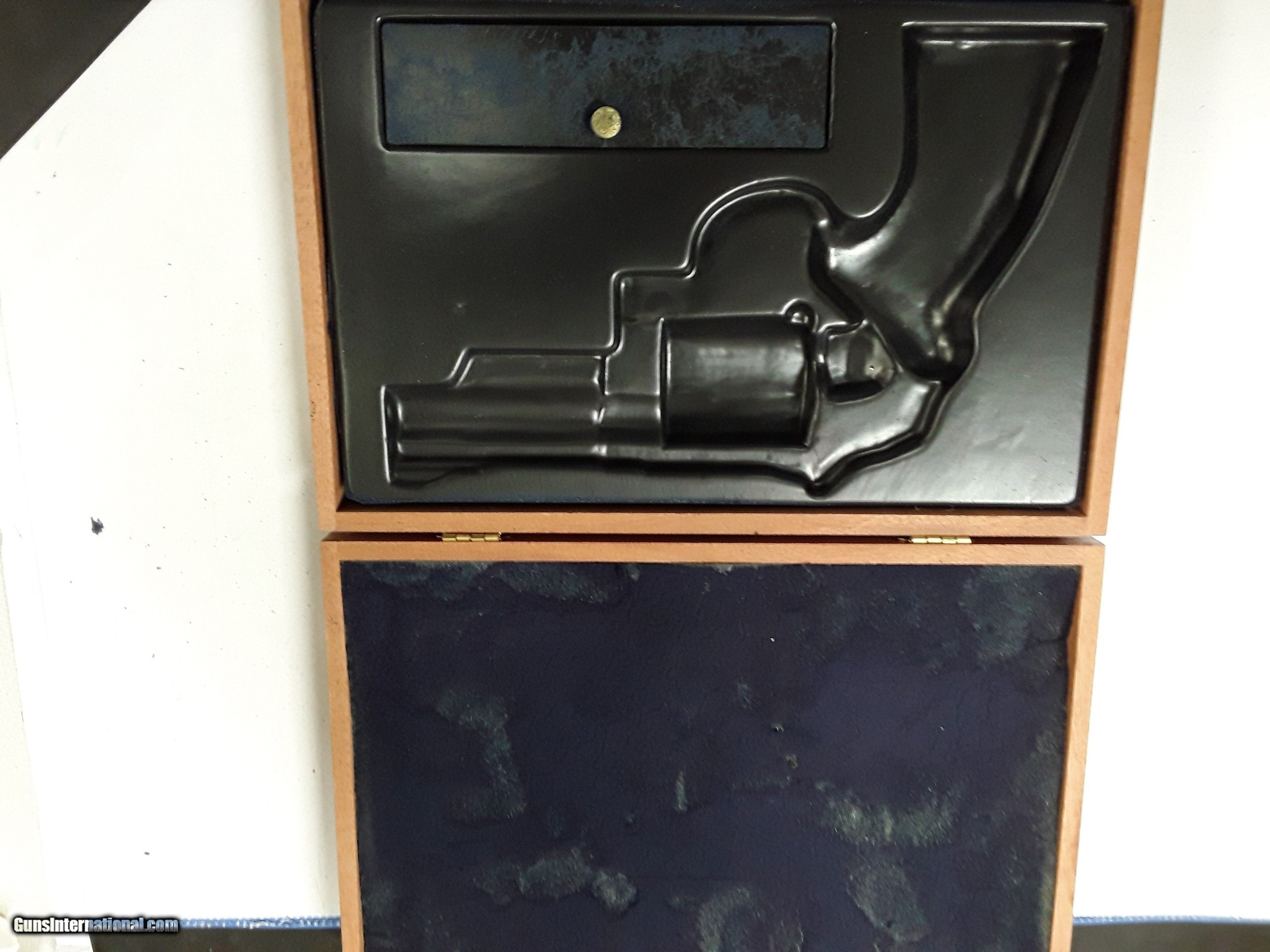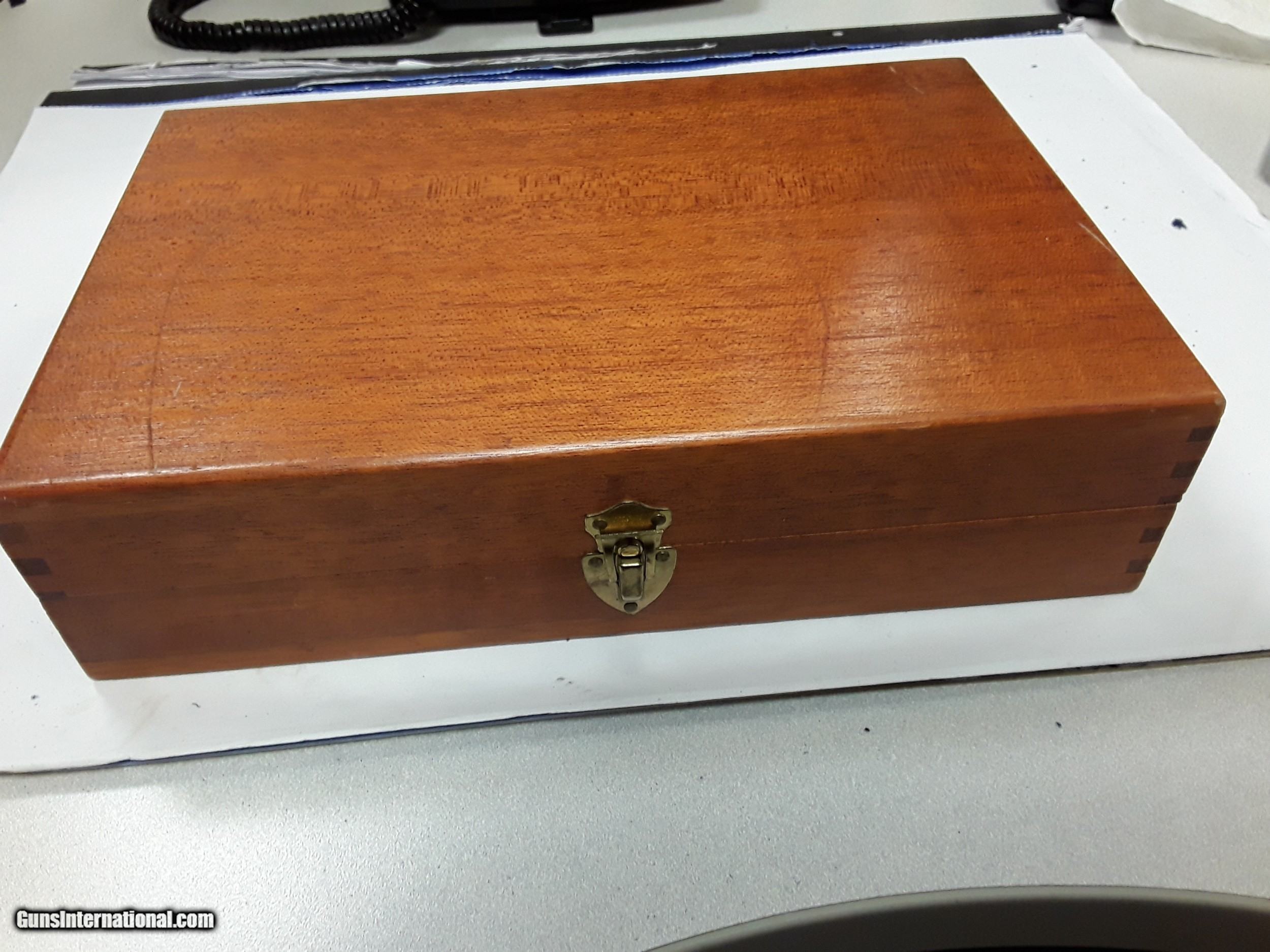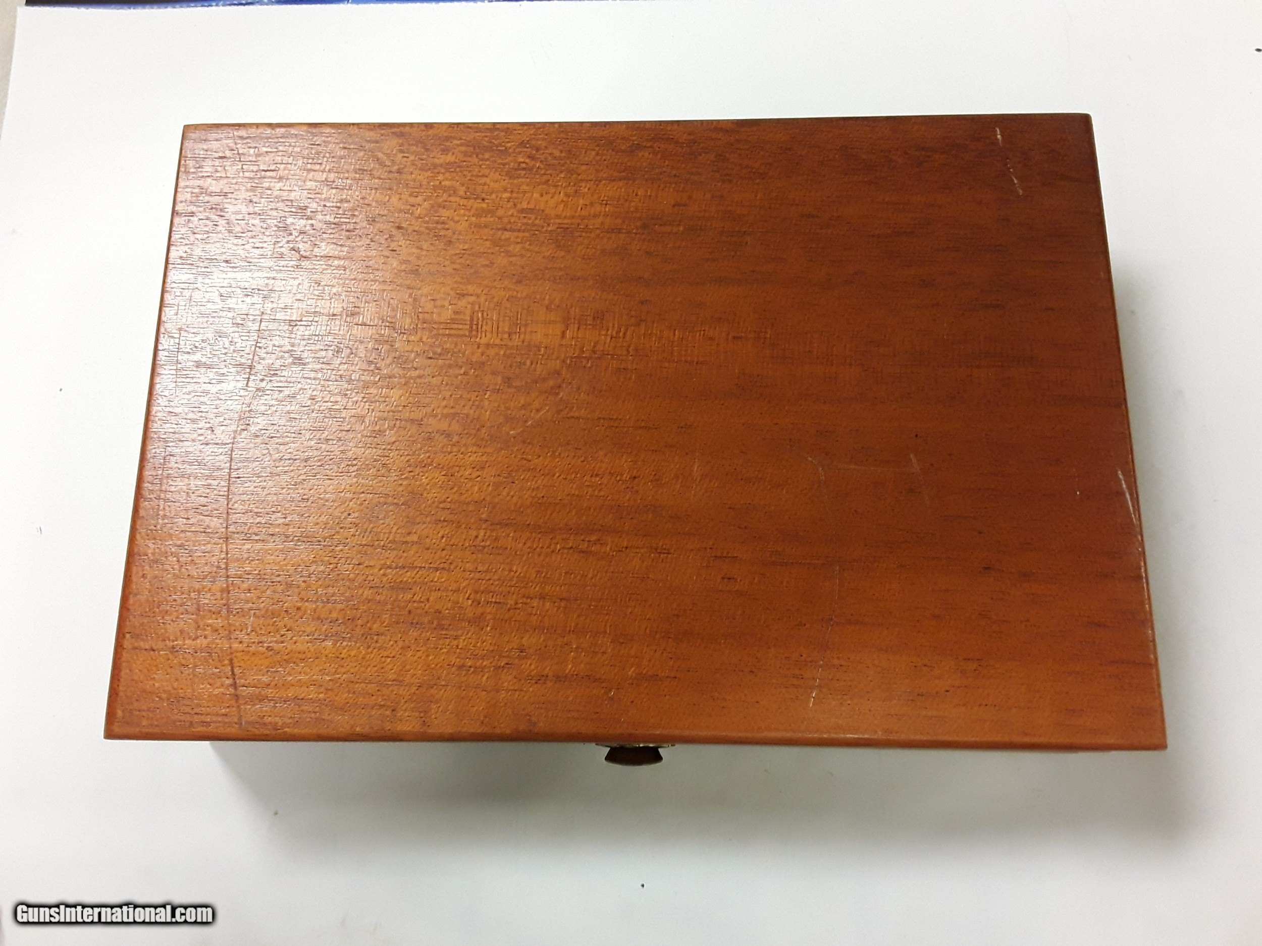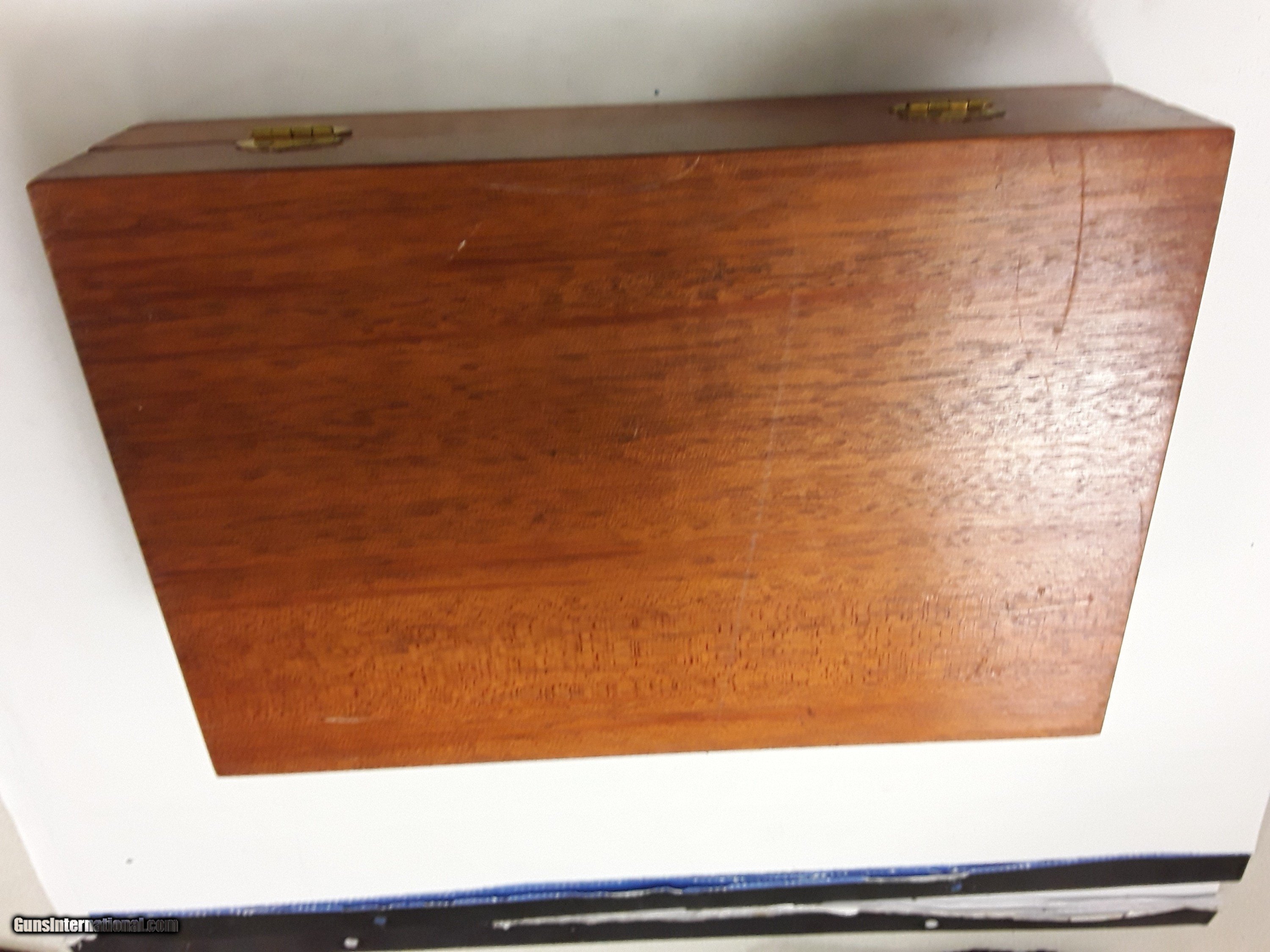 Description: SMITH & WESSON WOODEN PRESENTATION CASE 4"REVOLVER SOME SLIGHT MARKS, FOAM DETERIORATED $85.00 DELIVERED SOLD |