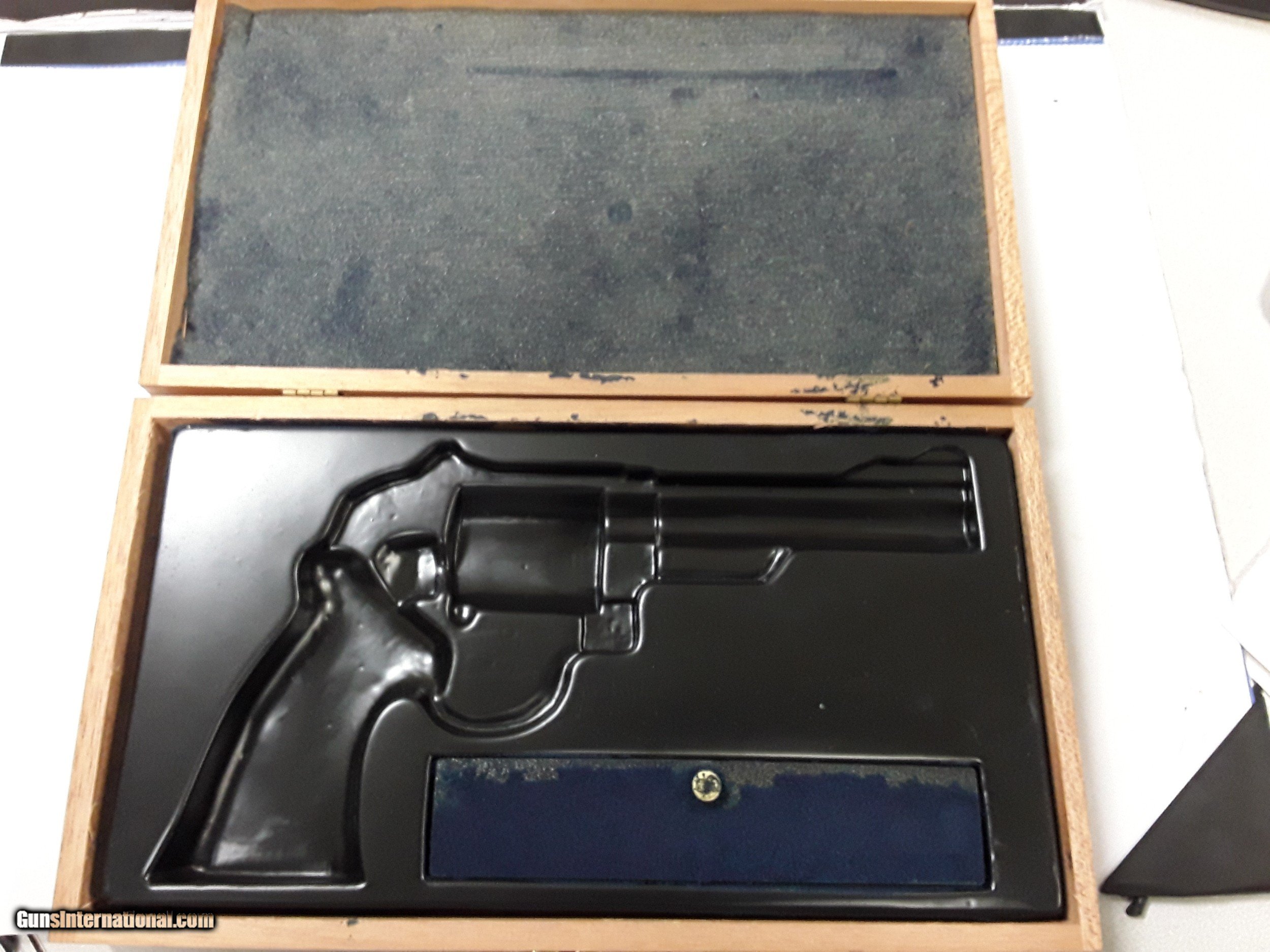 Description: SMITH & WESSON WOODEN PRESENTATION CASE FOR 6" REVOLVER COUPLE VERY SMALL MARKS, FOAM DETERIORATED $125.00 DELIVERED SOLD |